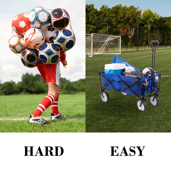 - Use this blue foldable garden cart for household projects, transporting sporting equipment, shopping, or beach trips