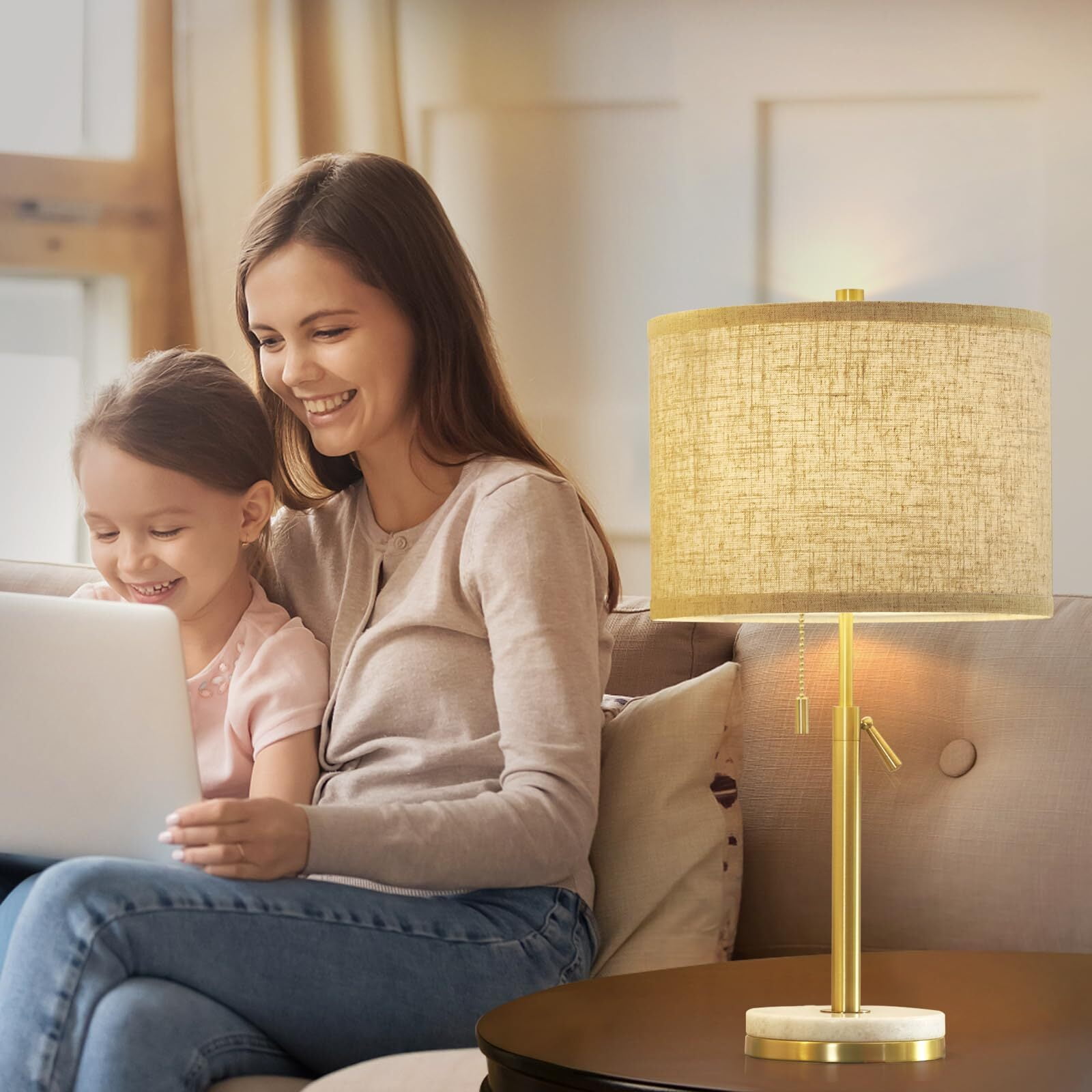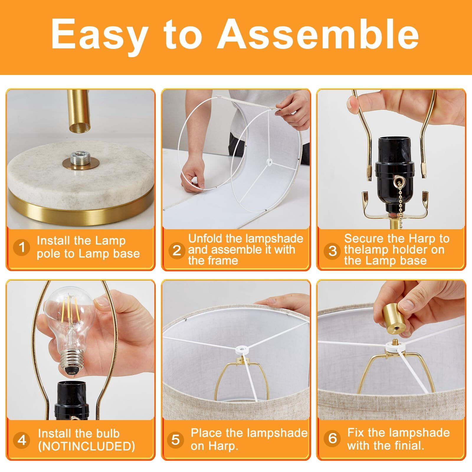 Product Parameters Style: Modern, Classic, Vintage, Minimalist Color: Gold Set of 2 Product Dimensions: 12″D x 12″W x 24″H Light Source Type: LED Finish Type: Antique Material: Metal Room Type: Office, Living Room Shade Color: Beige Shade Material: Fabric Switch Type: Pull Chain Connectivity Technology: USB Included Components: Shade included Item Weight: 9.02 pounds Voltage: 120 Volts Special Feature: Easy to assemble, Marble base prevents fading and durable, Fabric lampshade to soften the dazzling light, great adornment and table lamp, height adjustable lamp, Integrated well with any decoration style. Package Includes 2 x Lampshade 2 x Lamp Base 1 x User Manual Key Features 【Super Flexible Adjustment Height】The advanced Marble Table Lamps feature the most flexible adjustable height poles. Taking less space. Table lamps can adjust height between 19″-24″ to accommodate optimal lighting in any circumstances, as well as meet the people of different heights light needs, like kids, adults, and the elderly. 【Priority Quality & Easy Assemble Table Lamp 】 Lamps for bedrooms & living rooms are designed to improve life quality, adding elegant decor to your place. A high-end marble base will not fade as time goes by, durable and convenient to maintain. This table lamp is easy to install without tools. Following the instructions to assemble this lamp. 【Thickened Base & Unique Texture 】The Base of this table lamp is made of specially thickened to effectively avoid shaking, which means you don’t have to worry about falling. The texture of the base is naturally formed, which means the marble base texture of these table lamps you receive may be inconsistent. Each lamp base has uniqueness and there is no substitute. 【Modern Design & Caring For Eyes】 This table lamp set of 2 is constructed of a fabric round lampshade and a marble base that provides a cozy feeling. It is a great adornment which can be integrated well with any decoration style. The fabric lampshade will soften the luminance, making it bright enough but not harsh.