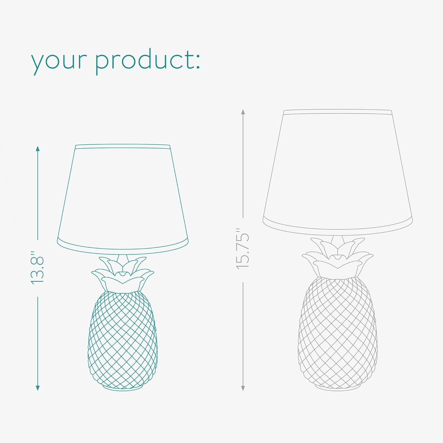 Bring a touch of tropical style to your home with the Navaris Gold Pineapple Table Lamp, featuring a metallic ceramic base and a unique pineapple design. The lamp’s toggle switch is conveniently placed on the power cord, allowing you to easily turn the light on and off without reaching up into the lamp. This table lamp measures 13.8″ high and 3.9″ wide, making it the perfect size for bedside tables, nightstands, end tables, and desks. Designed to accommodate an E12 bulb with a maximum wattage of 25W (bulb not included), you can choose the perfect lighting level to suit your needs. The pineapple design symbolizes friendship and hospitality, adding a warm and welcoming touch to any room in your home. This table lamp is a versatile and stylish accent piece that can be used to complement a variety of modern decor themes.