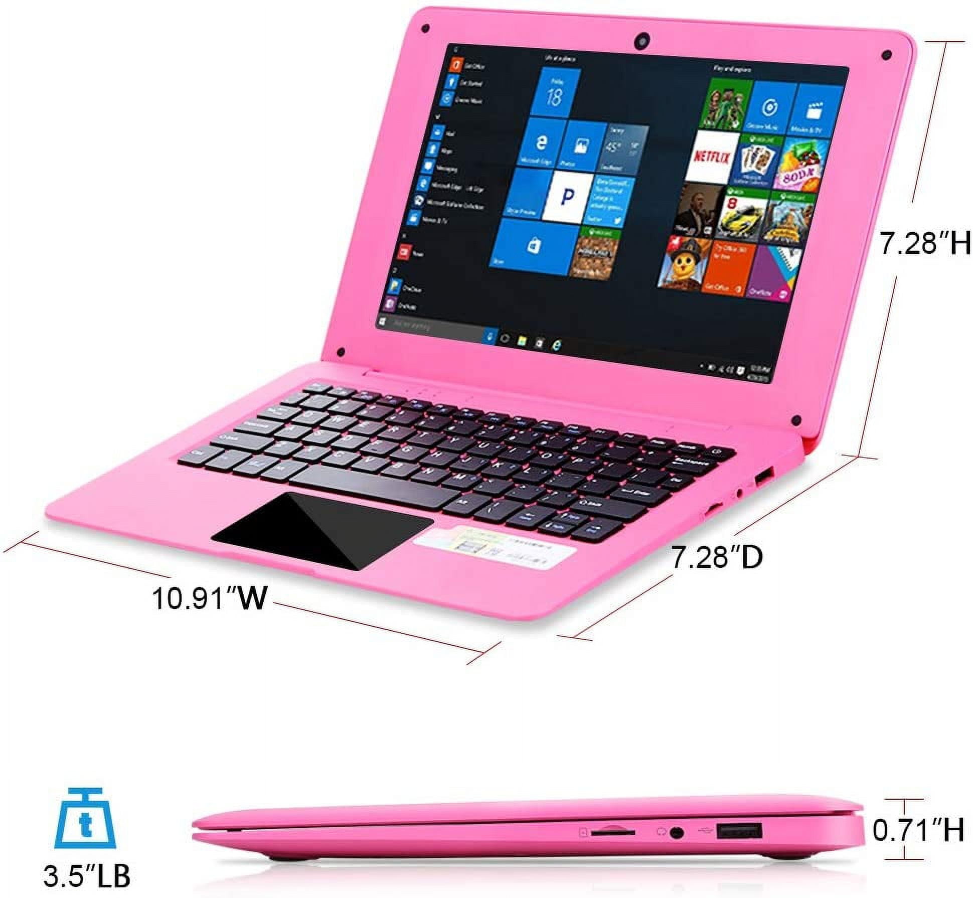 NBD Windows 10 Laptop 10.1 Inch Quad Core Notebook Slim and Lightweight Mini Netbook Computer with Netflix YouTube Bluetooth WiFi Webcam HDMI, and Laptop Bag,Mouse, Mouse Pad, Headphone (Pink), 2 GB
