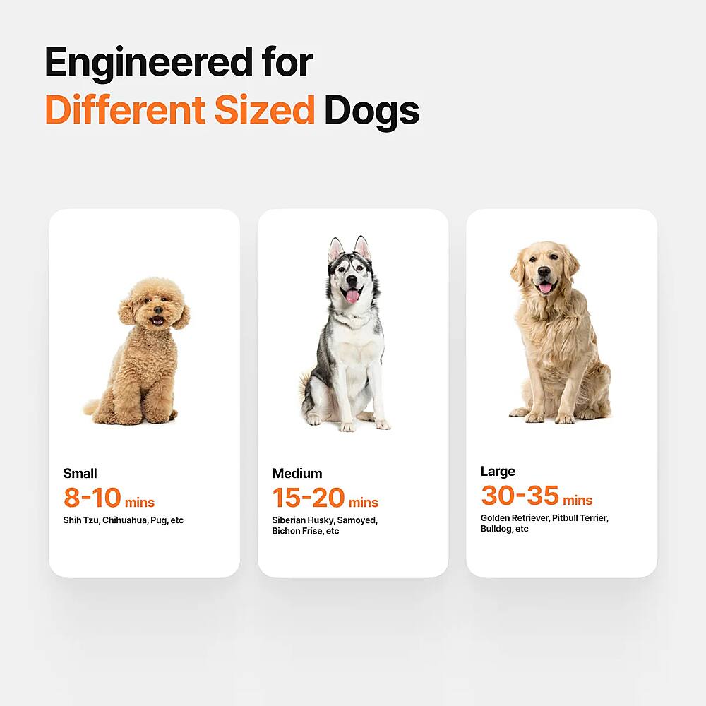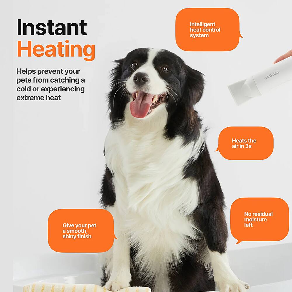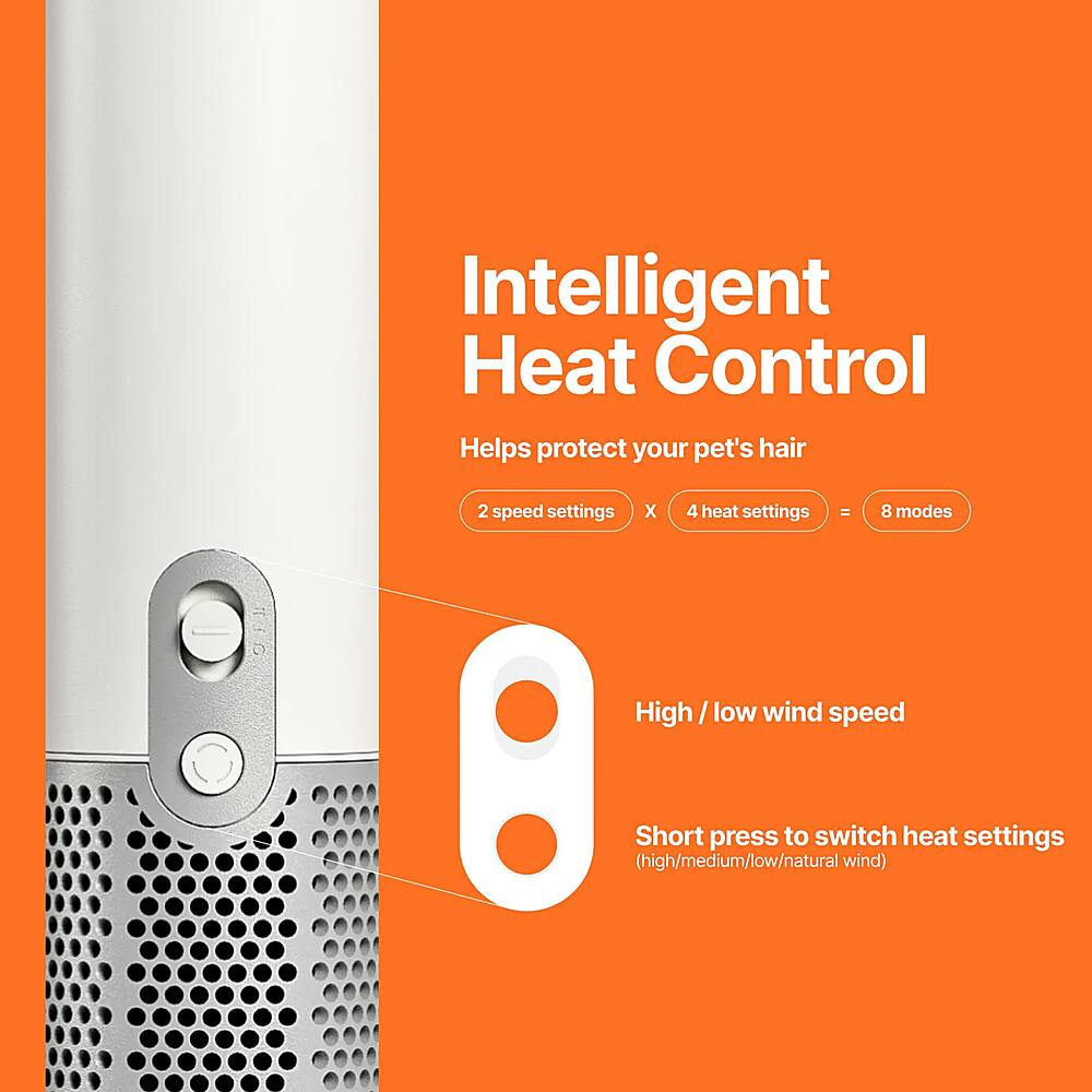 The integrated insulation, casing, and temperature control automatically stops heating if it gets too high, ensuring worry-free drying sessions for your furry friend.