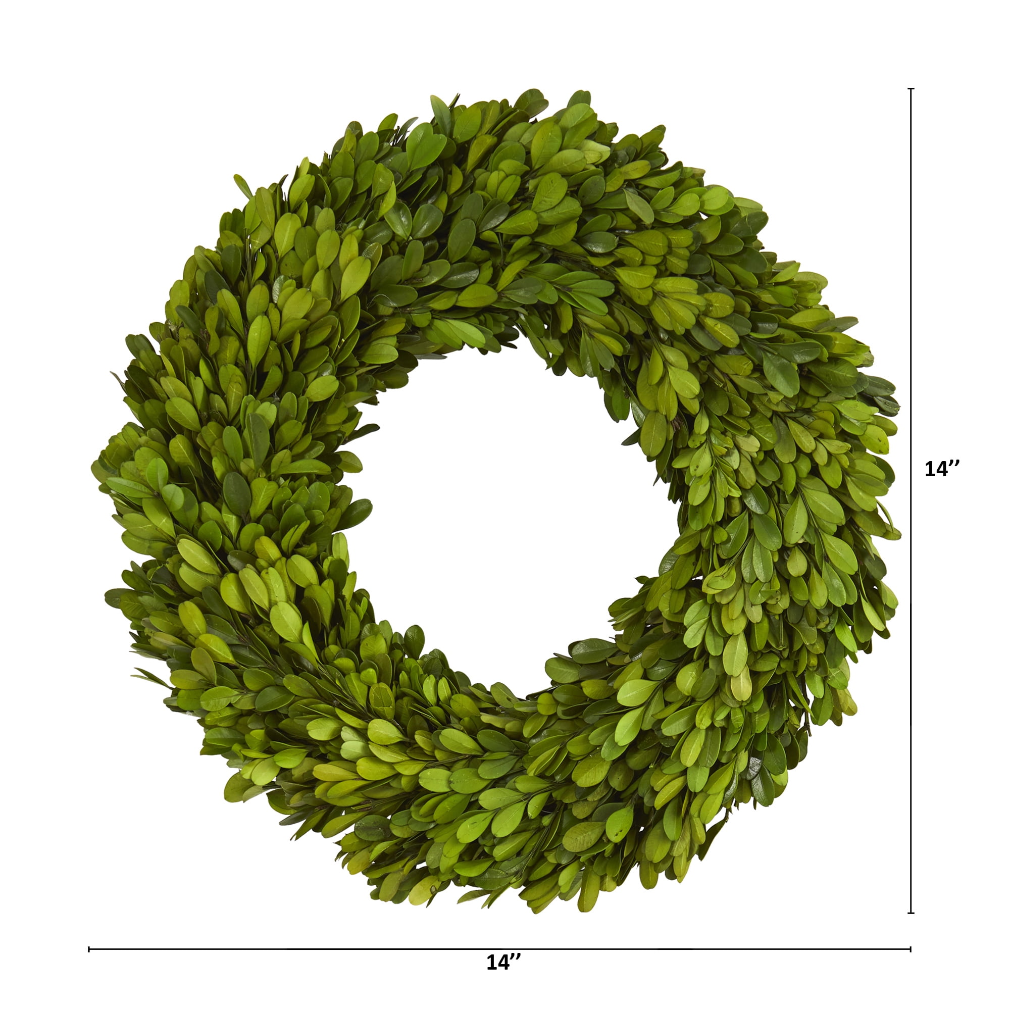 Preserved decorative boxwood wreath Stunning display accented with vibrant greenery and trim Makes a thoughtful and timeless gift for loved ones Recommended for indoor use only Wreath measures 14 inches in diameter