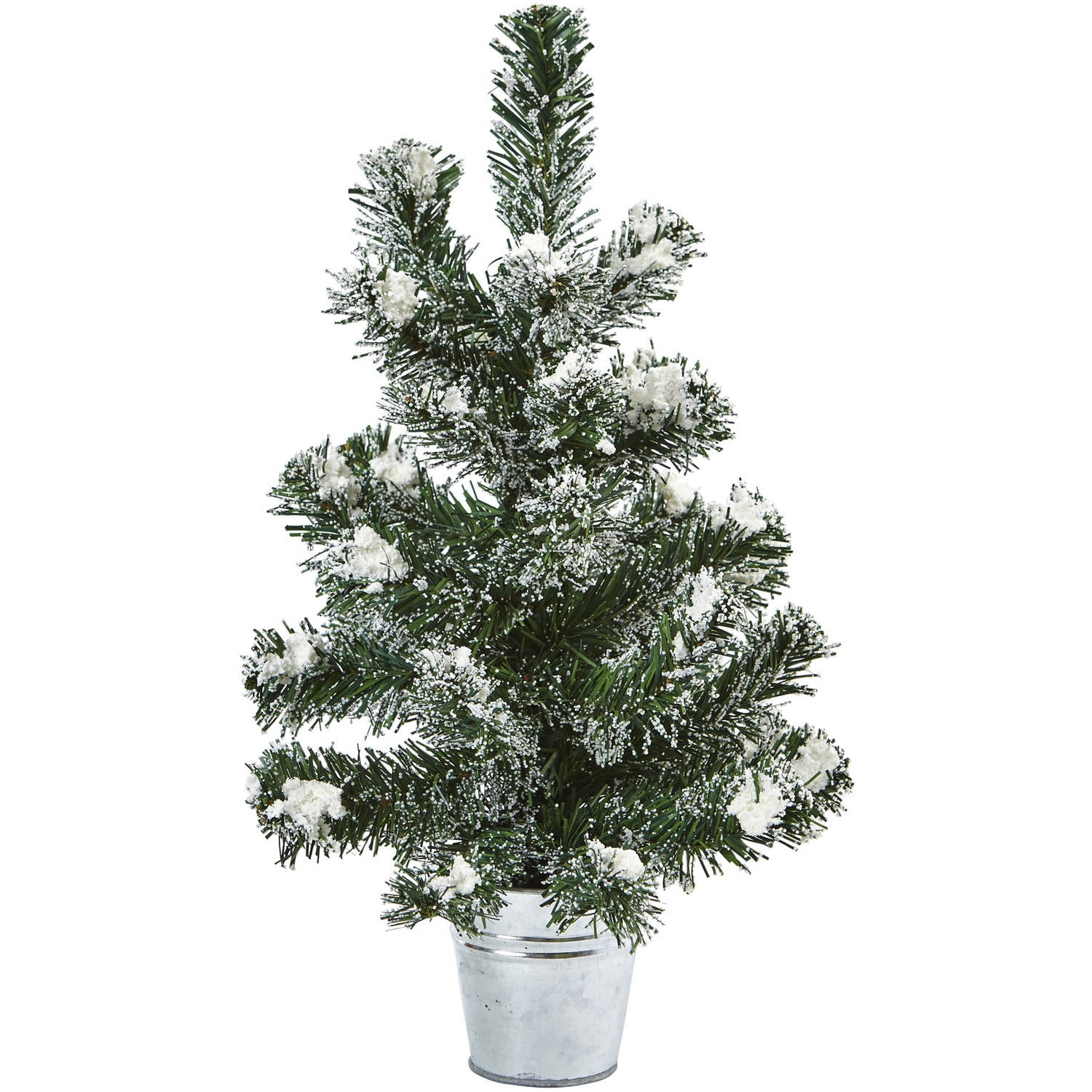 Nearly Natural 18″ Mini Snowy Pine Artificial Christmas Trees with Tin Planters (Set of 2)