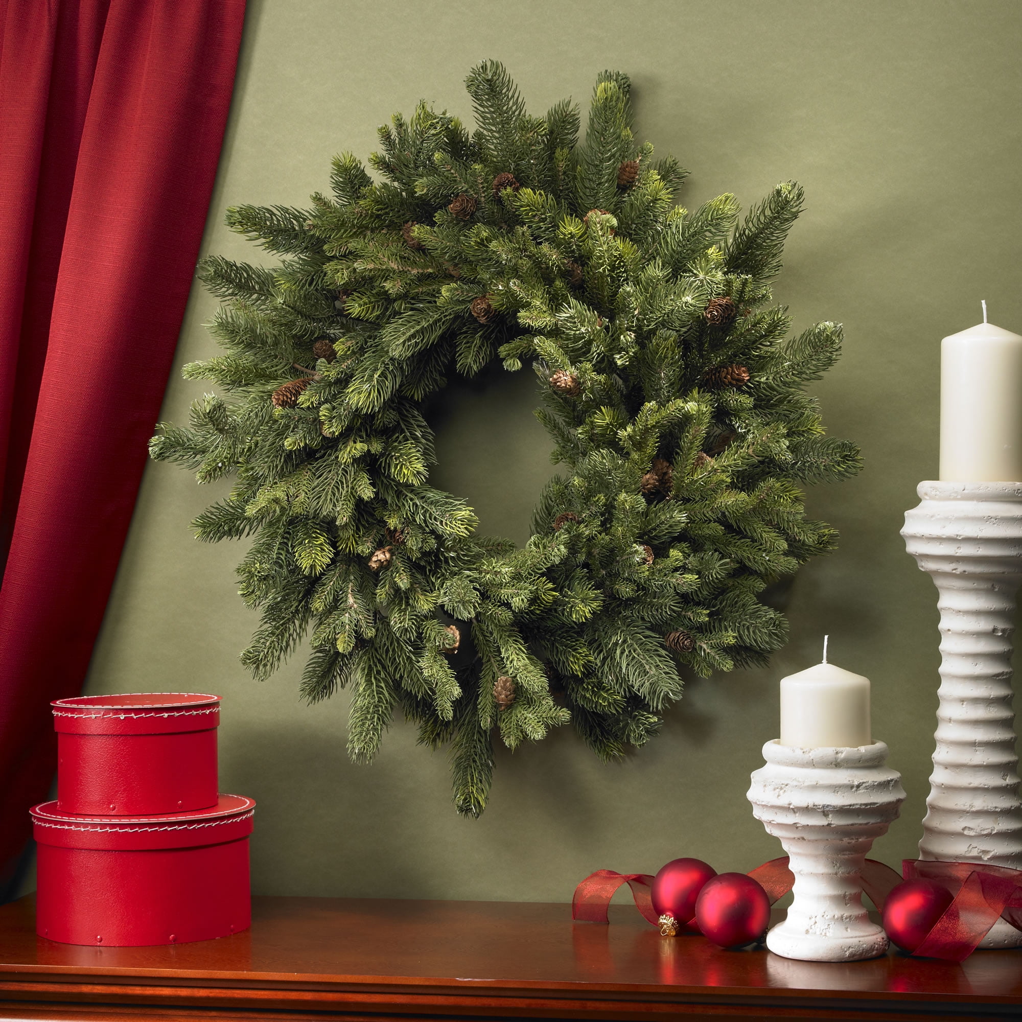 Nearly Natural Sometimes, the classics are what you want. And this timeless 30” Pine & Pinecone Wreath fits that bill perfectly. With lush, soft needles of varying sizes, twisted into a delicate spiral, and adorned with classic pinecones, this wreath is exactly what every “old time holiday” décor needs. Also makes a great gift for those who enjoy a classic touch to their holiday decorating.