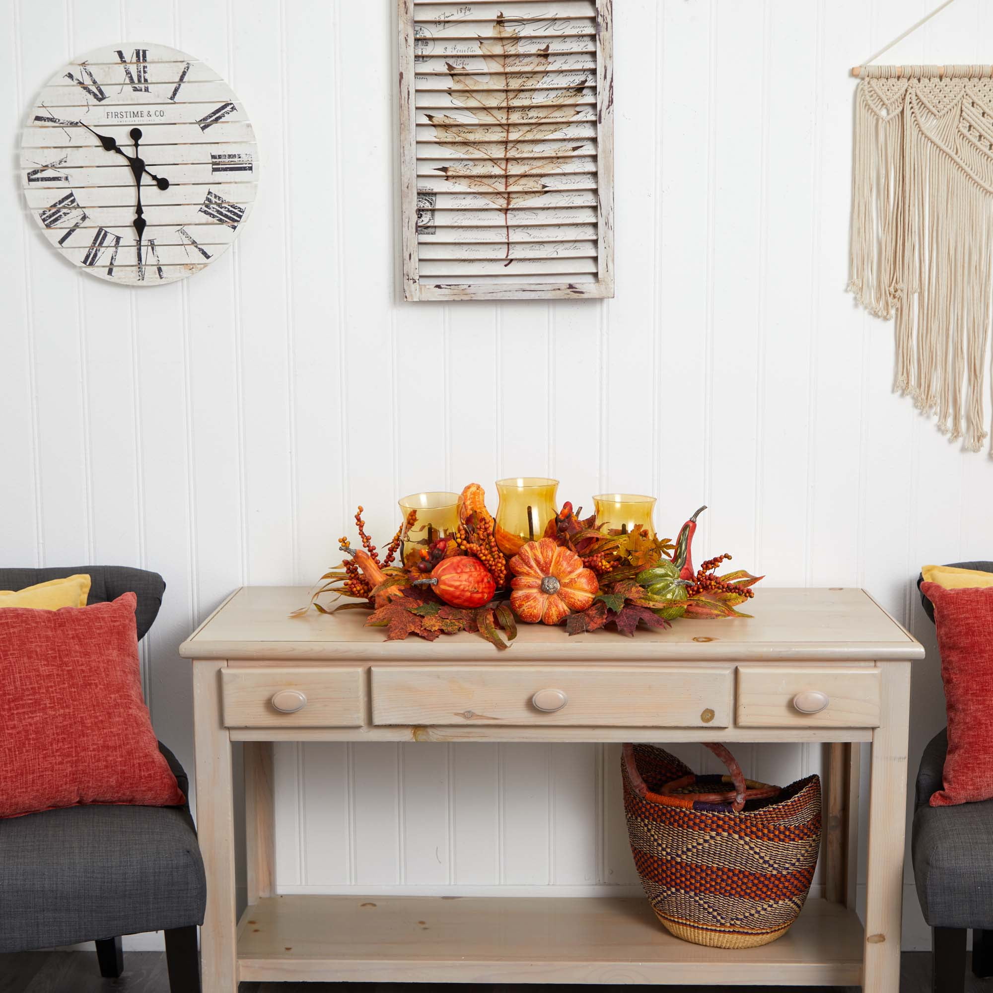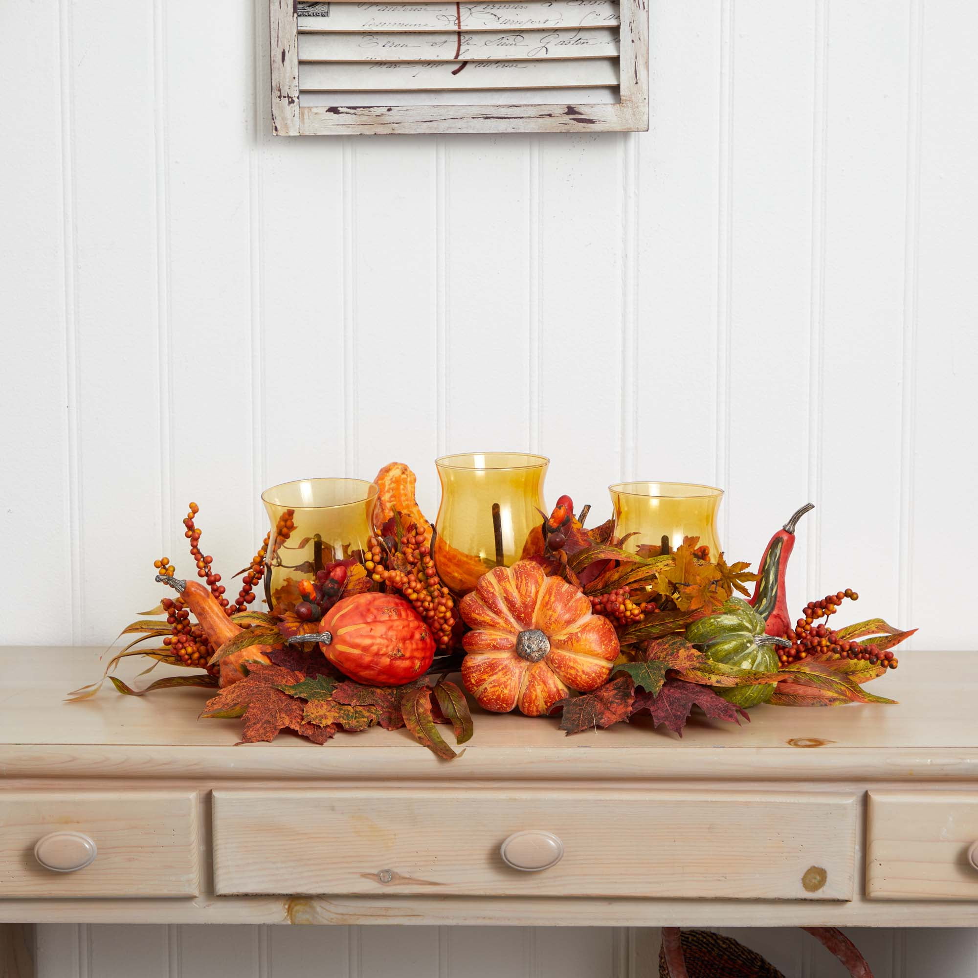 Nearly Natural Pumpkin and Gourd Artificial Flowers Harvest Triple Candelabrum, Multicolor