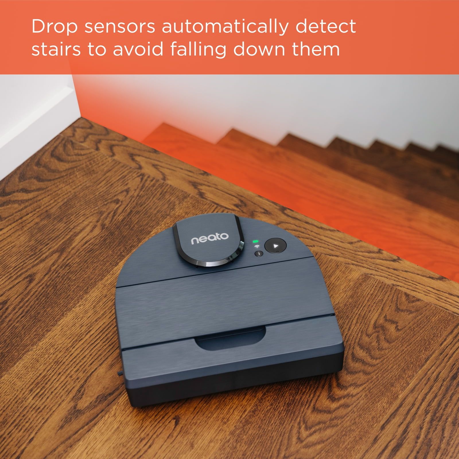 You can’t use circles to clean a square corner. That’s why Neato introduced the D-shape to the industry more than 15 years ago. That D-shape allows for a brush right at the edge of the vacuum, instead of in between wheels like those round robots. This D-shape also fits an extra-large dirt bin that holds more during a cleaning session. The result? Corner-to-corner and edge-to-edge cleaning in a short amount of time. The Neato D8 has 30%+ longer runtime than the D4. That’s 100 minutes of cleaning on a single charge. If your robot needs more time to finish a long cleaning run, it will auto-recharge and resume from exactly where it left off to finish the job. You don’t have to babysit your robot while it’s cleaning—with Neato, you can just let it run. The powerful performance you have come to expect from Neato continues with the D8. Combined with a High-Performance filter that traps up to 99% of allergens and dust particles, this is one vacuum you’ll want to use every day. Switch from energy-saving Eco Mode for general vacuuming to high-performance Turbo Mode for a more powerful clean. The Neato D8 uses LaserSmart powered by LIDAR, the same technology found in self-driving vehicles, to map and navigate your home with precision, even in the dark like under furniture. Using lasers to understand where it is in your home, Neato methodically cleans from room to room in straight lines for a quicker clean, leaving your carpets with that satisfying just-vacuumed look. Worried about stairs? There’s no need to be with Neato. Drop sensors automatically detect stairs to avoid falling down them and continues to learn your floorplan as you use it. Get cleaning in minutes with Neato’s hassle-free, Bluetooth-enabled setup. Using the MyNeato app, create No-Go Zones to define areas your robot should avoid like your pet’s eating area and schedule Routines to clean when you want. It’s an experience that makes Neato the clear choice for clean.