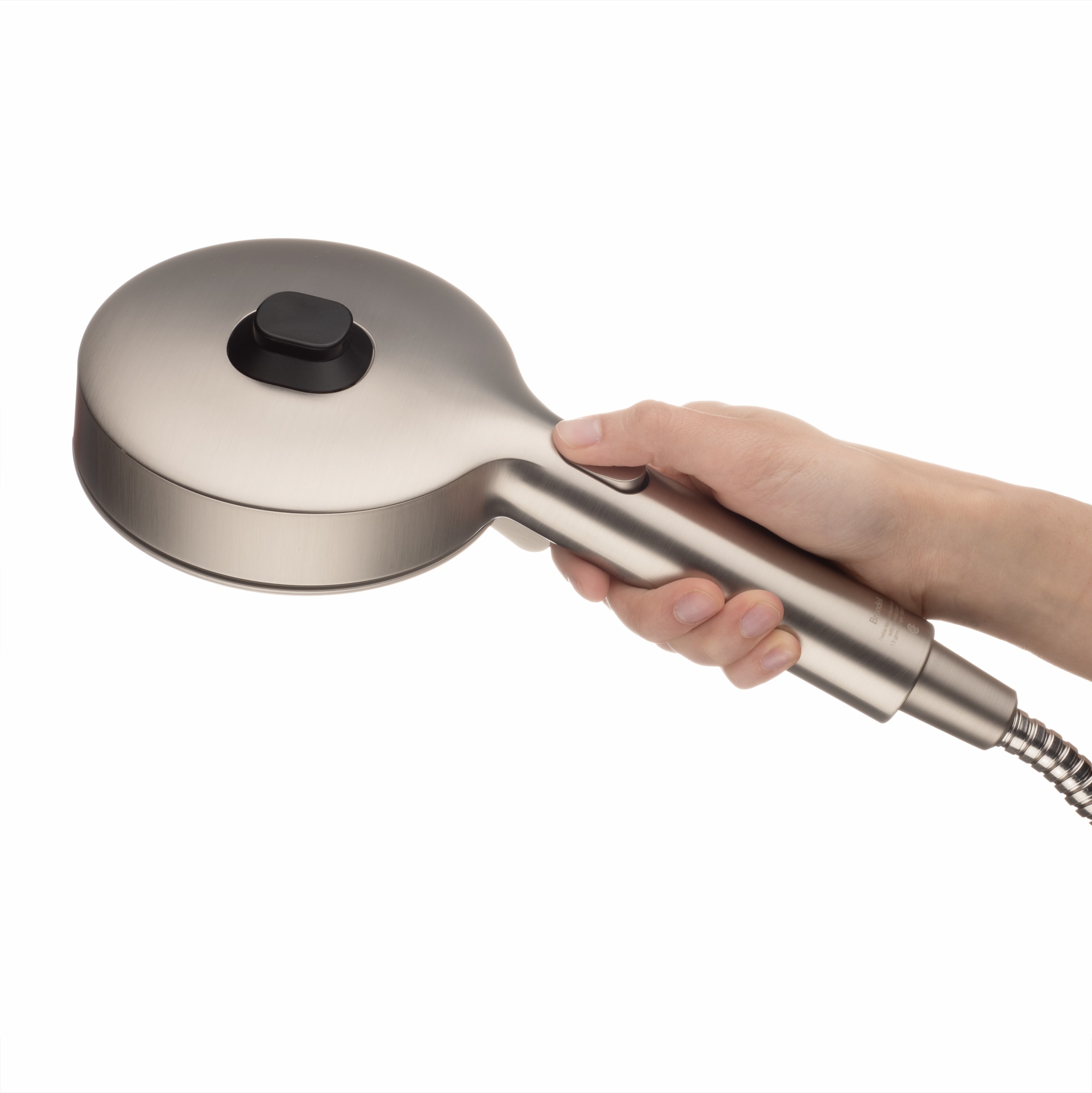 Save water without even knowing it. Nothing beats a shower with satisfying pressure—and our water-saving Nebia Yuba Handshower delivers. Patented Nebia spray technology provides up to 75% more force when measured against EPA WaterSense performance specifications and up to 40% more water savings compared to standard showerheads—for luxurious, invigorating sprays with less water waste. Each of the spray settings are unique, so your shower can go from soothing to invigorating with a simple turn of the wide, 5.3” rotating shower face. Want more water savings? Our Yuba HaloNetic Handshower features a Pause button to conveniently reduce the flow to a trickle in any spray setting. And with its 60″” flexible, stainless steel hose, there’s no such thing as a hard-to-reach place. Everyone showers differently, and we’ve designed our HaloNetic Double Docking system with that in mind. Slide the handshower into the traditional holster for more height—or lower it and snap in place with the secure magnetic dock. Yuba easily installs on your existing shower arm, without the need for special tools or plumbing experience. Whether your bathroom style is traditional, trendy, or anything in between, its crisp, modern design and distinct finishes are sure to be a great fit.