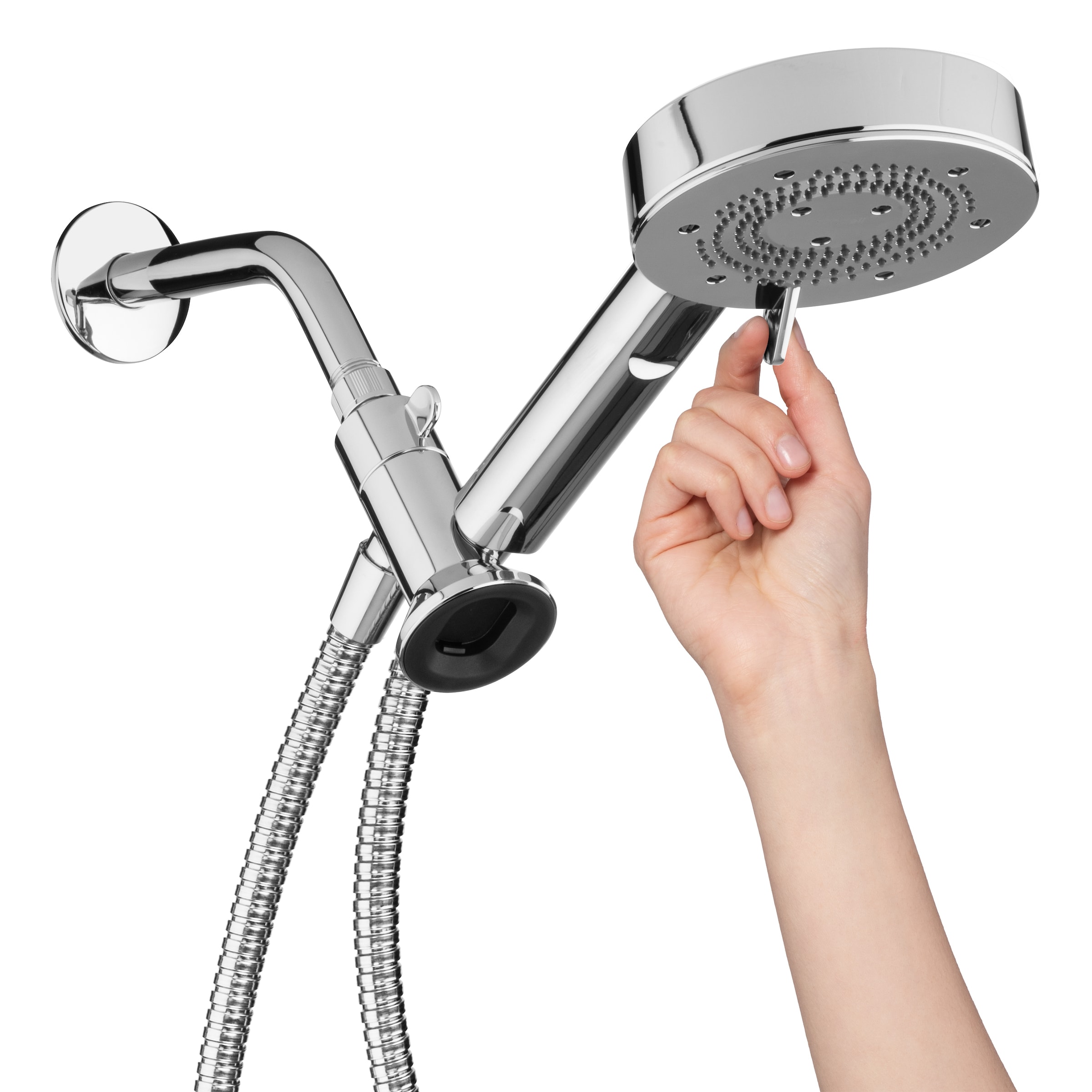 Docking Technology: HaloNetic Double Docking System – slide the handshower into the traditional holster for more height—or lower it and snap in place with the secure magnetic dock