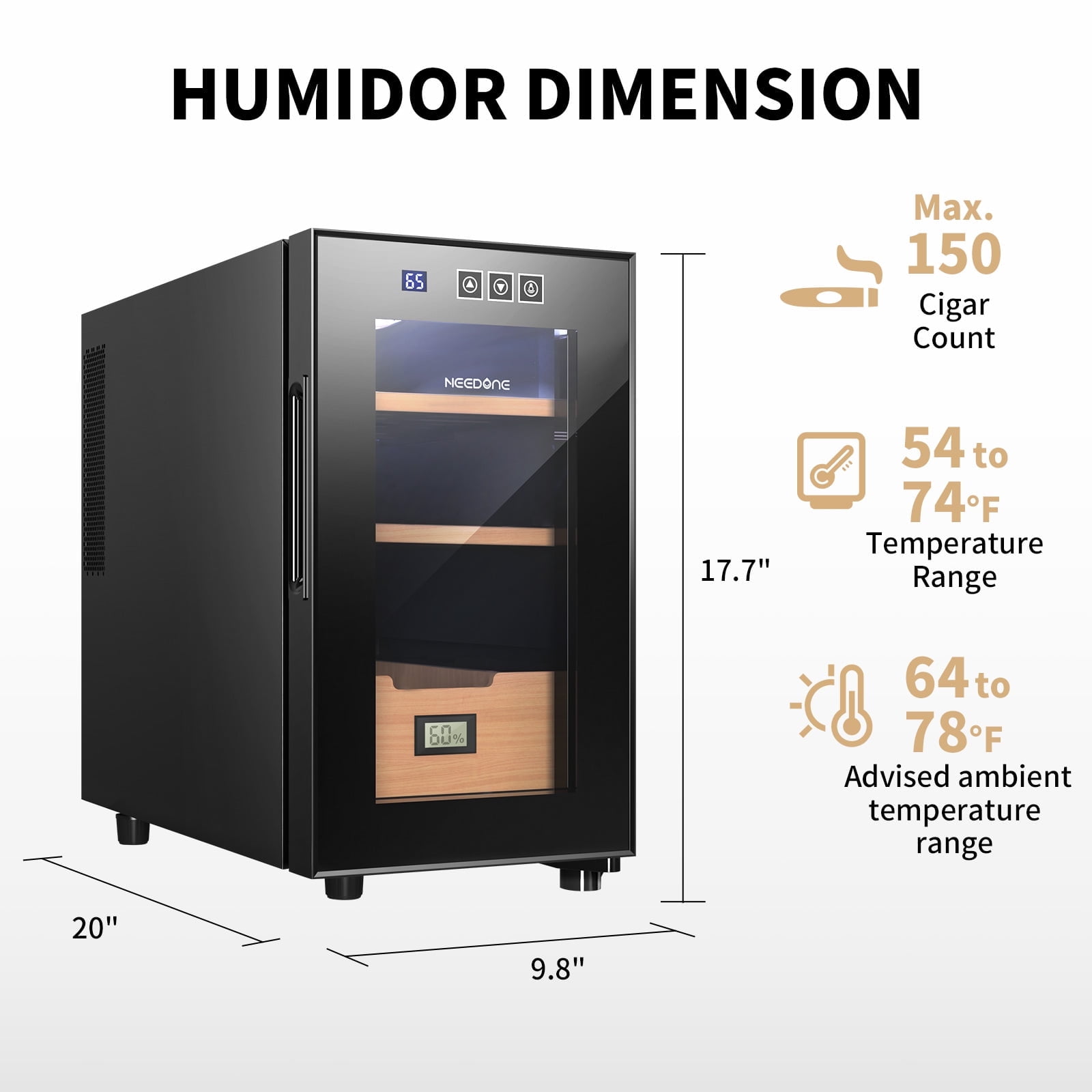 NEEDONE 23L Electric Cigar Humidor for 150 Counts, Cooling Control System,With Spanish Cedar Wood Shelves,New Year,Christmas Gifts