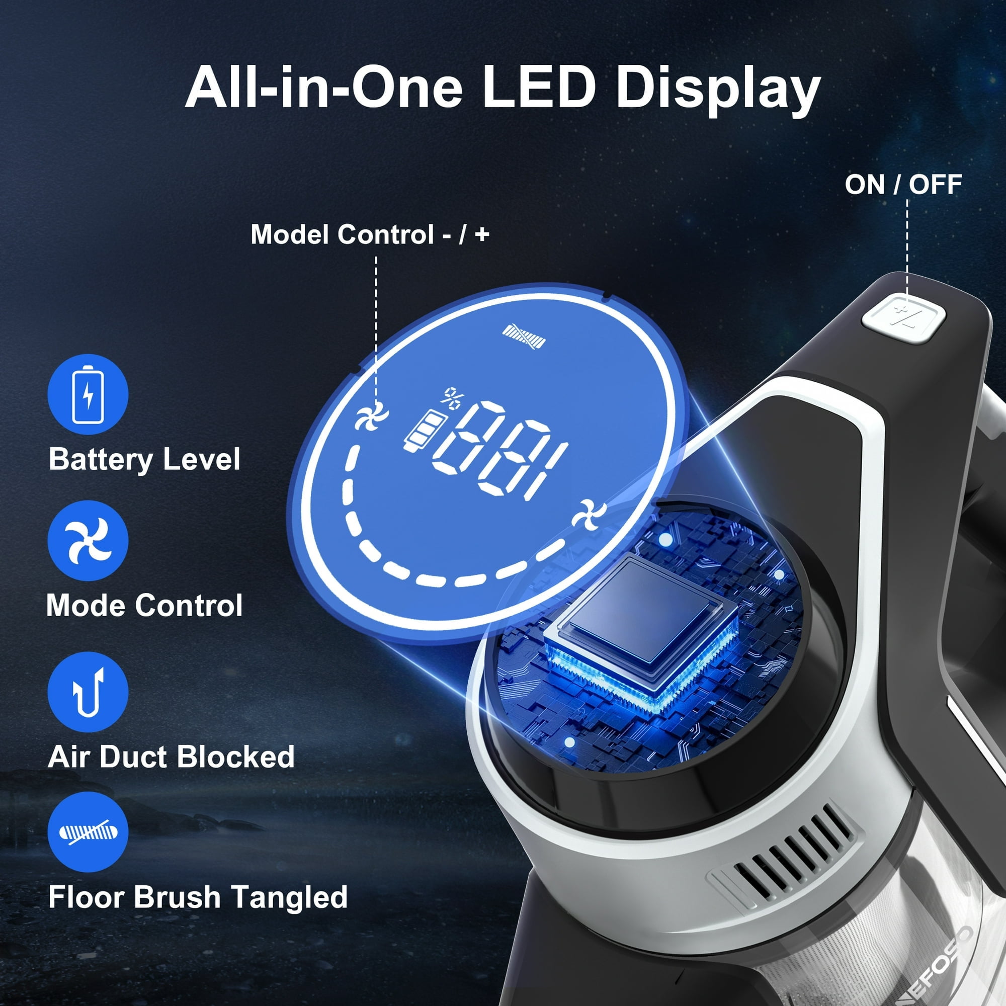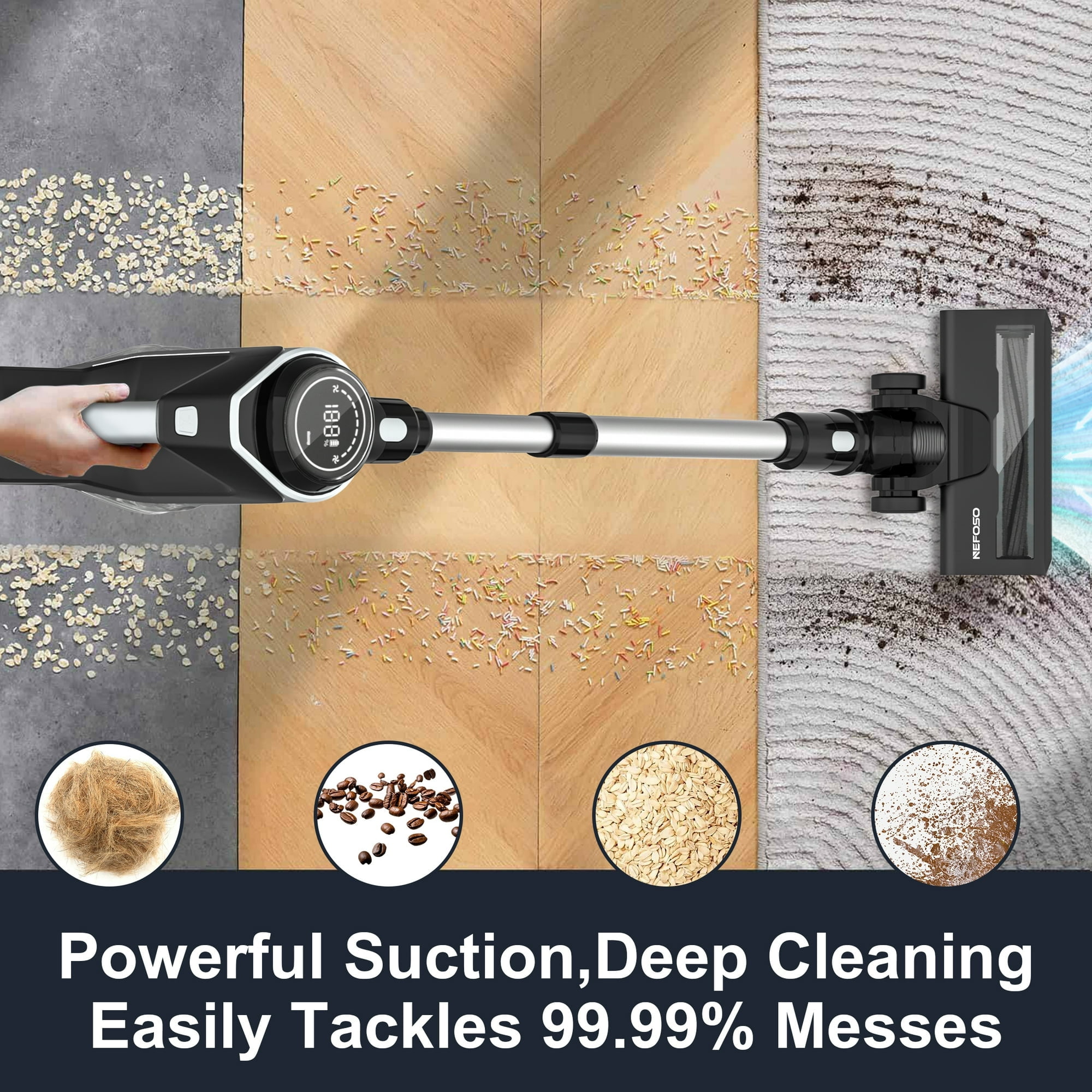 Nefoso Cordless Vacuum Cleaner with LED Display,20000pa 35min Lightweight Stick Vacuum for Carpet Hard Floor Pet Hair(Black)