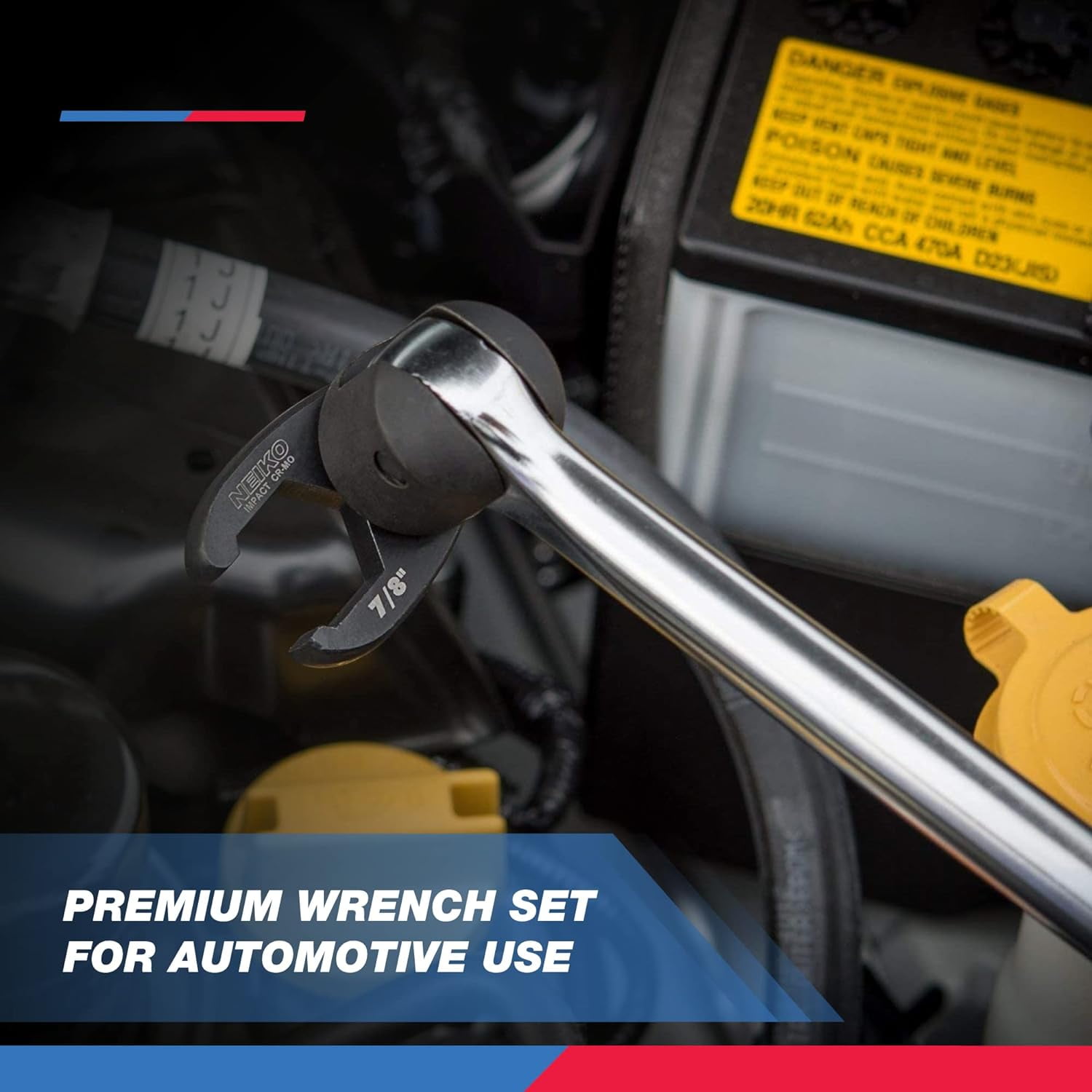 DUAL DRIVE SET: With 3/8” and 1/2” drive ratchets, extensions, or impact torque wrenches, you can utilize these flare nut wrenches where standard 6-point and 12-point sockets and wrenches simply cannot fit. CROWS FOOT SHAPED: This flare nut wrench set includes 12 large sized crowfoot wrenches that resemble crows feet that are utilized in automotive repair work when reaching and holding nuts and/or boltheads in difficult spots on your car or vehicle. PREMIUM GRADE Cr-Mo: Each standard SAE crowfoot wrench is made of industrial grade, heat-treated, drop forged chrome molybdenum steel that creates an extremely tough tool and delivers a lot of turning power for those difficult angles. CROWFOOT WRENCH HOLDER CASE: Each crowfoot wrench socket stores in a blow molded compartment in a high impact ABS case that allows for storage, efficiency and portability. CROWFOOT SIZING: Each set includes precision crafted 5/16”, 3/8”, 7/16”, 1/2″, 9/16”, 5/8”, 11/16”, and 3/4” for 3/8-inch drive, and 13/16”, 7/8”, 15/16”, and 1” sizes for 1/2-inch drive for larger cars, trucks, or vehicles.