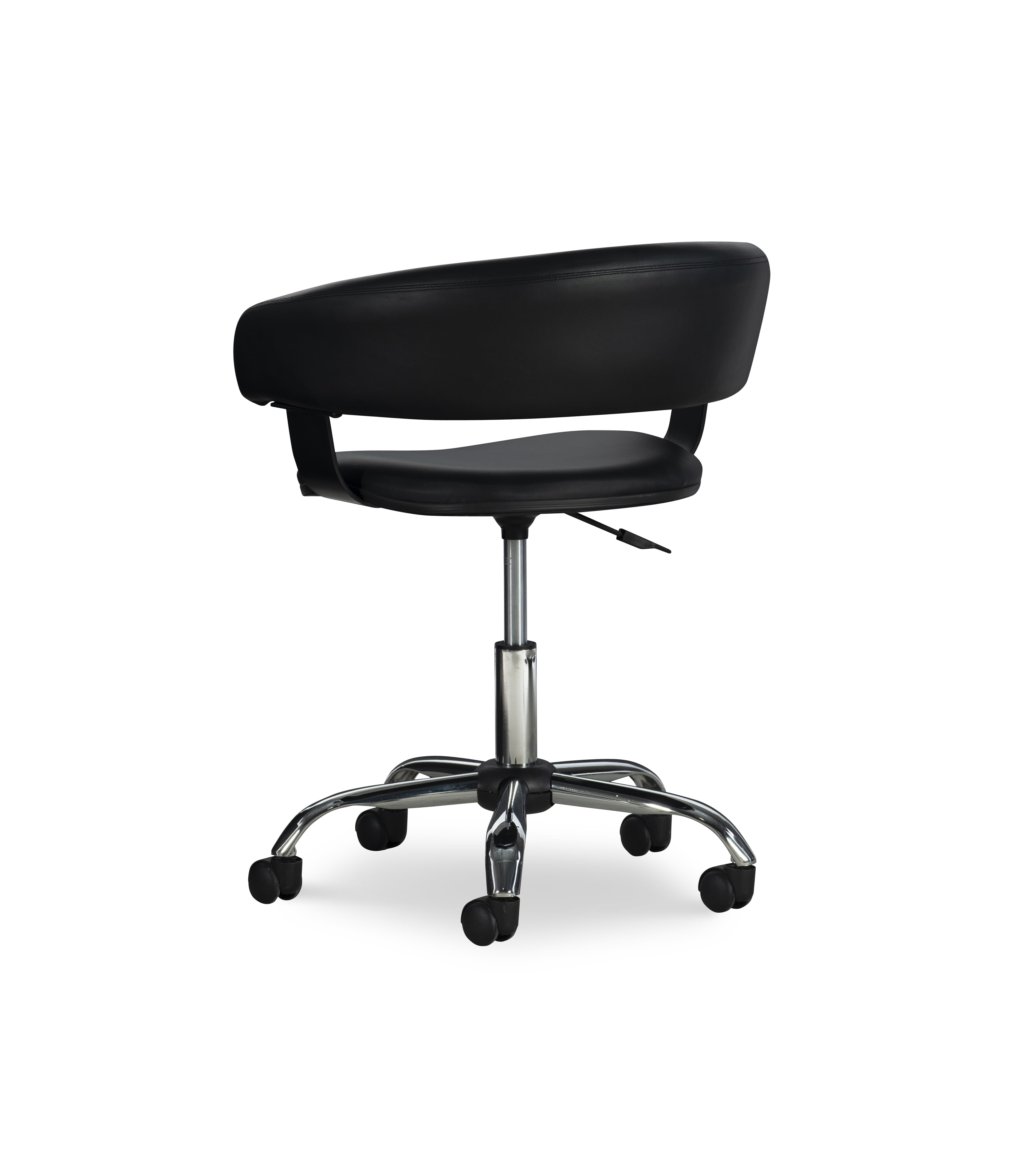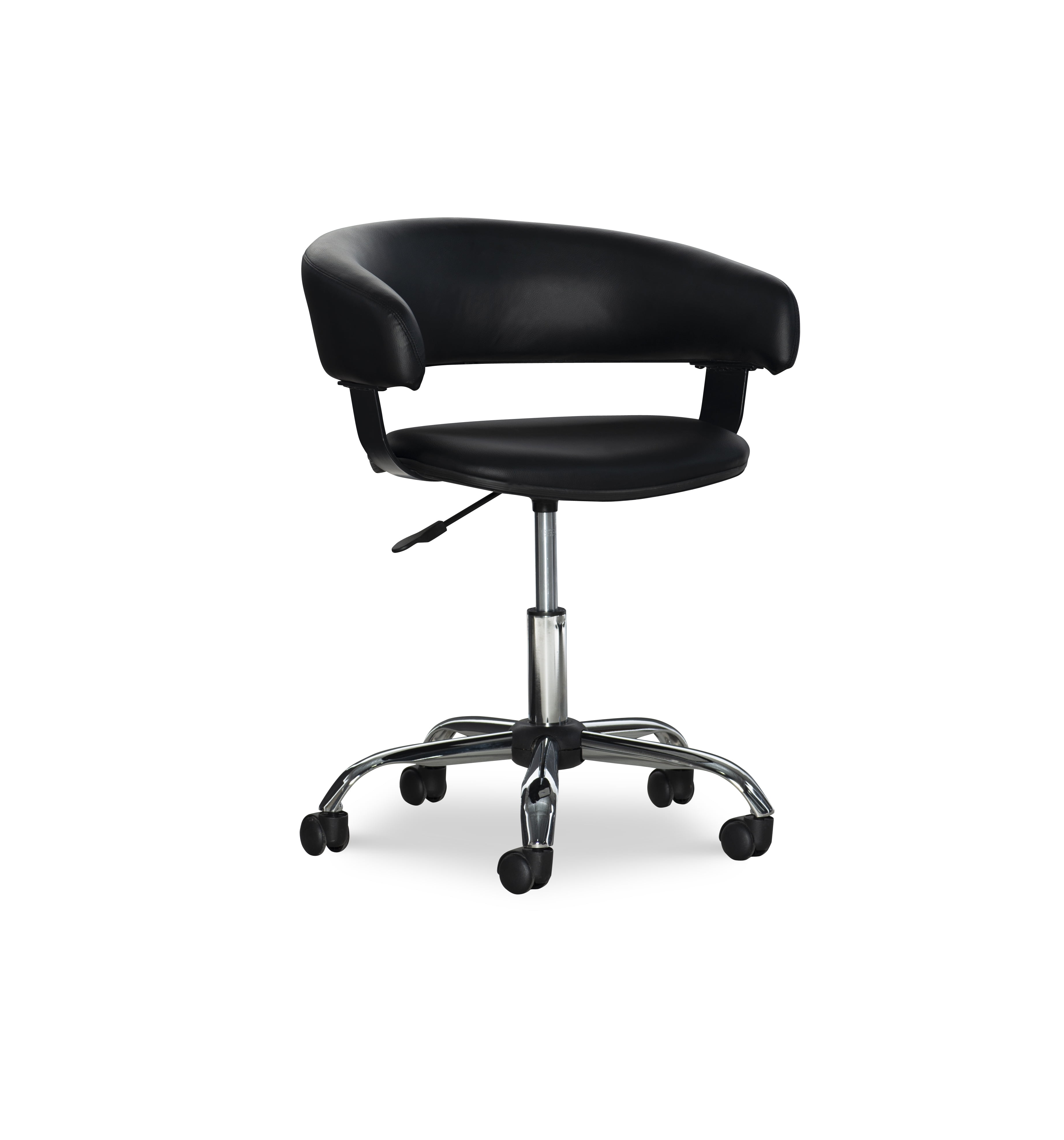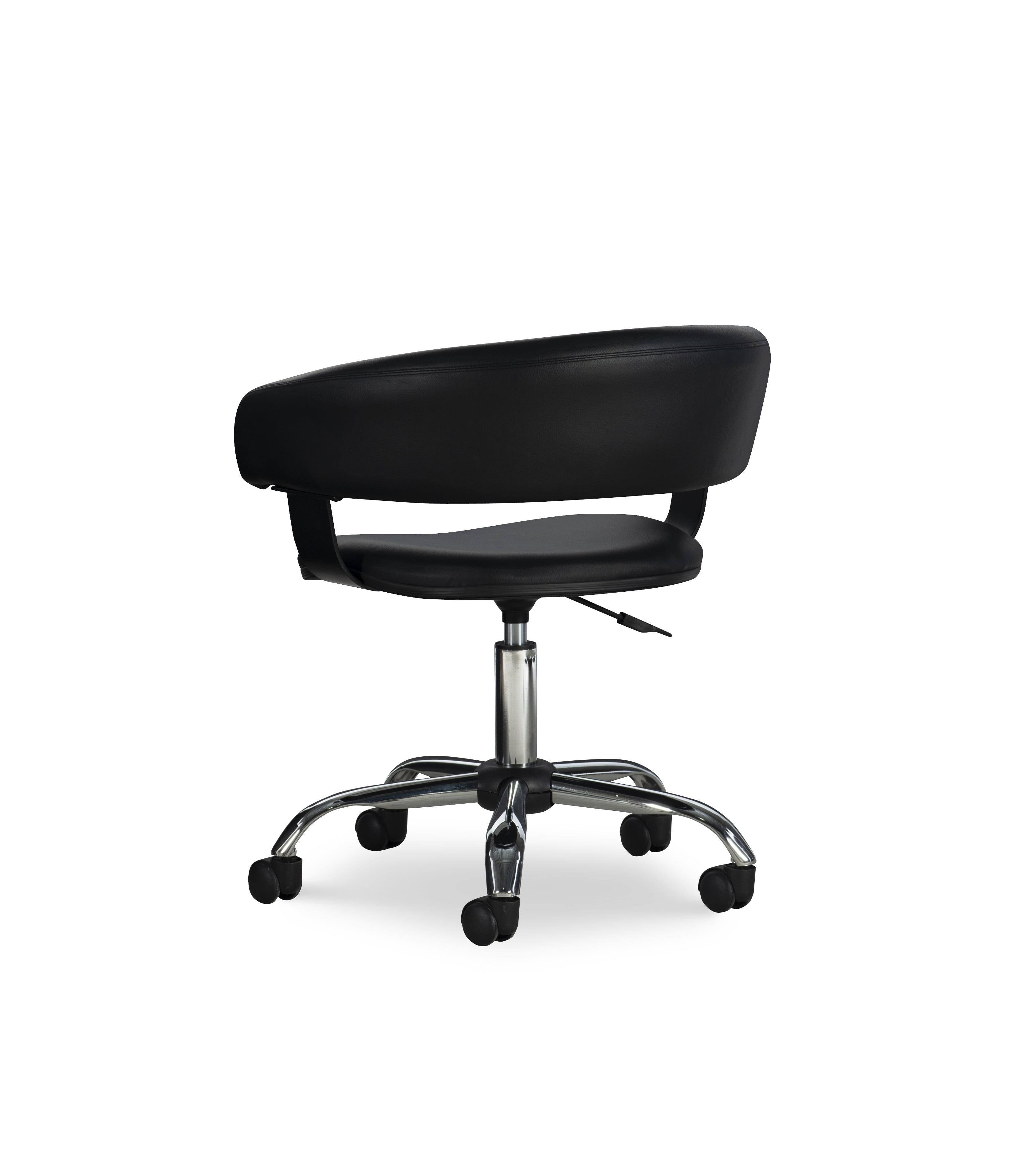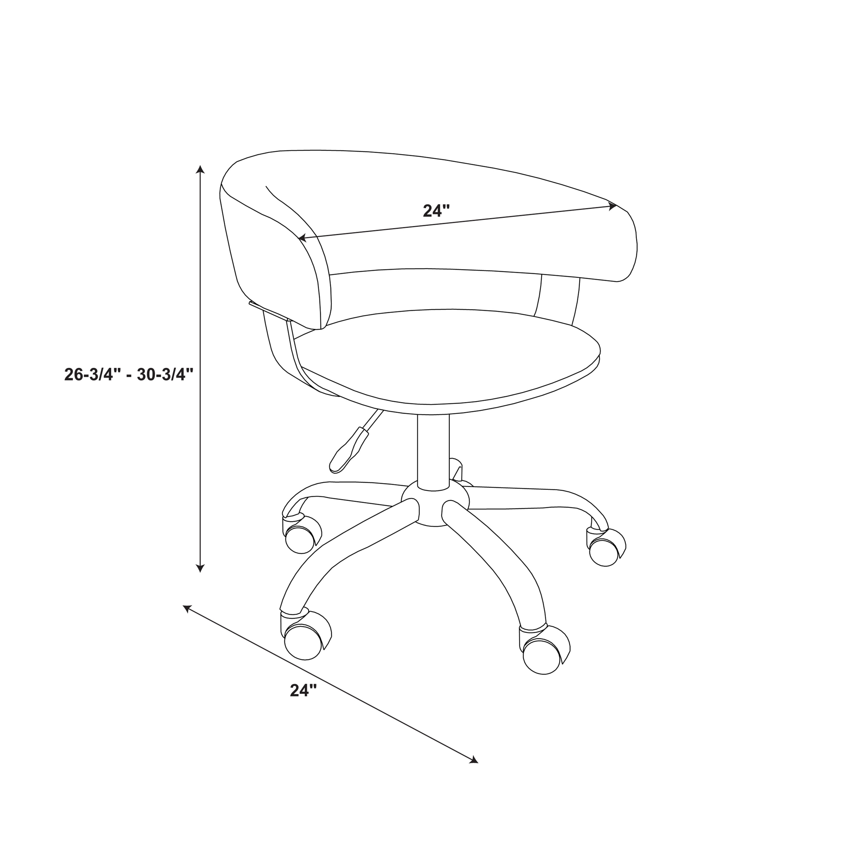 plush swivel seat curved seat back black faux leather gas lift Some assembly required Assembled Dimensions: 24″ W x 24″ D x 26.6″-30.0″ H Weight Capacity: 225 lbs Ships in one box