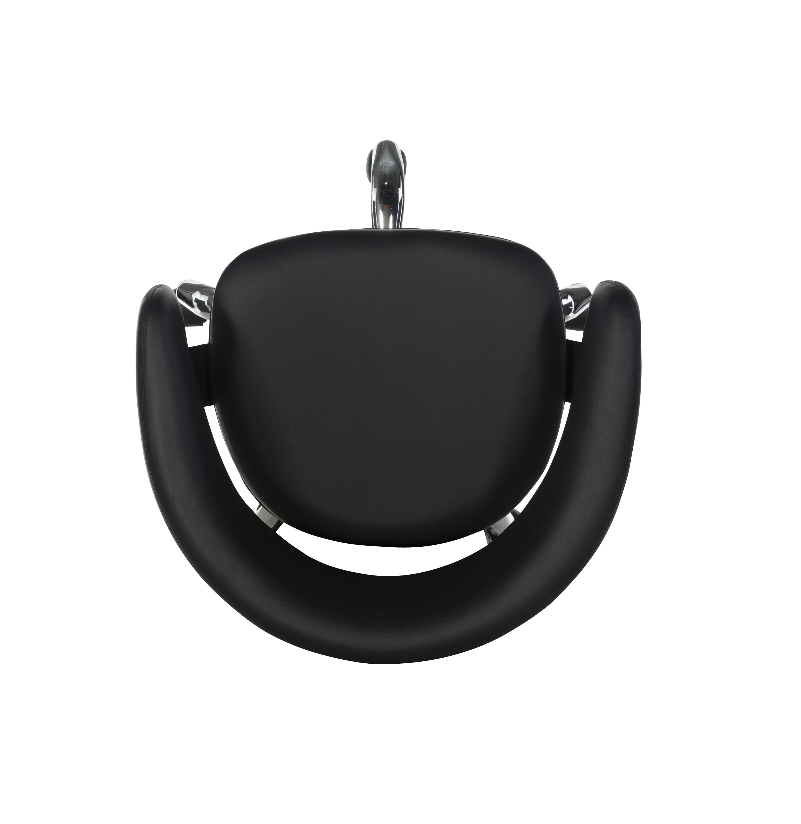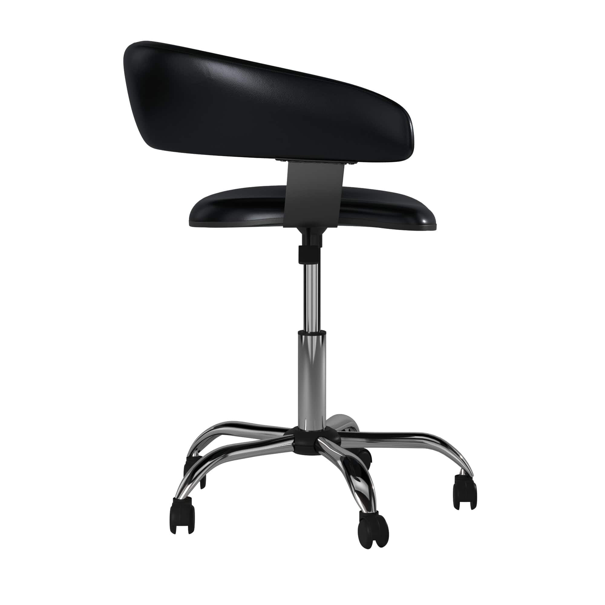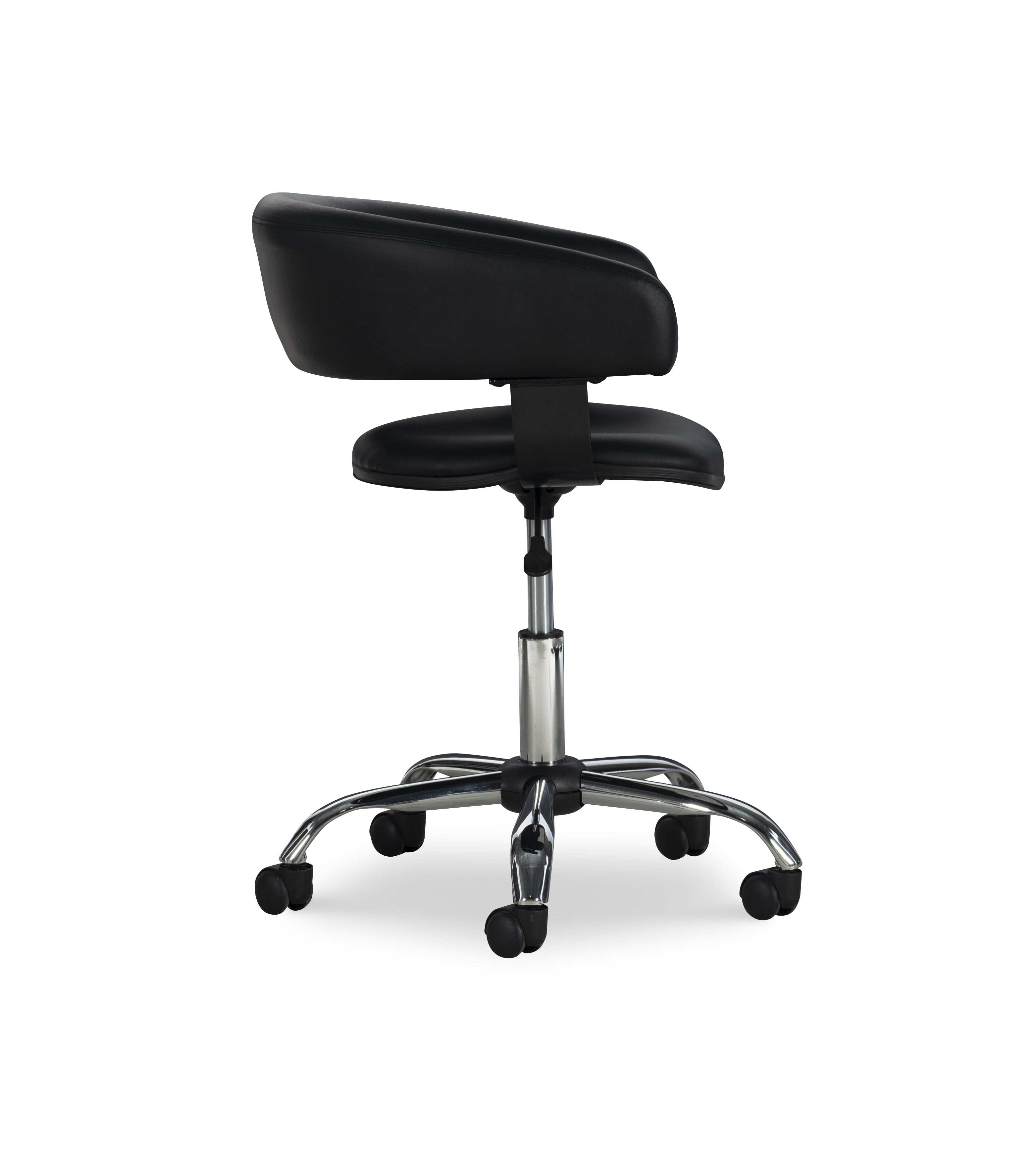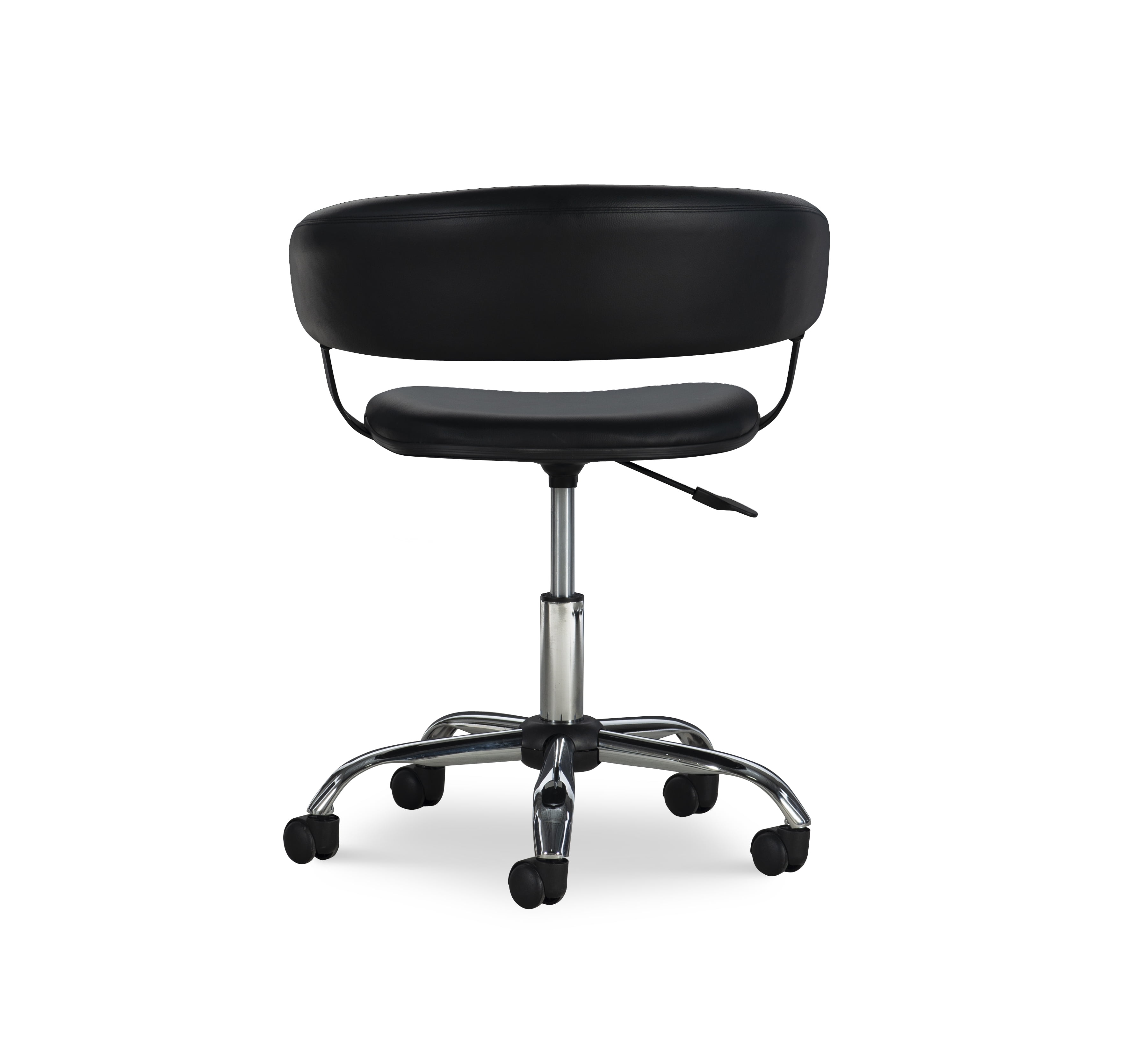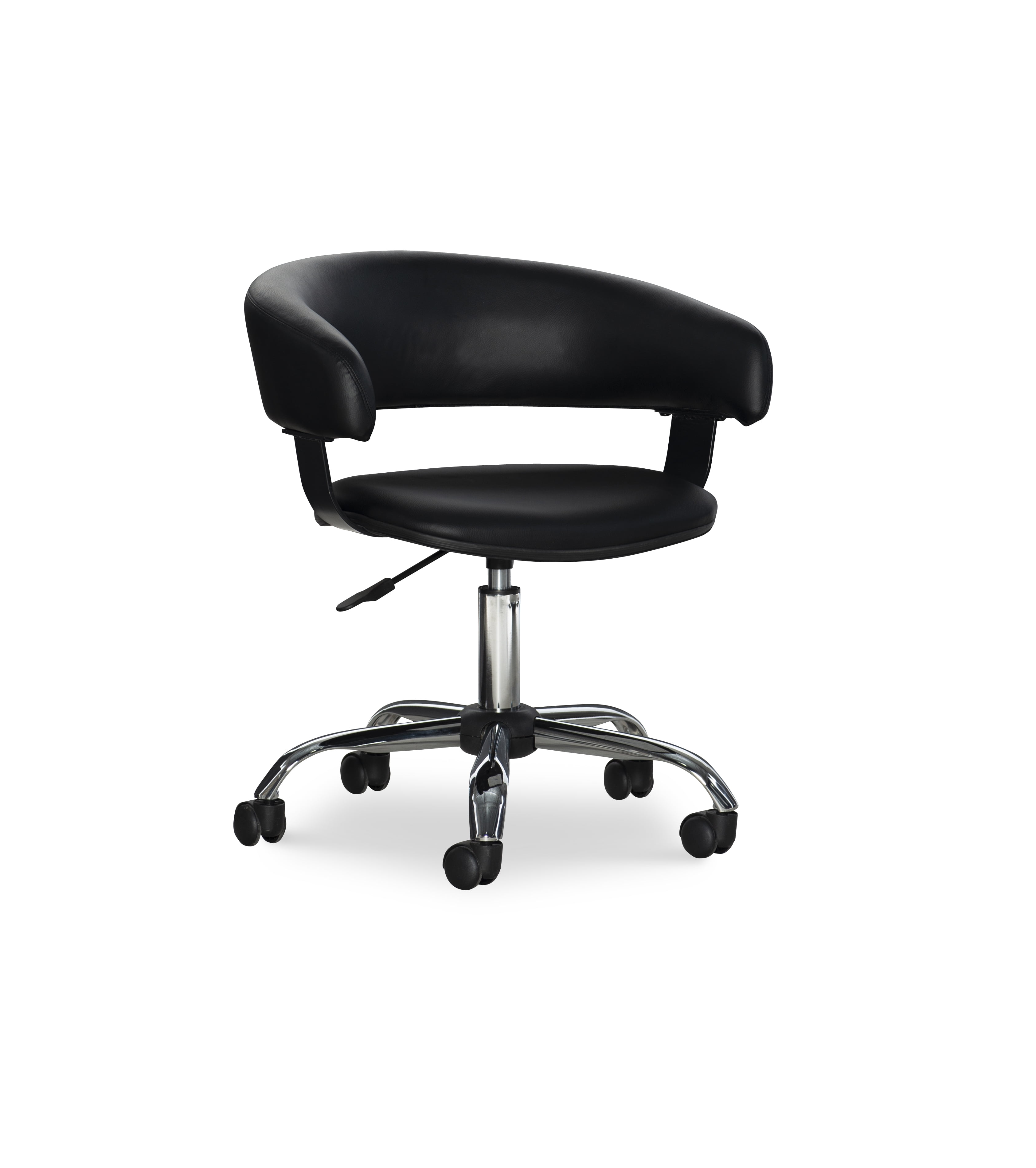 plush swivel seat curved seat back black faux leather gas lift Some assembly required Assembled Dimensions: 24″ W x 24″ D x 26.6″-30.0″ H Weight Capacity: 225 lbs Ships in one box