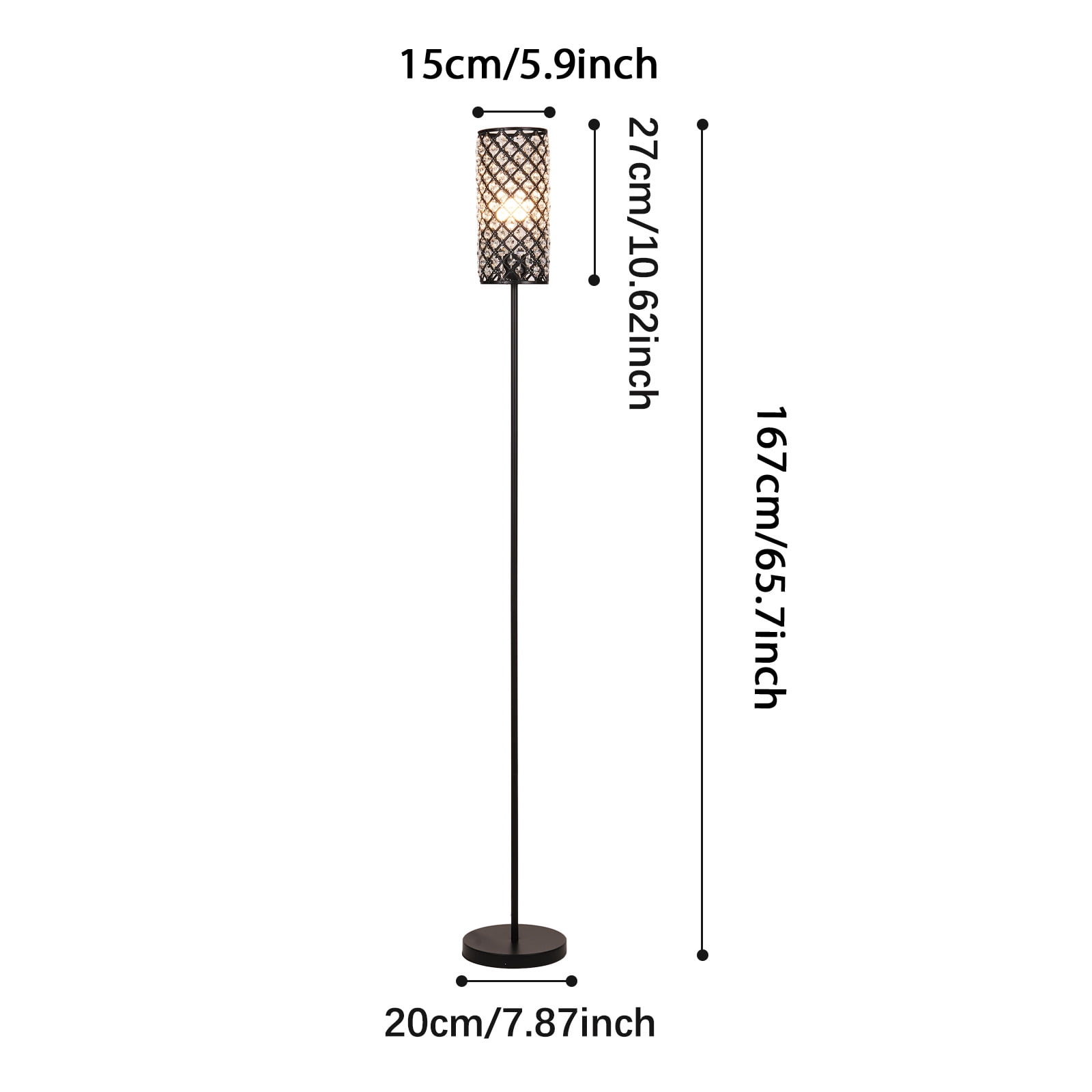 Add a new glow to your home with a stunning modern floor lamp Featuring K9 crystal shade and high-quality stem and base, the black floor lamps for living room look elegant and , adding a sense of luxury and blending well with any home decor. The standing lamps for living room’s heavy weight is enough to make the lamp stable, help the tall lamp is ran down by kids or pets. And Non-slip pad increase the friction with the ground, the living room lamp from sliding and falling. This floor lamp for bedroom is equipped with a foot switch, easy installation & included free bulb. The crystal floor lamp creates a romantic and relaxing atmosphere, just enjoy your leisure time with your friends/families Specifications: Power Supply: -120V~60Hz Light Source: LED light bulb Socket: E26 Color Temperature: 3000K-4000K-6500K Rated Power: 7W CRI: ≤80 Lumen: 500ML Lampshade Material: Crystal Body Material: Metal Base Diameter: 20cm/7.87in Lampshade Diameter: 15cm/5.90in Lampshade Height: 30cm/11.81in Total Height: 167cm/5.48ft