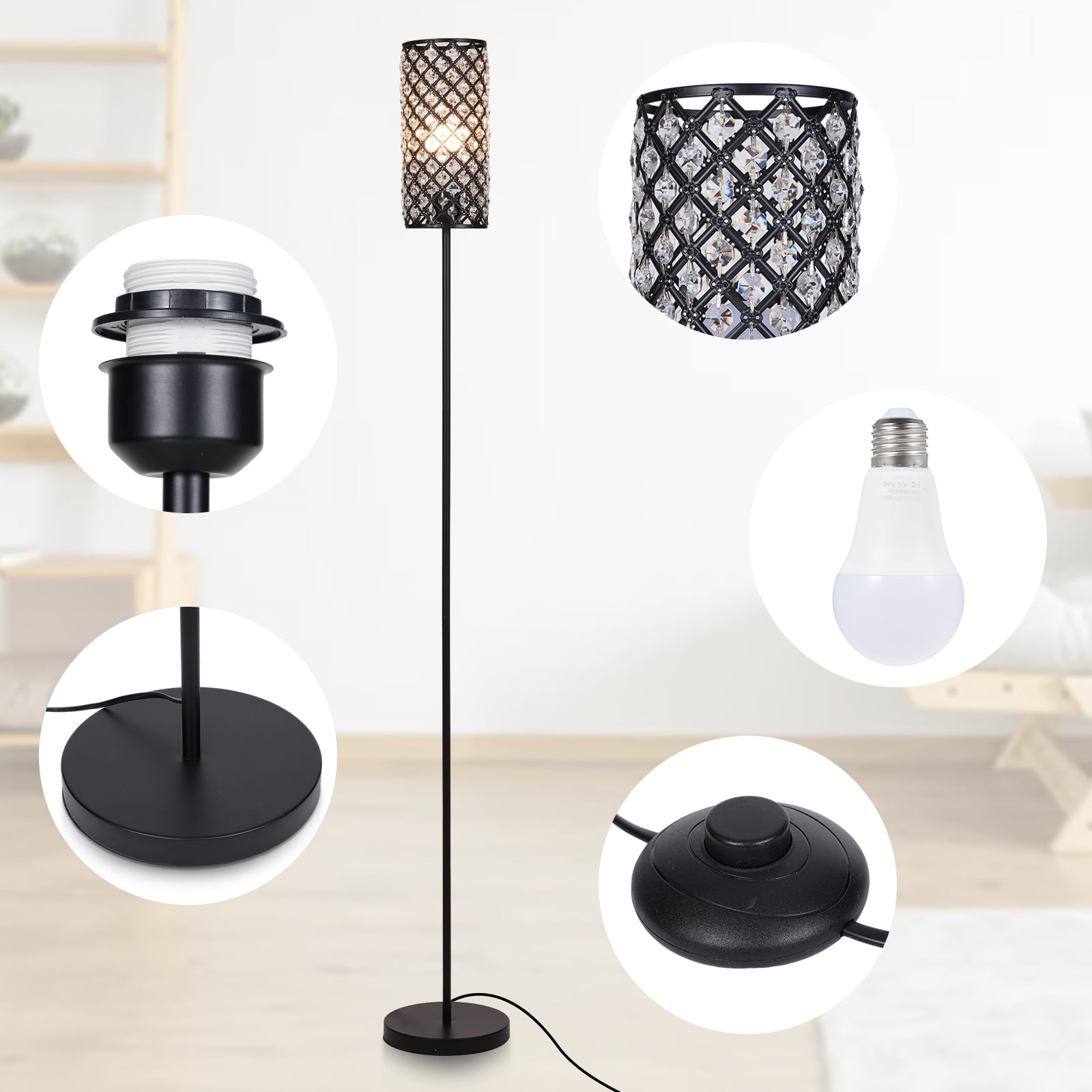 Neoglint Crystal Floor Lamp, Modern Standing Lamp with Crystal Shade and Bulb, Tall Lamp for Living Room, Bedroom, Office, Black