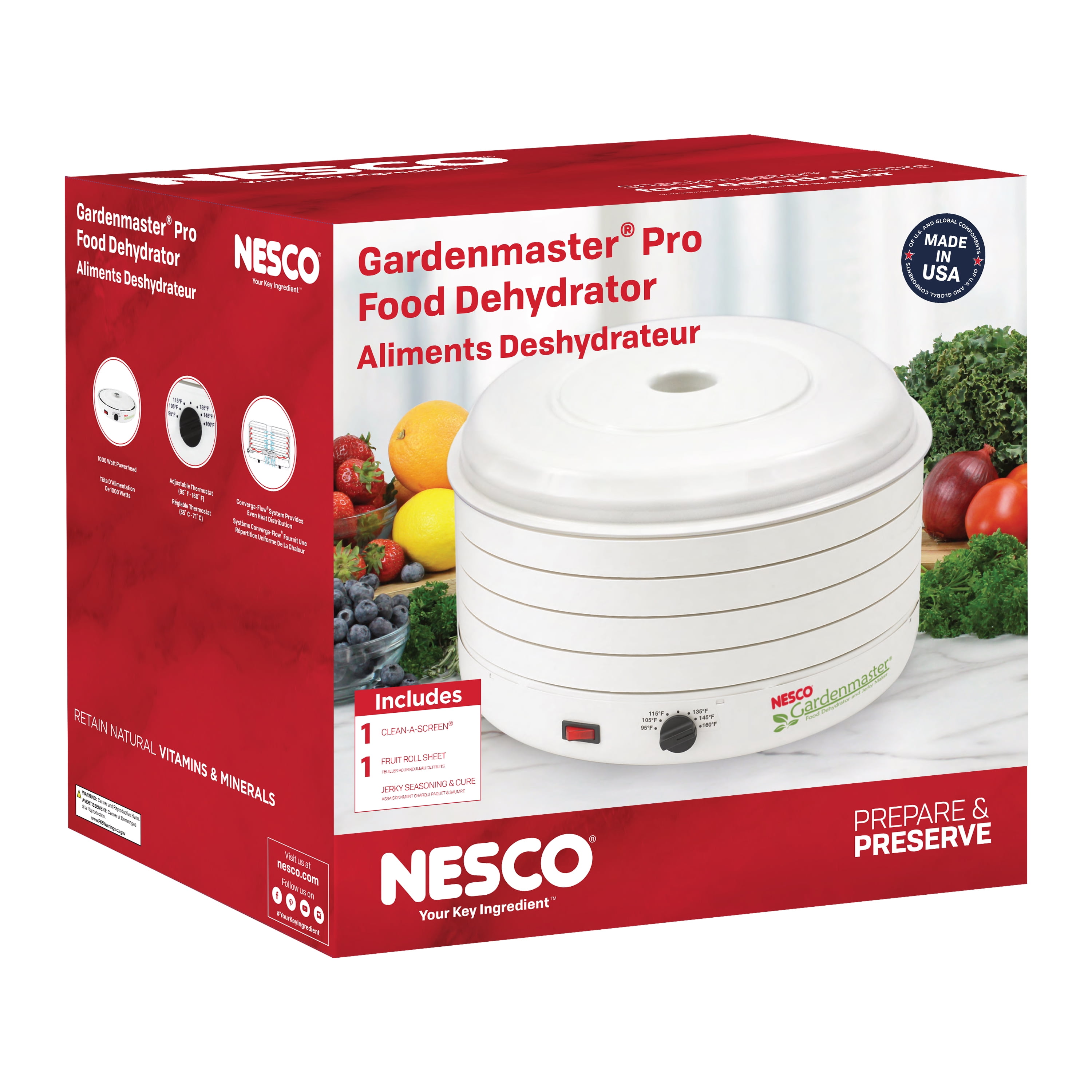 1,000 watts of power ? Nesco’s most powerful dehydrator Converga-Flow heat distribution technology – no need to rotate trays Expandable up to 30 trays (4 included)