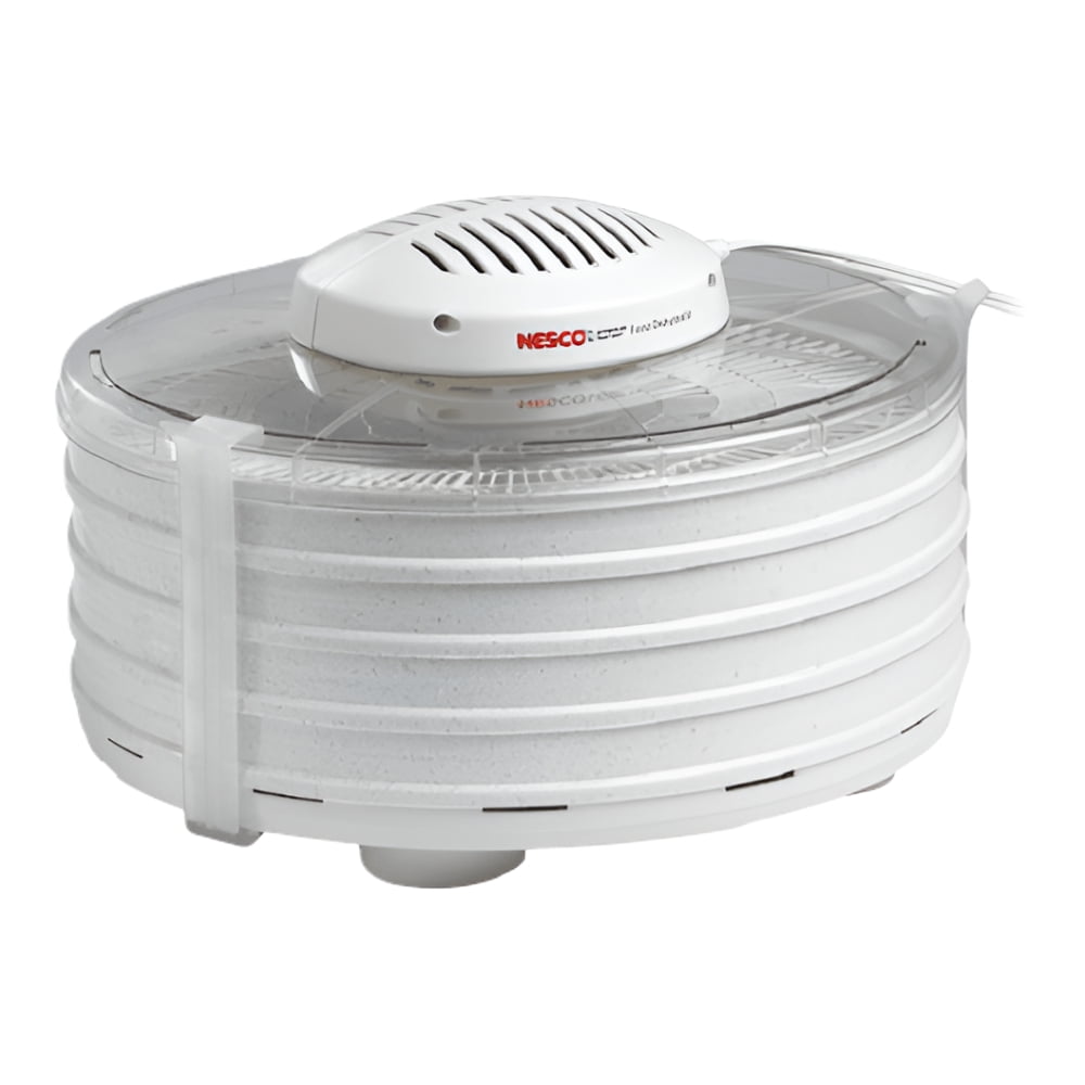 When little, or big, hands touch the lid of your slow cooker, you find yourself slapping them away in fear that a lift of the lid will slow down your cooking time and ruin the results, but with your dehydrator there seems to be little choice. How do you know when your food is done if you dont take a peek With the Nesco American Harvest Food Dehydrator with 4 Trays you can see the progress through the clear lid, so you wont have to let the heat out in order to get a look. With a top mounted powerhead, this Nesco dehydrator wont require you to rotate trays, while still letting you get the fast, even drying results you expect. Just like with your other appliances, the Nesco American Harvest Food Dehydrator with 4 Trays can stay nice and closed for a quick drying time until the process is done.