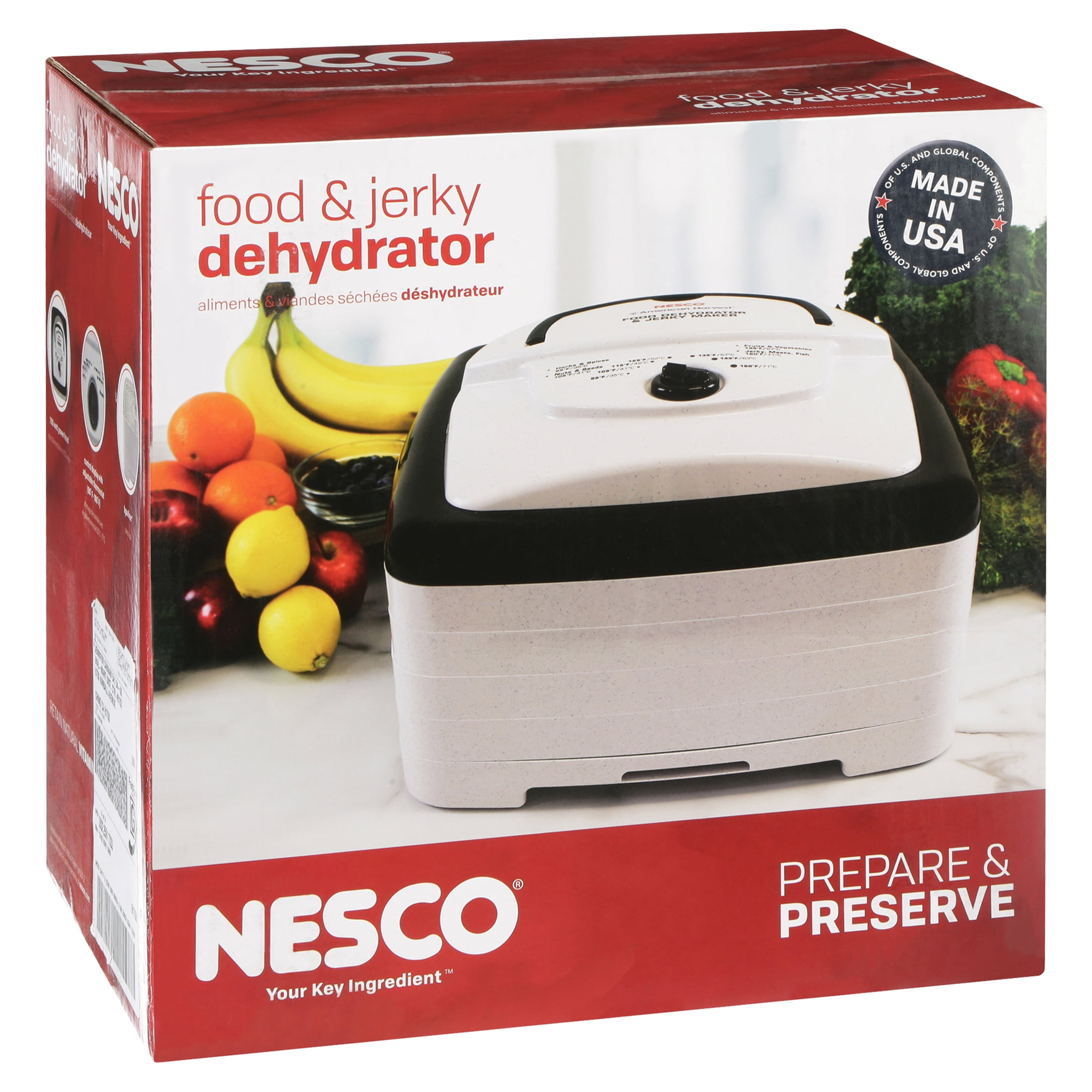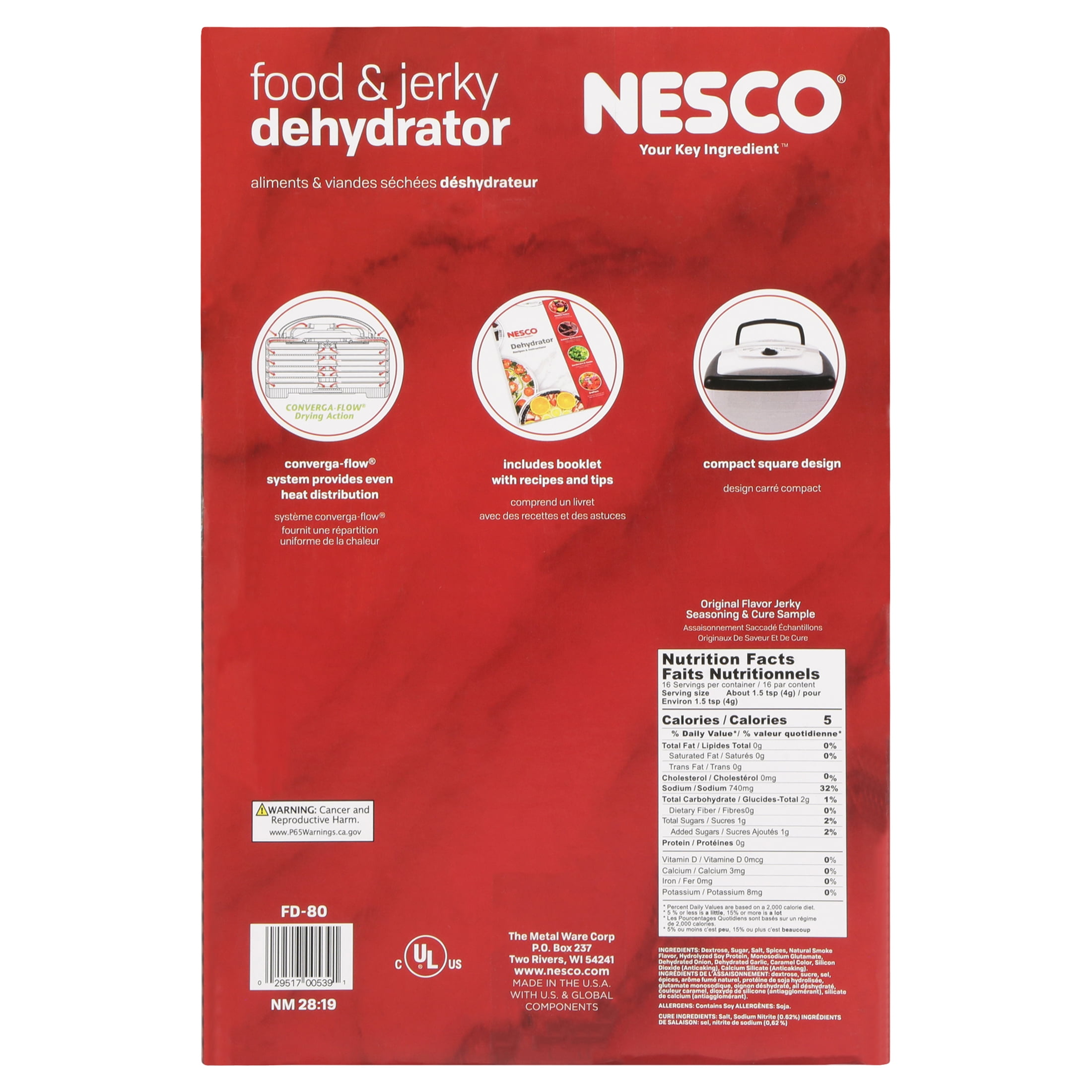 Nesco Food Dehydrator – 700 Watts, Square, 4 Trays – Square Shaped (FD-80) Adjustable Thermostat – allows you to dry different foods at proper temperatures (95-160 degree F), providing the flexibility to produce the best drying results. Helps dry food in hours, not days like other food dehydrators. The unit’s adjustable thermostat ranged from 95 degrees to 155 degrees F, providing the flexibility needed to ensure excellent results : New-Powerful Top Mounted Fan and 700 watts of drying power generate maximum speed and quality for dehydrating. . FD-80WJ comes with 4 trays, but is expandable to 8 trays.