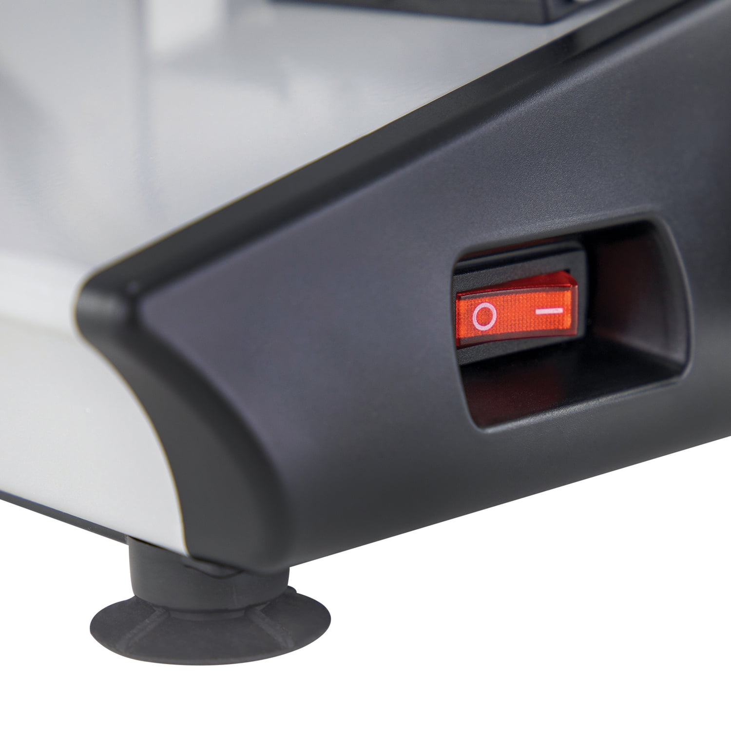 The NESCO 8.7-In. Professional Food Slicer is designed to provide professional performance that is powerful enough for any job. The quiet DC motor provides the power to slice and can handle a wide range of food sizes and shapes. The easy-glide food carriage accepts large cuts of meat, while the food guide prevents food from shifting and protects you while slicing. Slice meat, cheese, bread, and vegetables quickly and easily. The quick-release glide bar and center blade lock allow you to remove the food carriage and blade for easy cleanup. The 8.7-in. stainless steel non-serrated blade and thickness control knob provide consistent slices every time. Accurately choose the cut depth from deli thin to 9/16 in. thick. A recessed power switch ensures safe use and helps eliminate accidental engagement while nonslip feet provide a stable base on most surfaces. Designed for elegance and high performance so you can skip the deli line, the NESCO Professional Food Slicer is an ideal addition to any kitchen.