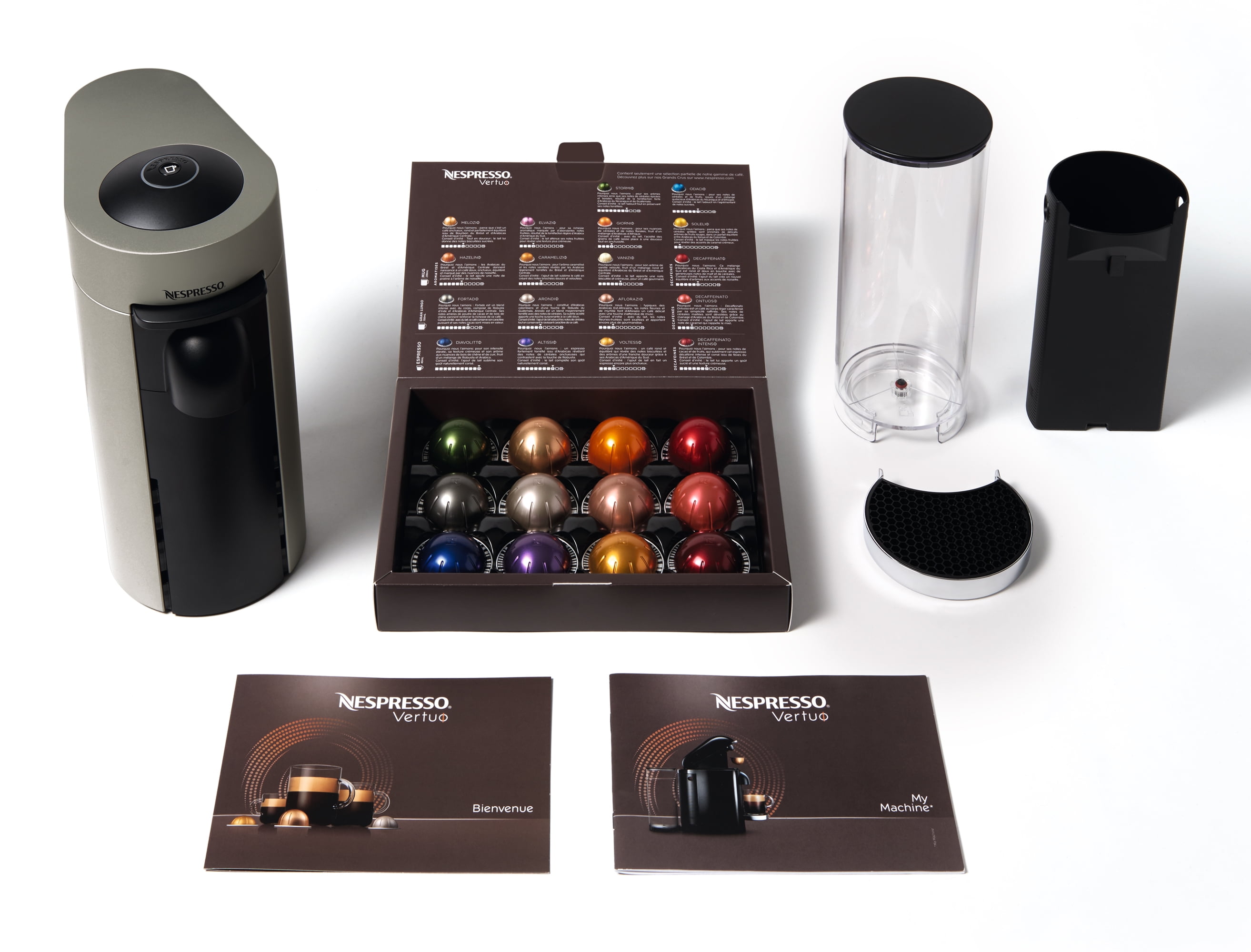 One convenient coffee maker for 4 Cup sizes: freshly brewed long-cup Coffee with naturally formed crema, traditional Espresso, Double Espresso, and Gran Lungo. 2 different capsule sizes: large capsule for Double Espresso and Gran Lungo, and a small one for Espresso Barcode reading technology for blend-specific brewing Each machine includes a complimentary welcome set with a range of Nespresso Vertuo capsules with unique aromatic profiles. Order your Nespresso capsules, receive personalized advice, and obtain technical support or repair for your machine through the Nespresso Club via mobile app, online at Nespresso.com, by telephone or in one of our Boutiques
