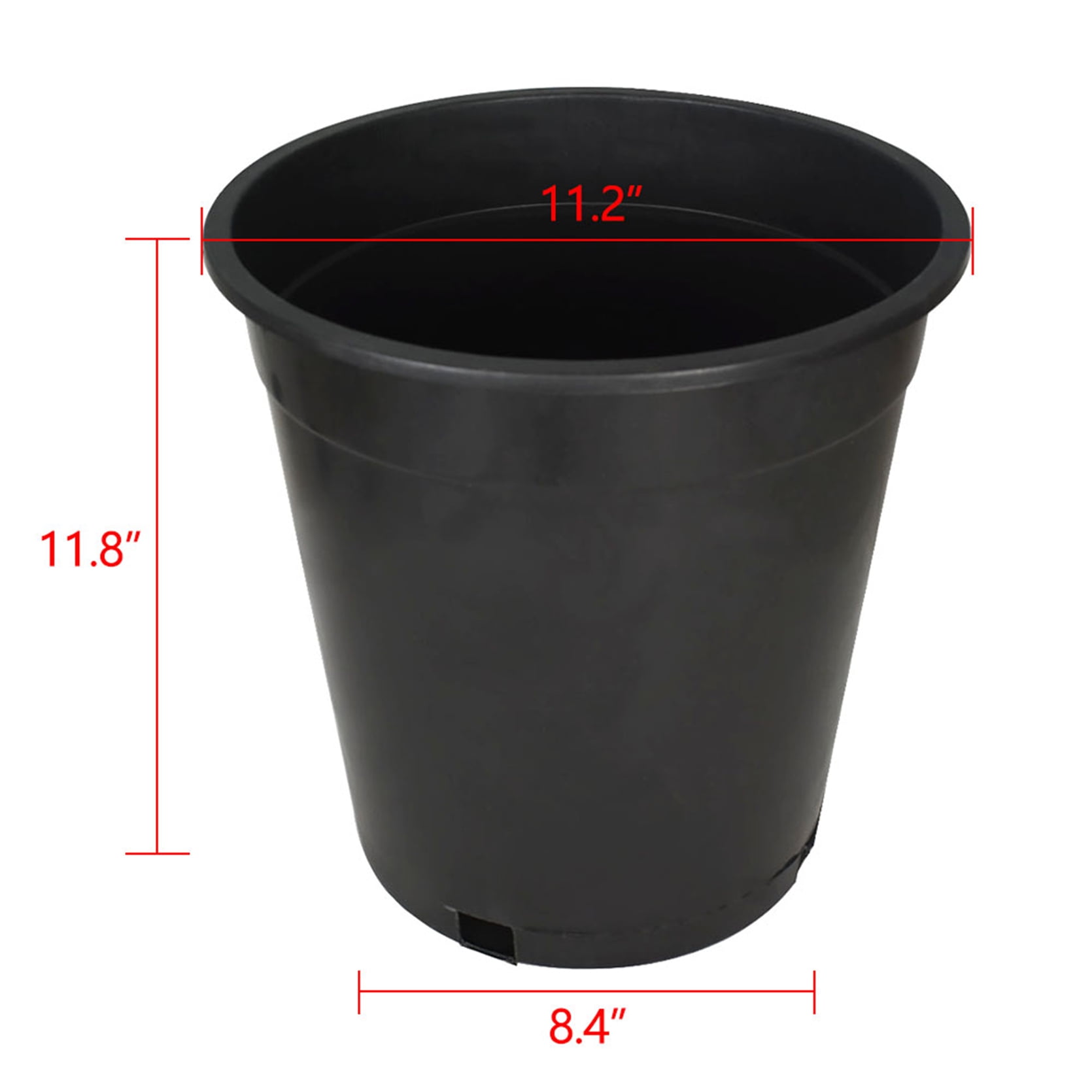 Designed with a stability pattern on the inside bottom to ensure your flowers stay upright. Heavy Duty Design: Durable, thick injection-molded plastic nursery pots with extra strength and durability in cold and hot climates to reduce cracking Very sturdy, heavy-duty wrap-around rims is easy to handle and strong enough to pick up heavy plant material Reusable pots offering a long life Excellent Drainage Design: Effective watering in any conditions Can be used with various types of soil or hydroponic growing Media Length*height*width 1 Gallon 6.5×6.6×4.8inches/16.5*16.8*12.3cm 2 Gallon 8.6×8.2×6.5inches/22*21*16.5cm 2 Gallon SQUAT 8.5×5.9x7inches/21.5*15*18cm 3 Gallon 11×9.6x9inches/28*24.5*23cm 5 Gallon 11X11.6X8inches/28*29.5*20.5cm 5 Gallon SQUAT 12.8X8.8X10.6inches/32.5*22.5*27cm 7 Gallon 14x11x11.5inches/36*28.5*29.3cm 10 Gallon 16×11.8x13inches/41*30*33.5cm 15 Gallon 17.9×14.9x14inches/45.5*38*36cm