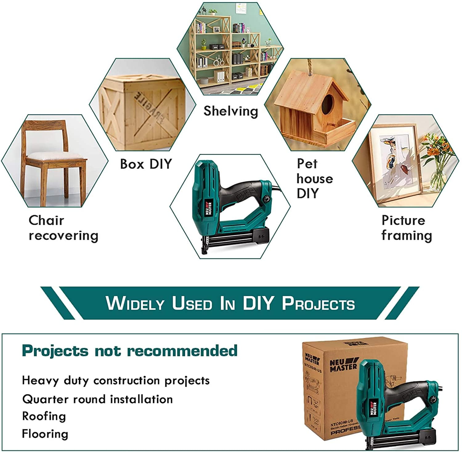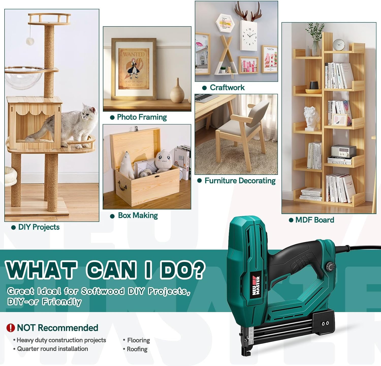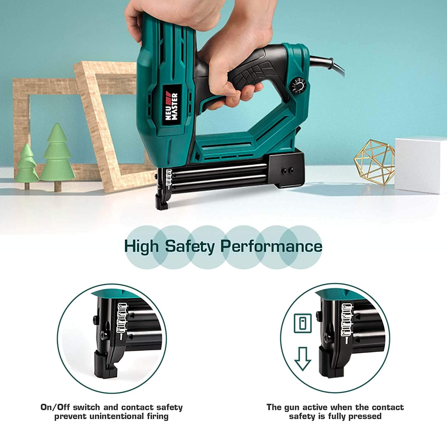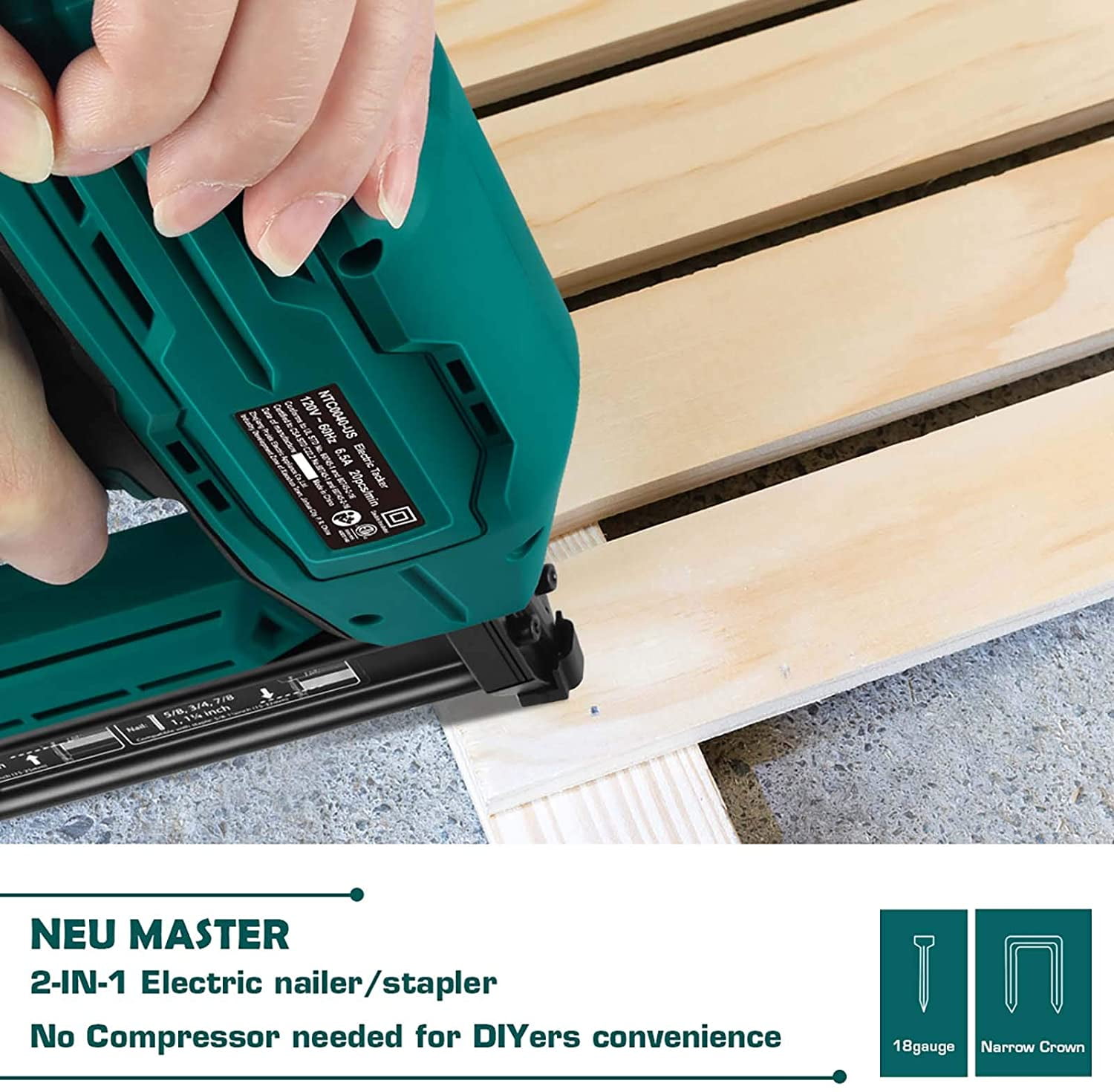NEU MASTER 2-in-1 Electric Brad Nailer, Electric Nail Gun/Staple Gun for Upholstery, Carpentry and Woodworking Projects, 1/4” Narrow Crown Staples 200pcs and Nails 800pcs Included