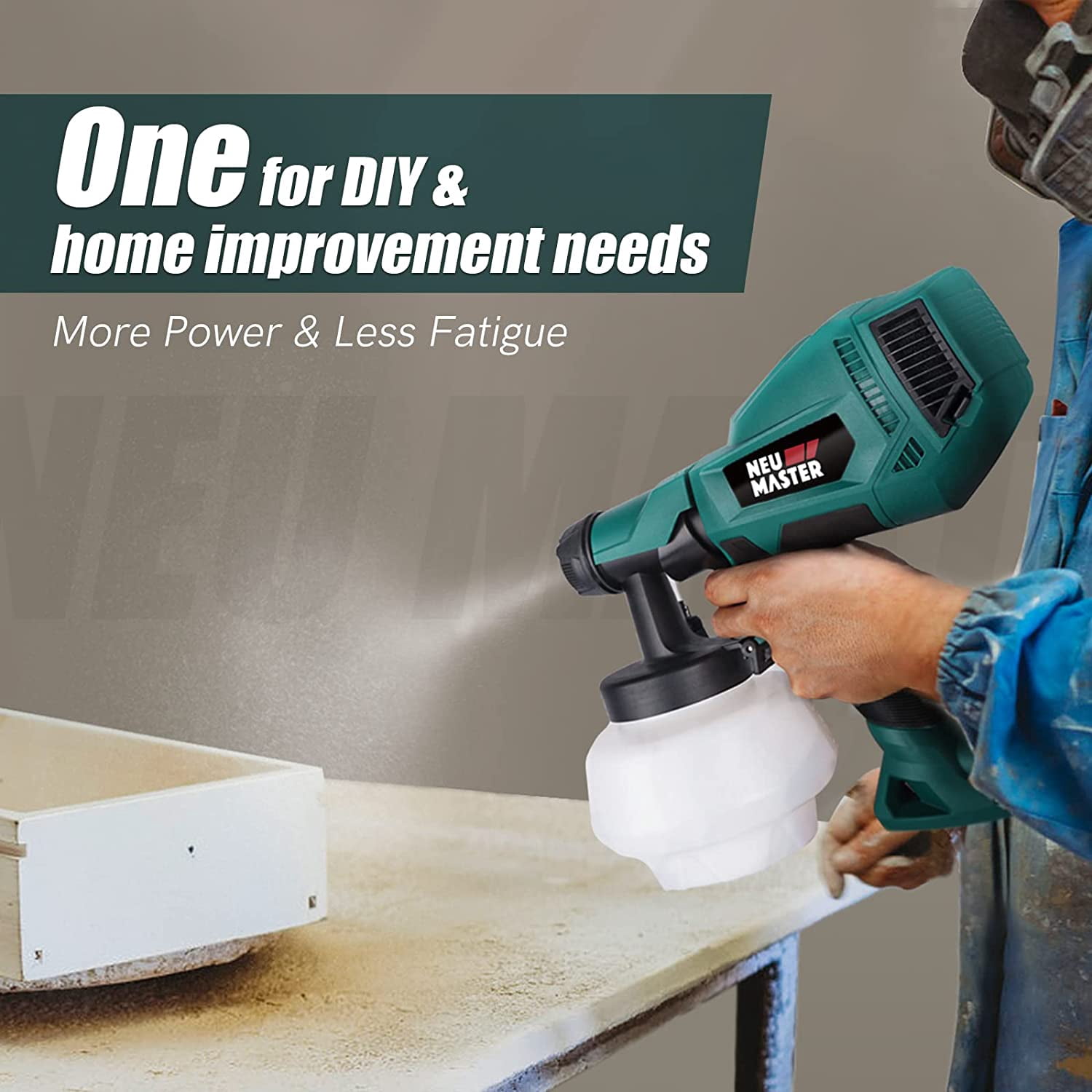 NEU MASTER HVLP Electric Spray Paint Gun, 1200ML Container/4 Nozzles/3 Patterns Upgraded Paint Sprayer for Home Interior and Exterior, Cabinets, House, Fence, Ceiling EASY TO USE, NO EXPERIENCE NEED!: NEU MASTER Electric Paint Sprayer NSG0110 is designed to apply a smooth, consistent finish on DIY and home projects such as furniture, décor, walls, ceilings, exterior siding, fences, cabinets, trim and more. This paint gun offers superior results compared to the average brush or roller and features multiple adjustable settings to suit your project needs. SAVE A TON OF TIME! Its turbine produces 500w power to offer superior results compared to the average brush or roller and features 3 adjustable settings, you can change between three spray patterns (horizontal, vertical, circular) and adjust the flow control knob to increase or decrease the paint output for suiting your project needs. Thanks to the detachable design, you can quickly separate the motor from the front end kit with a 1200ml container to easily change materials and clean up right in a sink