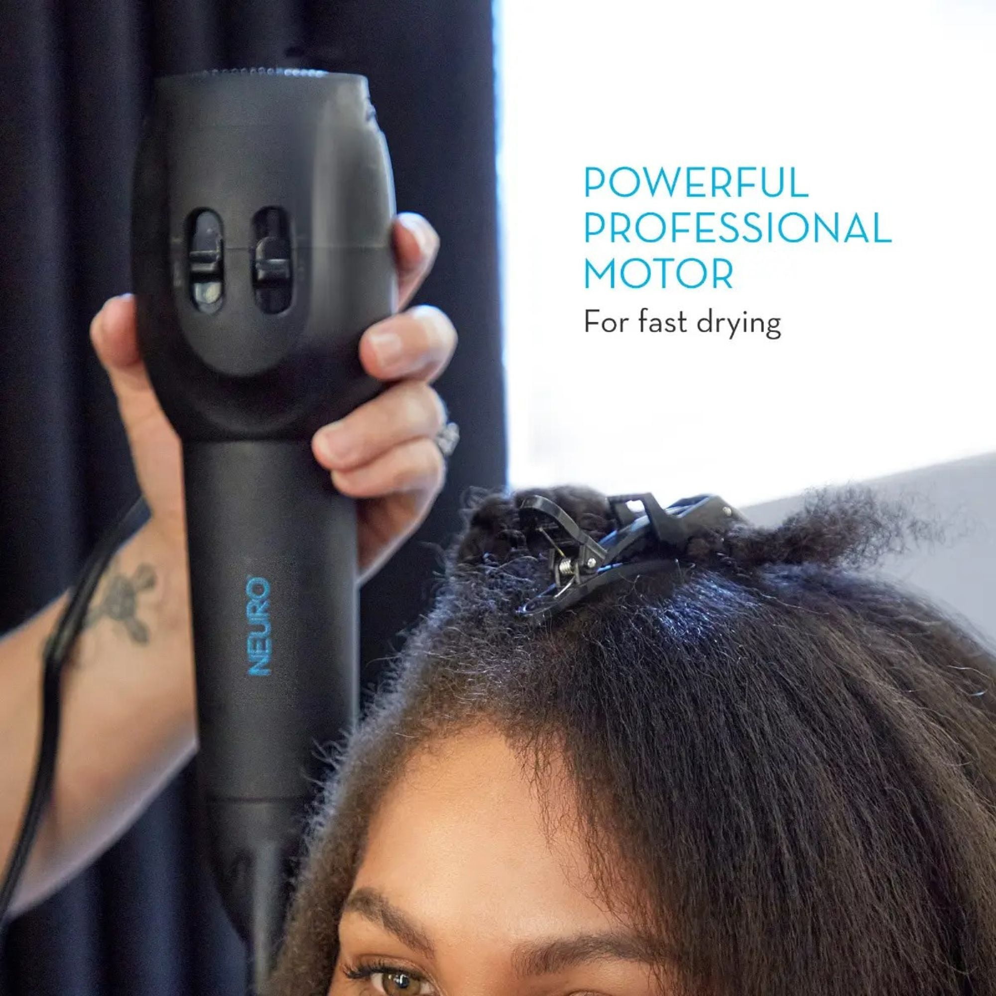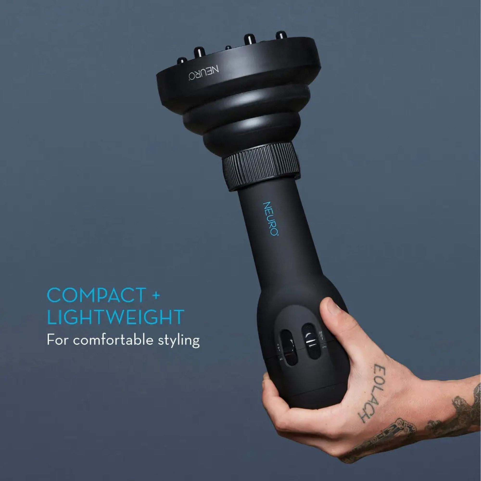 Handle-free and ergonomic hair dryer allows for the ultimate comfort and control. Comfort + Control Create the perfect blowout with this lightweight, handle-free hair dryer. The compact and ergonomic design allows for the ultimate comfort and control for effortless styling.