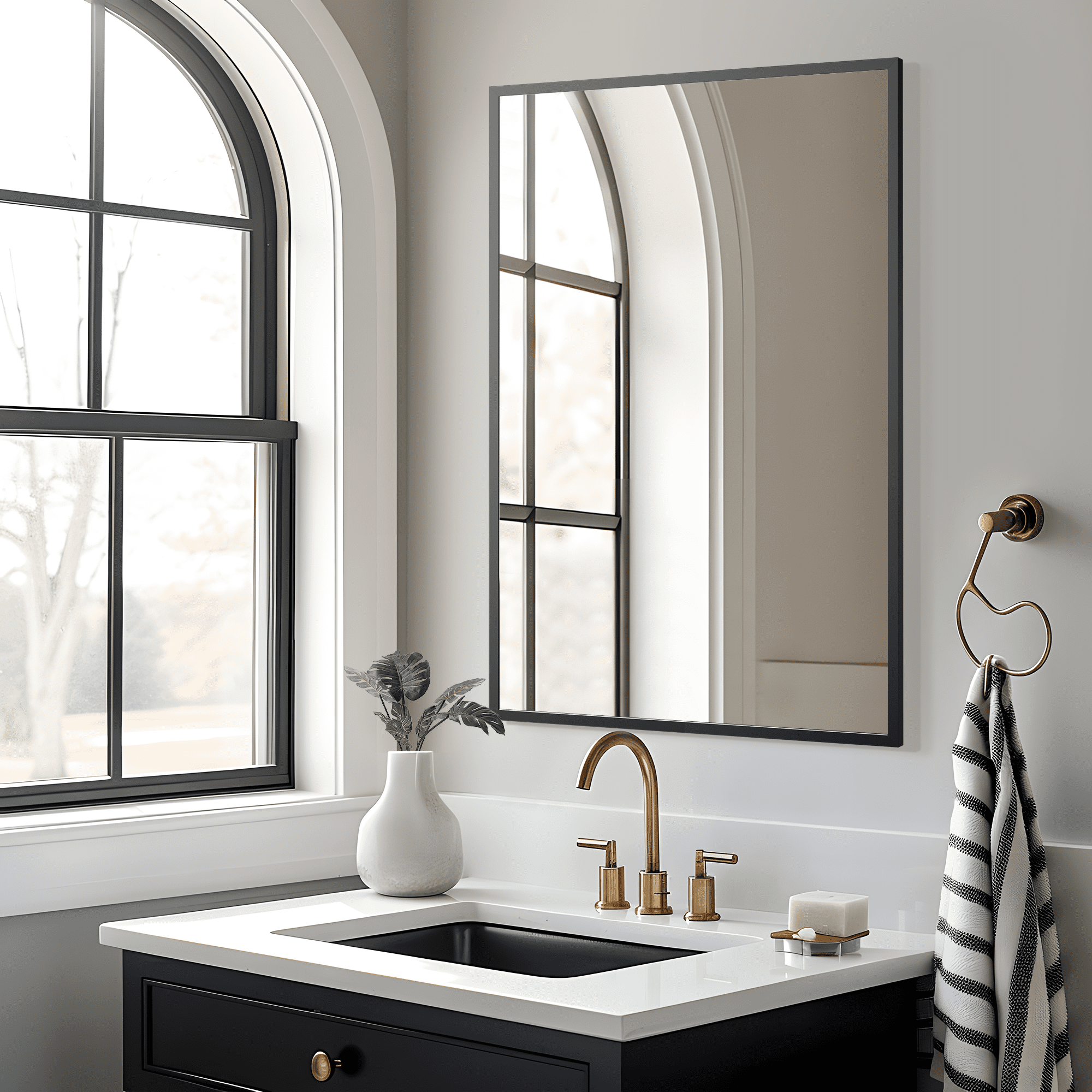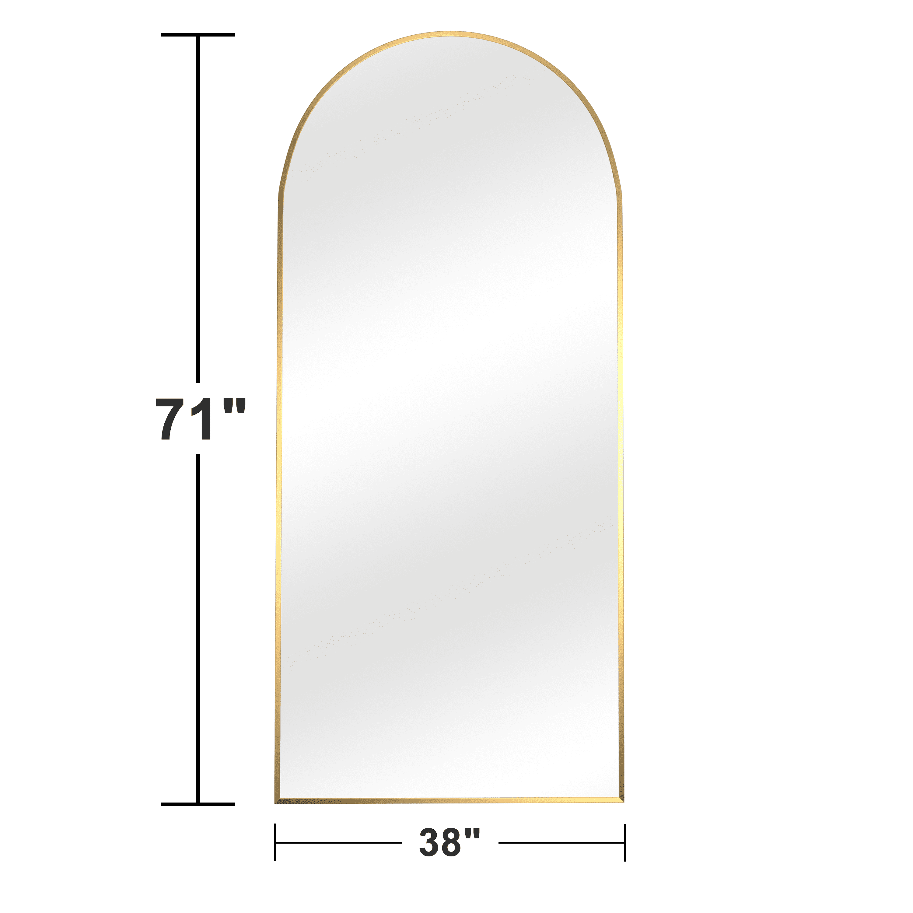 Neutype 77″x34″ Gold Modern Arched Full Length Floor Mirror The mirror showcases a modern arched design, adding a touch of elegance to any room Its ultra-slim aluminum alloy frame combines contemporary aesthetics with lasting durability The blast-resistant glass ensures a crystal-clear reflection and minimizes safety risks by preventing glass shards from scattering Versatile placement options allow you to use it either floor-standing or wall-mounted, adapting to your space needs The mirror’s stylish design enhances various interior styles, making it a chic addition to your home decor