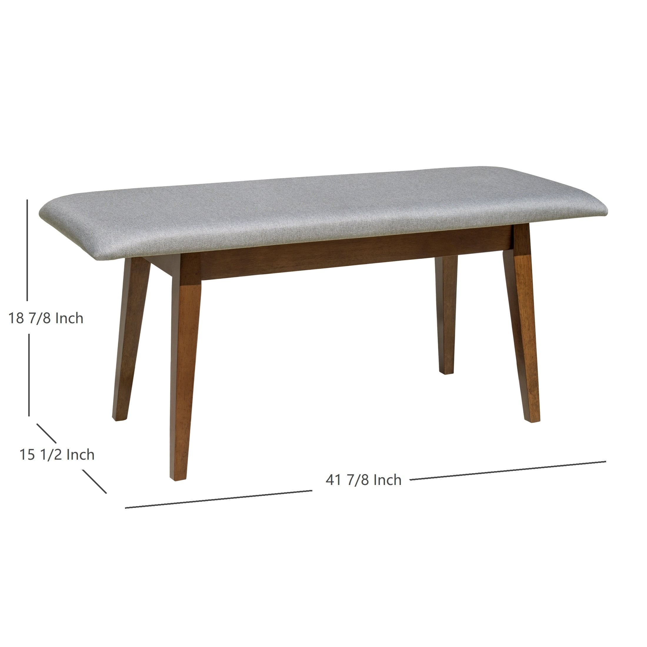 A Mid Century Modern Dining Bench must have for any Kitchen, Living Room, or Office setting. A perfect combination of classic style and modern design. Featuring elegant curves and iconic mid-century modern splayed legs. Choose from the color that best fits your existing Home Decor. This Mid-Century Modern Dining Bench offers you refined comfort with its well-padded saddle upholstered seat. Its high quality solid rubber wood construction and uniquely understated craftsmanship make it a must-have item for any room in your home or office space. Crafted with your comfort in mind, this upholstered bench will indulge you in relaxation and ease with its high-density foam cushion. Featuring polyester upholstery, natural woodgrain stain, and available in beige or gray. Steeped in Scandinavian style, this streamlined bench brings modern flair and seating space to any arrangement in your home. Founded atop four splayed legs, this piece is crafted with a solid rubber wood and manufactured wood frame that can support up to 250 lbs. A neutral woodgrain stain outfits the base for a natural touch, while foam fill and beige polyester-blend upholstery cushion the top for a more inviting look. Assembly is required.