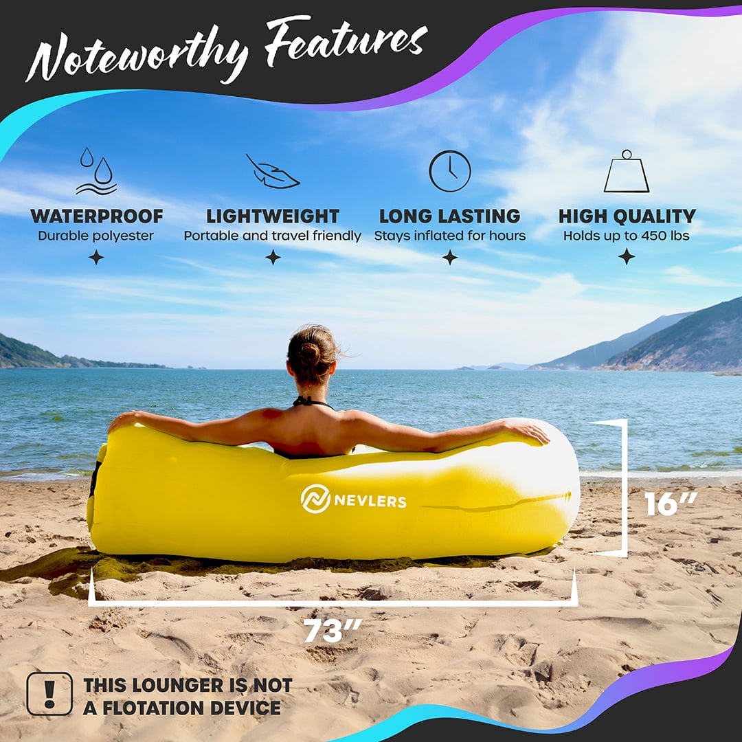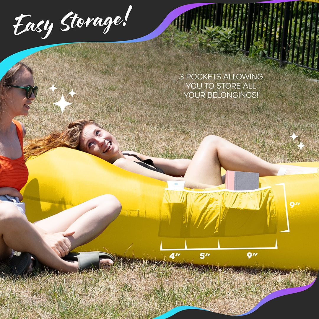 Nevlers Yellow Inflatable Lounger with Travel Bag and Pockets