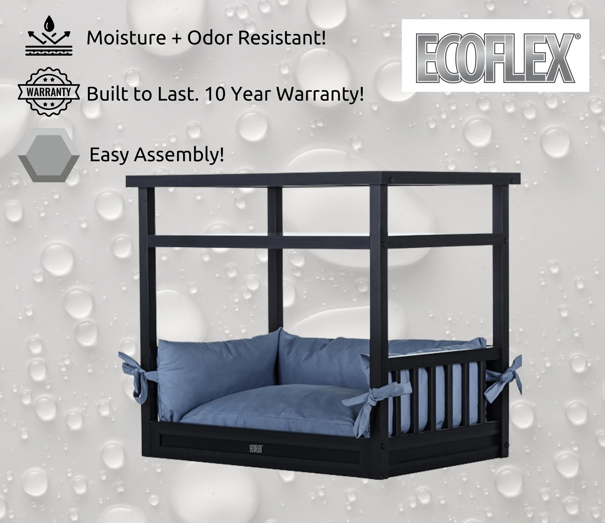 [Durability & Safety] Crafted from ECOFLEX®, a unique blend of recycled polymers and reclaimed wood fibers; this dog bed nightstand is designed to last without warping, cracking, or splitting; Non-toxic and resistant to moisture and odors, ensuring a safe environment for your pets [Space-Saving Design] Multi-functional furniture piece that combines a cozy dog bed with a stylish nightstand; Ideal for small apartments or spaces, offering a convenient spot for your remote, books, and decorative items on top while providing a comfortable resting place for your pet below. [Easy Maintenance] Features a removable cushion cover that simplifies cleaning; Just unzip and machine wash to keep your pet’s sleeping area fresh and hygienic; ECOFLEX® material also easily wipes clean, ensuring a hassle-free way to maintain both aesthetics and hygiene in your home [Comfort & Style] Boasting a plush, memory foam cluster cushion, this dog bed nightstand offers supreme comfort for your pet; The sleek espresso finish complements any home decor, seamlessly blending your pet’s needs with your own design preferences. [No-Tool Assembly] Enjoy a hassle-free setup with the ECOFLEX® Dog Bed Nightstand; designed for easy assembly without the need for tools, this piece of pet furniture can be ready for use in minutes, making it a convenient choice for busy pet owners. Includes memory foam cluster cushion with removable zippered cover, for easy handwashing. Cover: 80% cotton, 20% polyester [Peace of Mind with Warranty] Backed by a 10-year manufacturer’s warranty; have confidence in the quality and longevity of your Dog Bed ensuring your pet’s home stands the test of time.