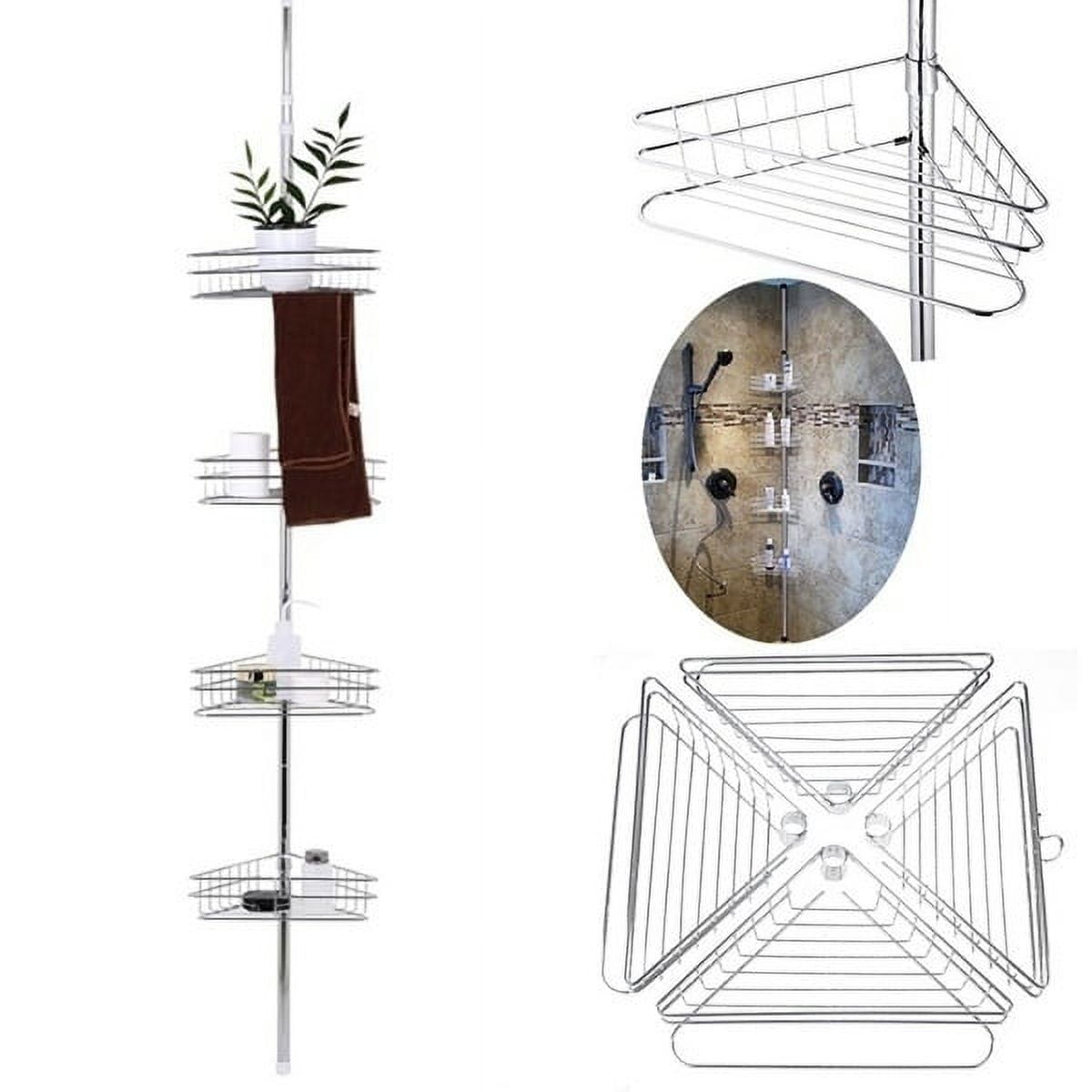 New Design Bathroom Shower Corner Metal Tension Pole Adjustable 4 Baskets Storage Rack Shelf