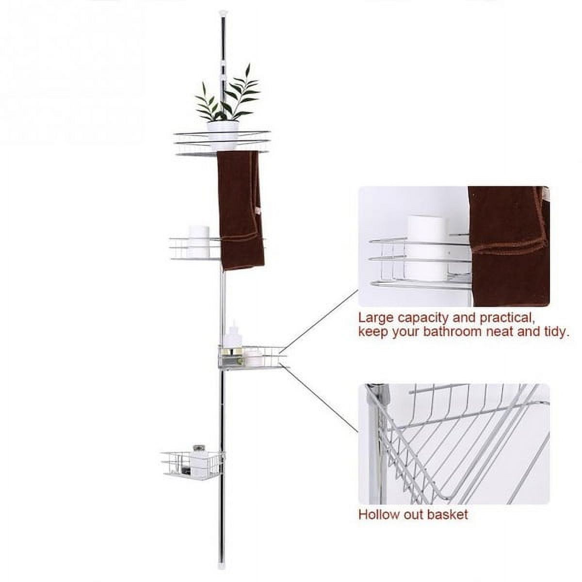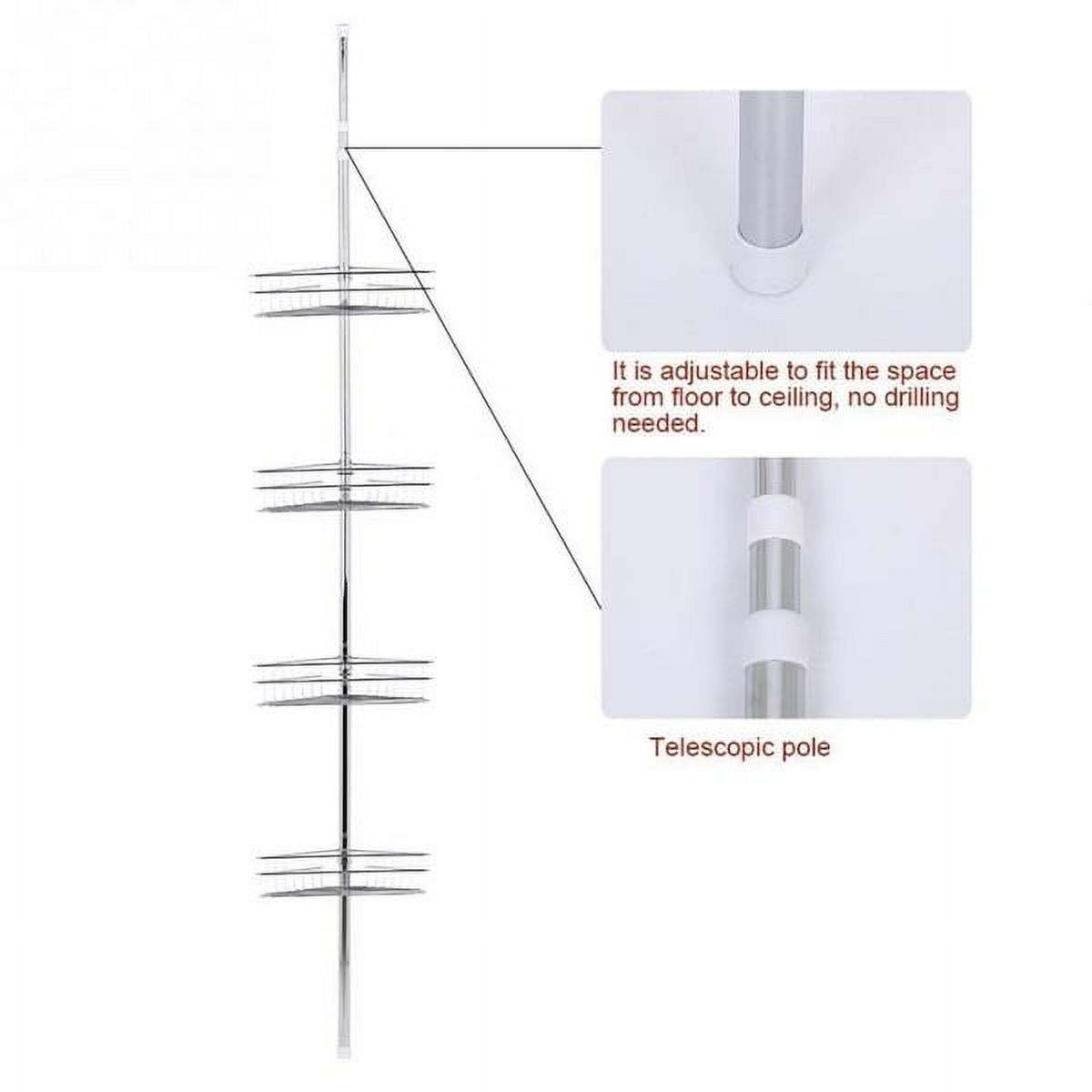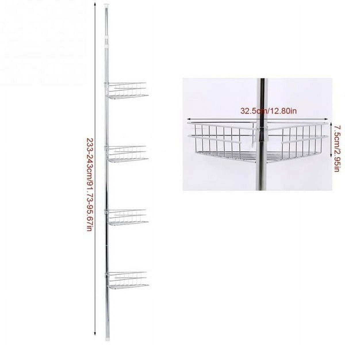 Description: This multi-functional storage shelf with four baskets is great to store all kinds of bath supplies. The hollow out basket holds shampoo and shower gel, quick to drain. With towel rod at the front of basket, space-saving and practical. The extendable pole is convenient to use, no drilling needed. Features: This bathroom corner storage shelf is made of premium iron tube with chrome plated, solid, corrosion resistant and long lasting. There are 4-tier storage baskets to hold bath supplies including shampoo, hair conditioner, shower gel, facial cleanser and more. Large capacity and practical, keep your bathroom neat and tidy. The telescopic pole can be adjusted to fit the space from floor to ceiling. Easy to assemble and no drilling needed. Specifications: Condition: 100% Brand New Material: Iron Finish: Chrome Plating Color: Silver Adjustable Height: approx. 233~243cm / 91.73~95.67in Basket Size: approx. 32.5 x 7.5cm / 12.80 x 2.95in Weight: approx. 2434g Package Included: 1 Set of Bathroom Storage Shelf (need simple assemble) Note: 1. Please allow 0-2cm error due to manual measurement. Thanks for your understanding. 2. Monitors are not calibrated same, item color displayed in photos may be showing slightly different from the real object. Please take the real one as standard.