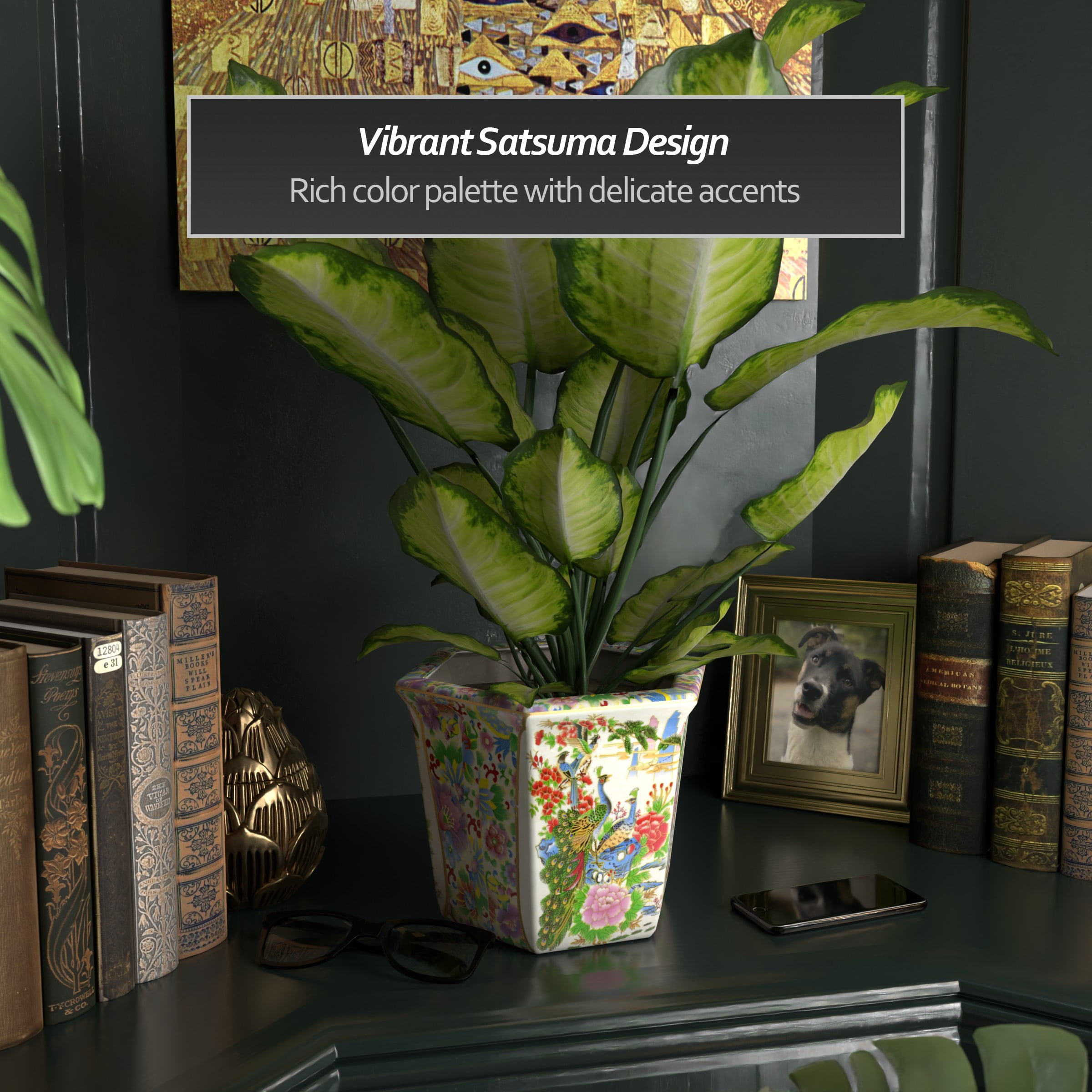 New Era 9″ x 10″ x 75″ Round Multicolor Porcelain Satsuma Plant Pot with Drainage Hole