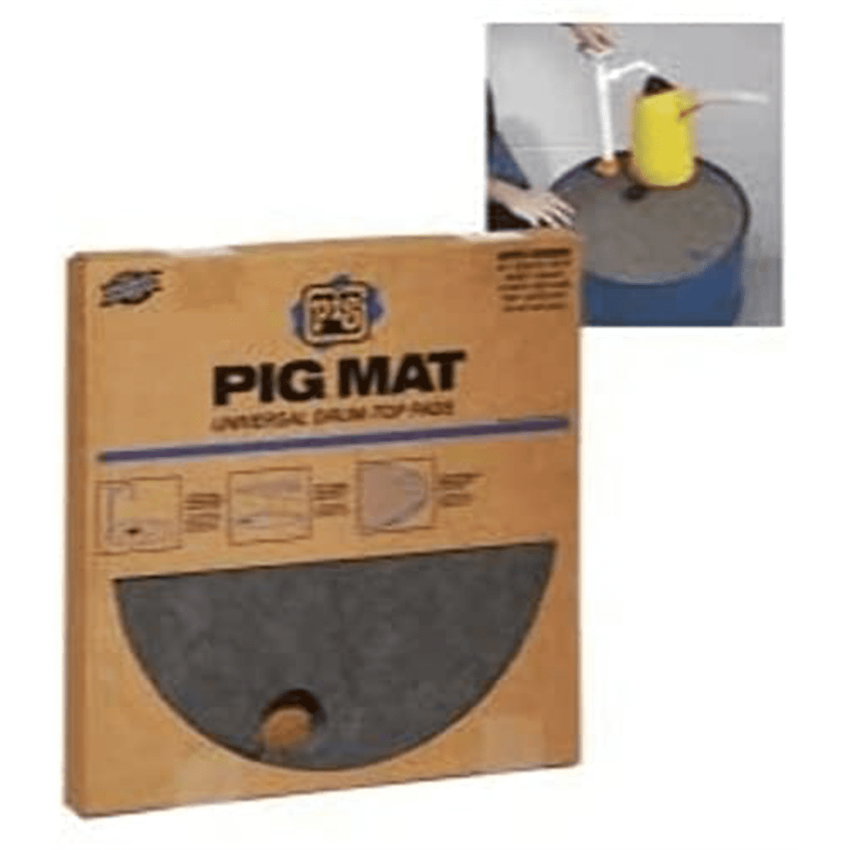 Precut with holes for 3/4″ and 2″ bungs to provide a perfect fit on steel 55-gallon drum tops Soak up overfill and pump drips to keep them off floors without cluttering up your shop with dirty rags Eight layers of 100% polypropylene are thermally bonded to make PIGr Mat the strongest mat on the market won’t rip, fray or fall apart, even when saturated Highly absorbent material traps liquids, so it won’t drip or leave behind fibers when you pick it up