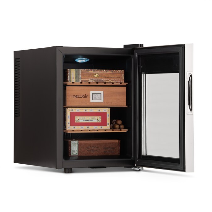 NewAir 18.5-in x 13.6-in x 19.3-in Stainless Steel Freestanding Table Humidor with Digital Hygrometer (Holds 250 Cigars)