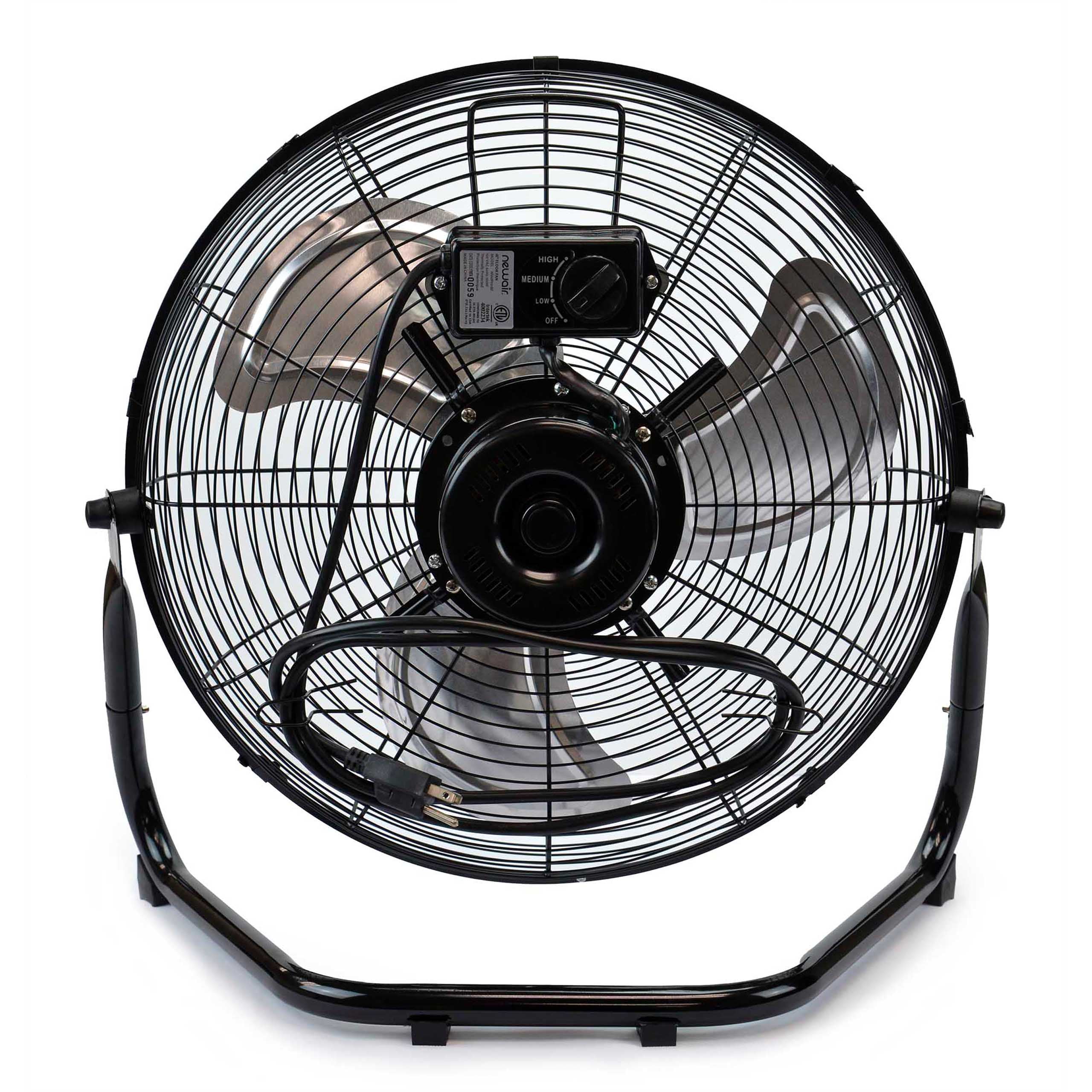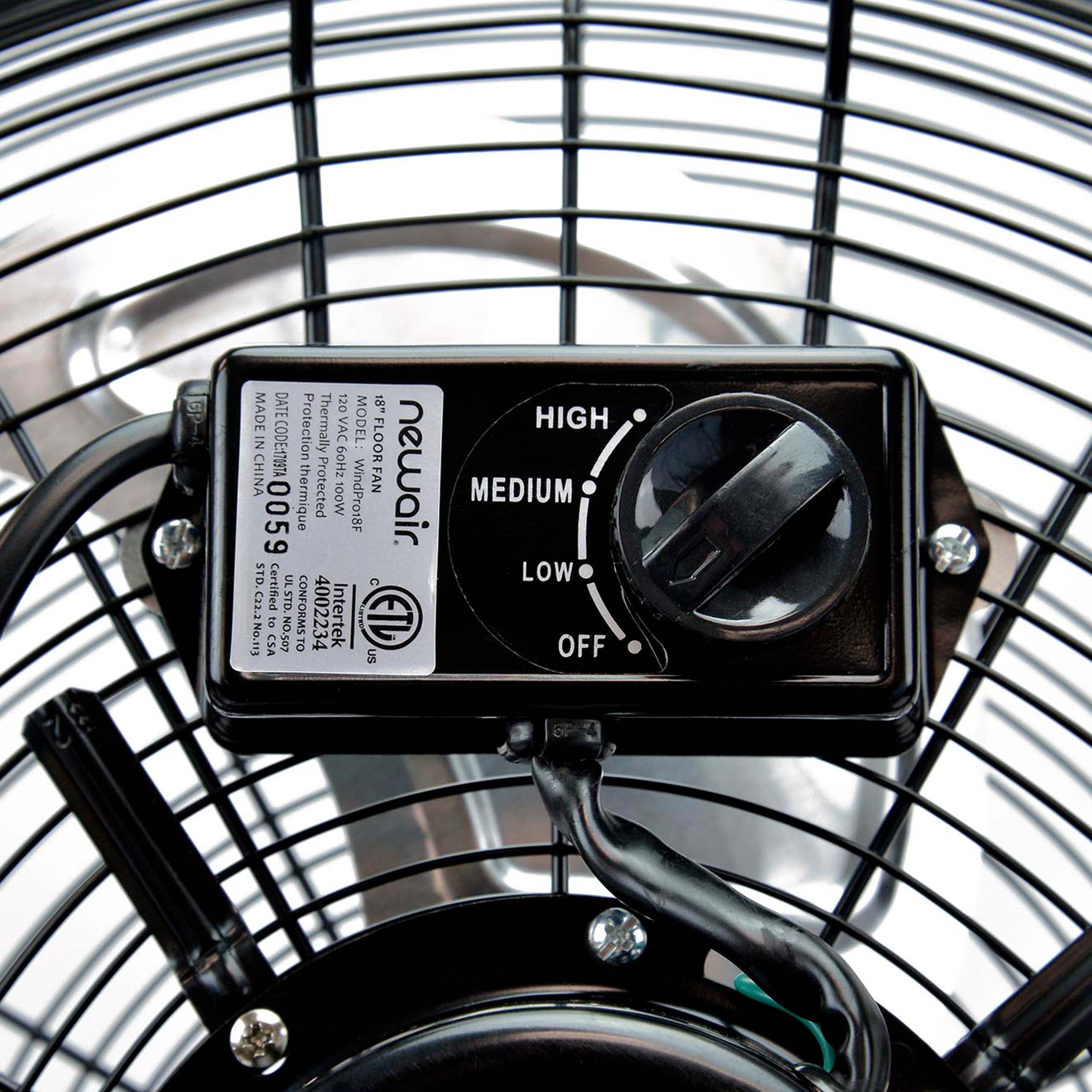 Garages, workshops, barns, greenhouses, and other outbuildings: These utility spaces get hot, and you can’t do your best work when you’re overheated. Bring down the temperature with a high-velocity floor fan that works as hard as you do. The 18-inch fan features a durable blade housing with an easy-to-clean black floor stand. The metal fan blades slice through the air to provide powerful airflow anywhere you need it – even if you prefer to mount it to the wall. (Note: Mounting hardware not included.) Ball Bearing Motor Offers Power and Durability The ball bearing motor is an energy-efficient choice that promises years of hard work. These motors were built to last far longer than those of competitors. The motor also delivers airflow that clocks in at 3,000 CFMs on the top setting for the most powerful climate control around. Low, medium, and high settings allow you to tone it down as desired, making it an ideal garage fan or shop fan. Industrial Power Meets User-Friendly Design While the fan packs a punch, it also offers features that make it a pleasure to operate. Rear-mounted controls mean you don’t have to get a blast of air to your face every time you want to turn the fan off, and the convenient carrying handle makes it a snap to move the fan around. The slim design saves floor space while delivering the same cooling power as clumsier industrial fans heavy duty models – all without excessive vibration. A Floor Fan That Puts Safety First It has an ultra-safe design that makes it the best fan for garage and residential uses, even though it’s built for business. Blade guards on the housing keep little fingers away from fast-moving fan parts, and four rubber feet prevent skidding and slipping to provide perfectly balanced contact with the floor for stability. The 5.5-foot cord even comes with a three-pronged plug to add an extra layer of grounding and safety. This is an ETL-certified product, making it a reliable high-powered fan for any setting. Easy to Assemble Right Out of the Box This fan doesn’t require any special wiring or mounting hardware – just snap on the stand leg and plug it into any three-prong, 120-volt receptacle. Loosen the knob and adjust the tilt of the fan head to get air to blow exactly where you need it most. This top-rated high velocity floor fan will keep you cool for years no matter how hard you work. Perfect as a shop fan, gym fan, or construction fan.