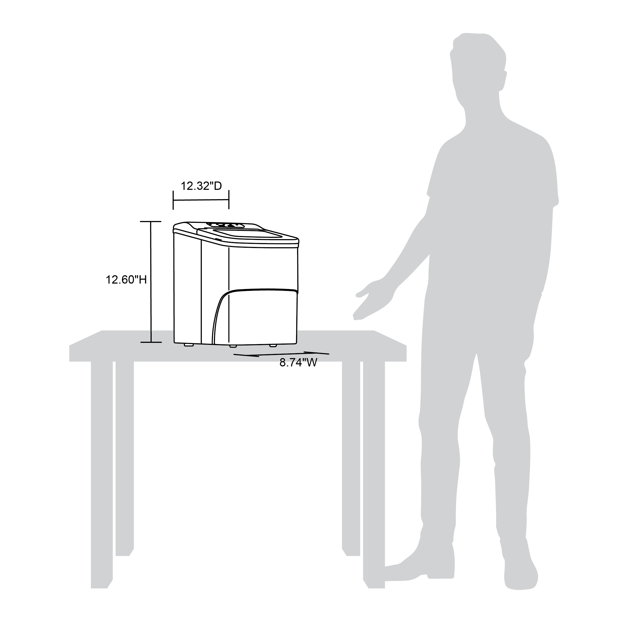 The Newair 26 lbs. Countertop Ice Maker brings your beverages to their refreshing best while maintaining a small countertop footprint. This portable model is lightweight enough for travel, making it ideal for a trip to the lake house or on a road trip in the RV. The compact design takes up very little counter space while still providing 26 lbs. of fresh, clean-tasting ice each day and looking good doing it. Simple controls make it easy to choose your favorite ice size. This compact ice maker is perfect for everyday use and produces enough ice for your next social gathering.