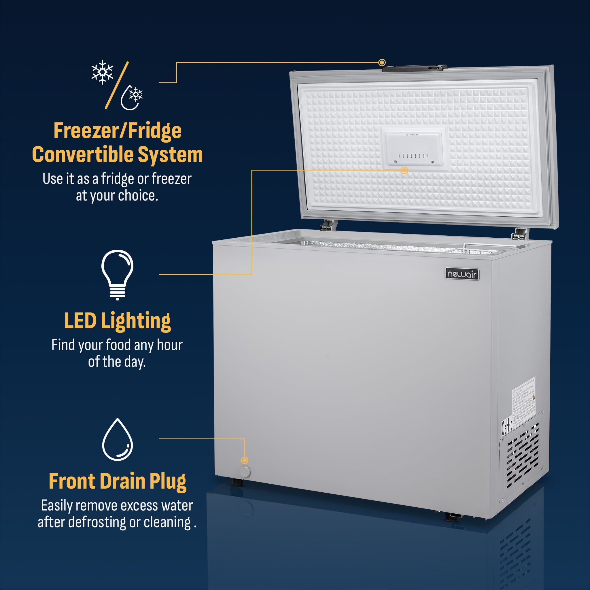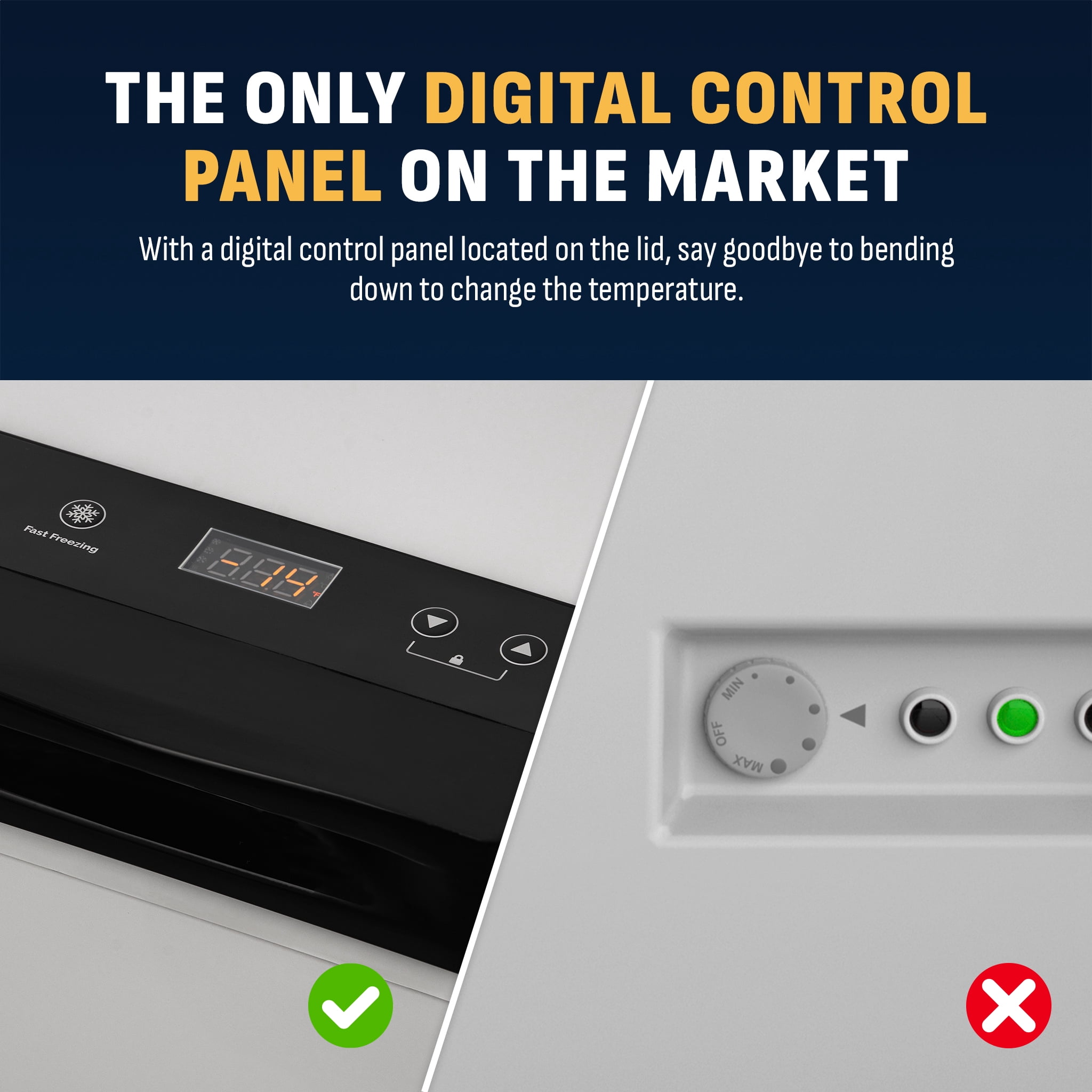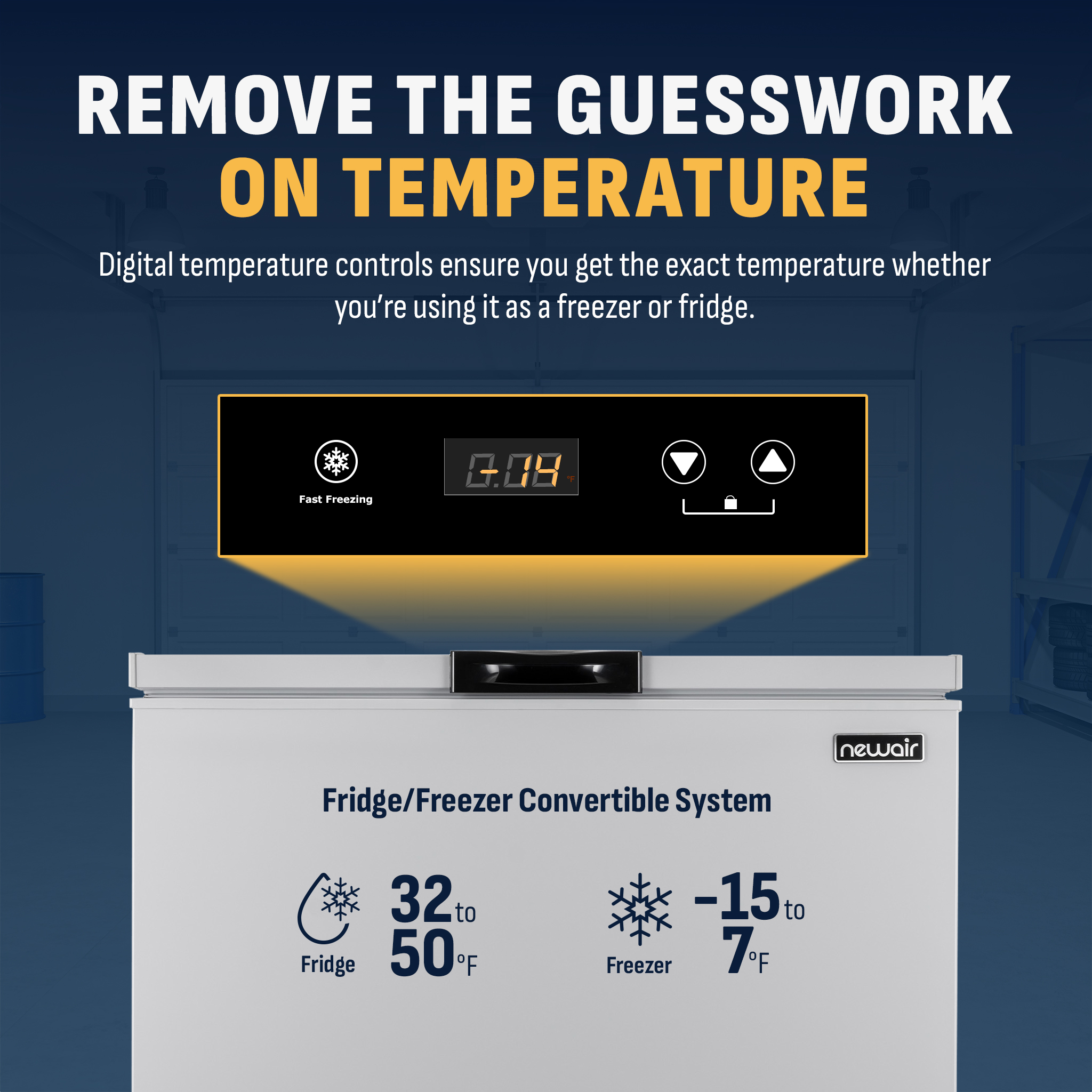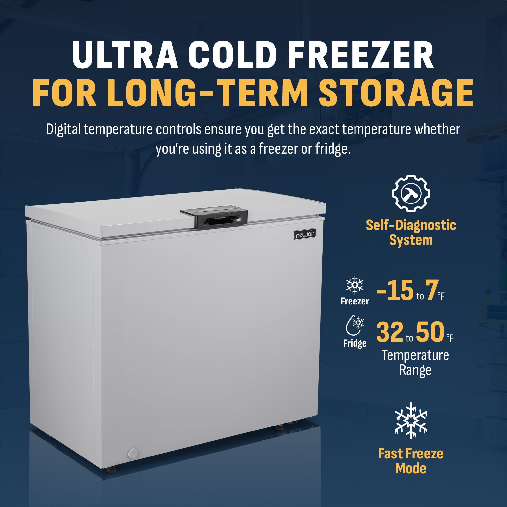 Temperature controls set the thermostat between -14 F and 50 F Fast Freeze Mode flash-freezes items for long-term preservation A door alarm helps prevent accidental loss of valuable food items Self-diagnose program helps troubleshoot issues on the spot Compact design includes an interior wire basket for easy organization