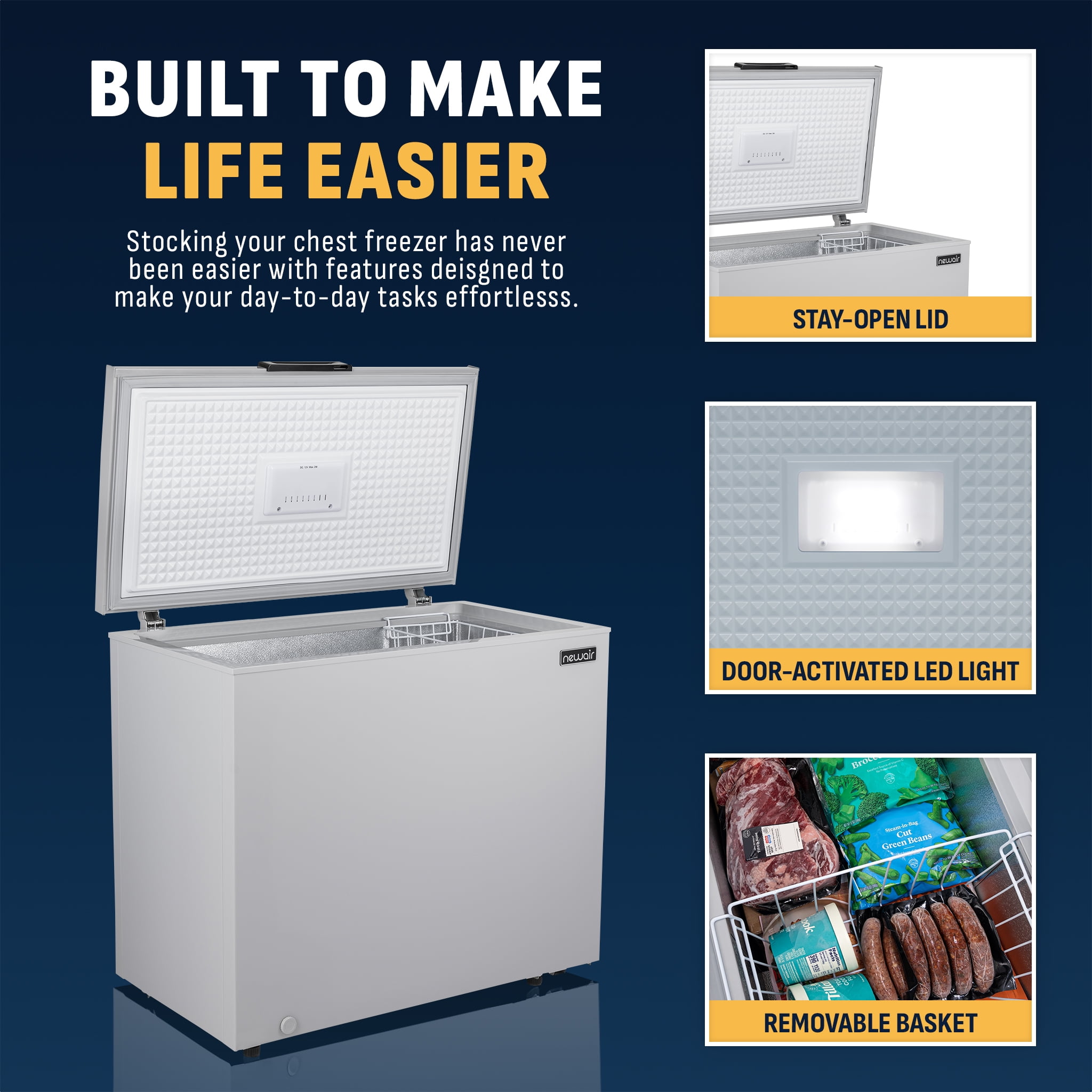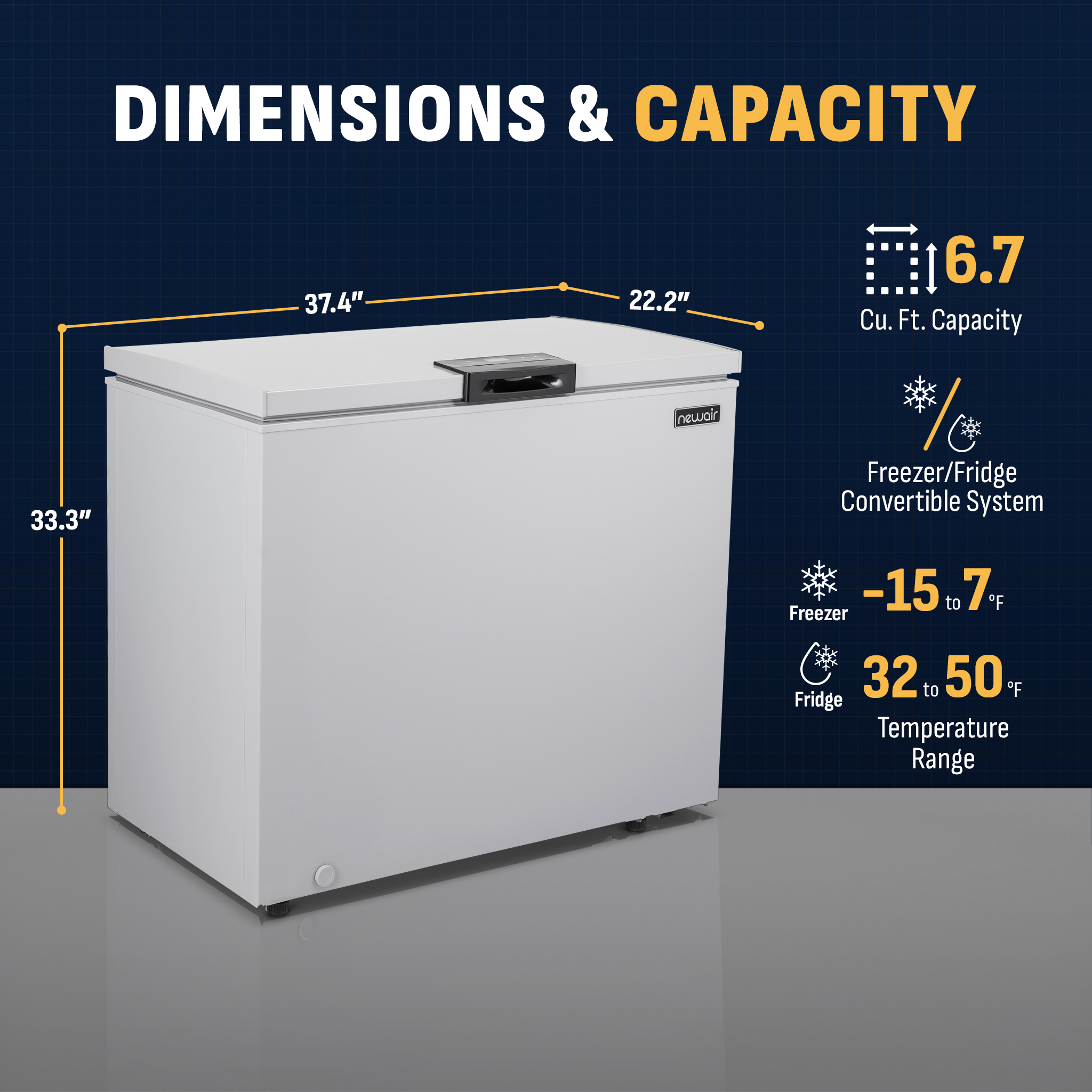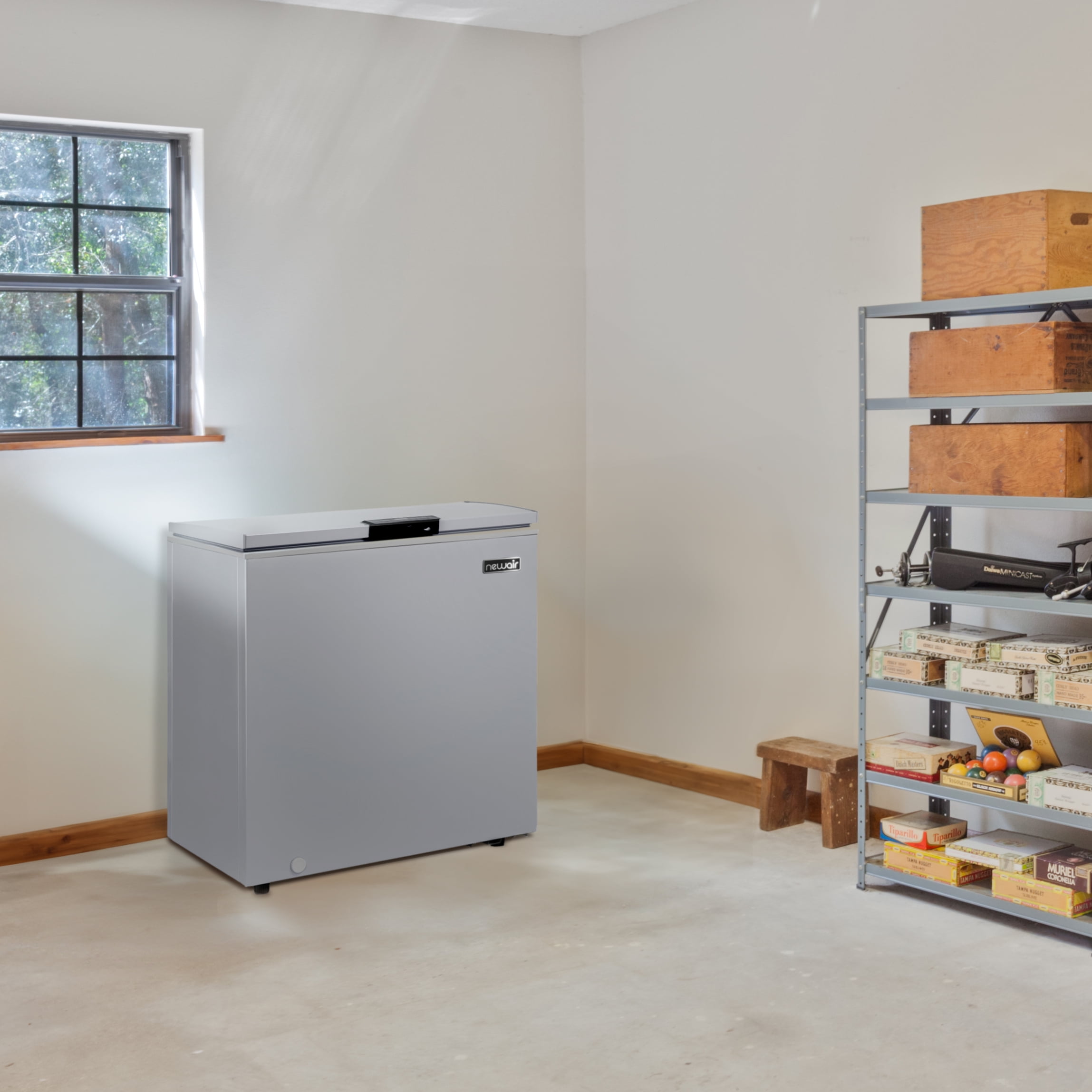 NewAir 6.7 Cu. Ft. Compact Chest Freezer in Cool Gray, Temperature Control, Fast Freeze Mode, Door Alarm, Wire Basket, Self-Diagnose Program, and LED Lighting