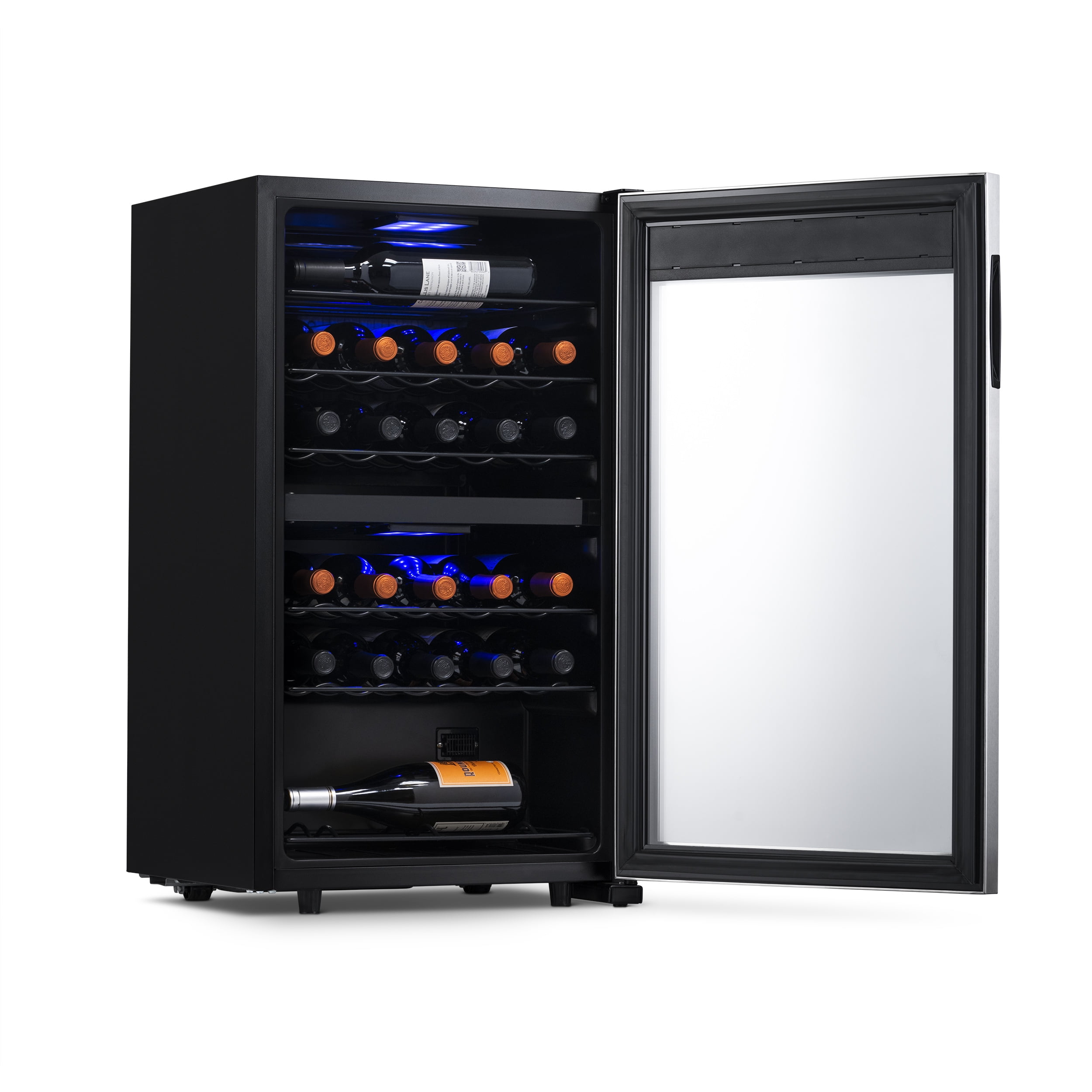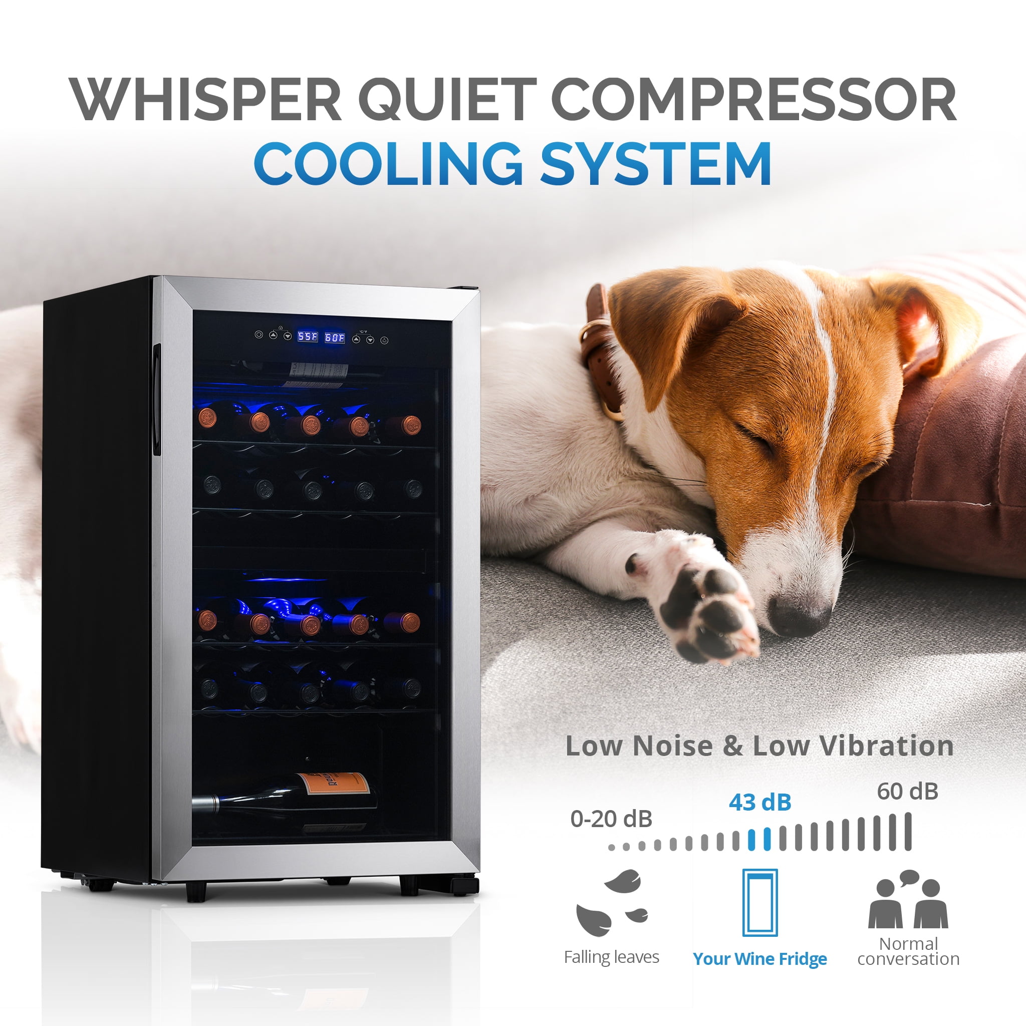 Perfect wine every time with compressor cooling Preserve your entire collection in one placewithdual zone temperature control Protect bottles from harmful UV lighting with double pane insulating glass Adjust temperatures with easy touch digital display Illuminate labels and safeguard flavors with soft LED lighting Accommodate any size bottle with removeable and adjustable shelves Sip on your collection in any room with the freestanding design