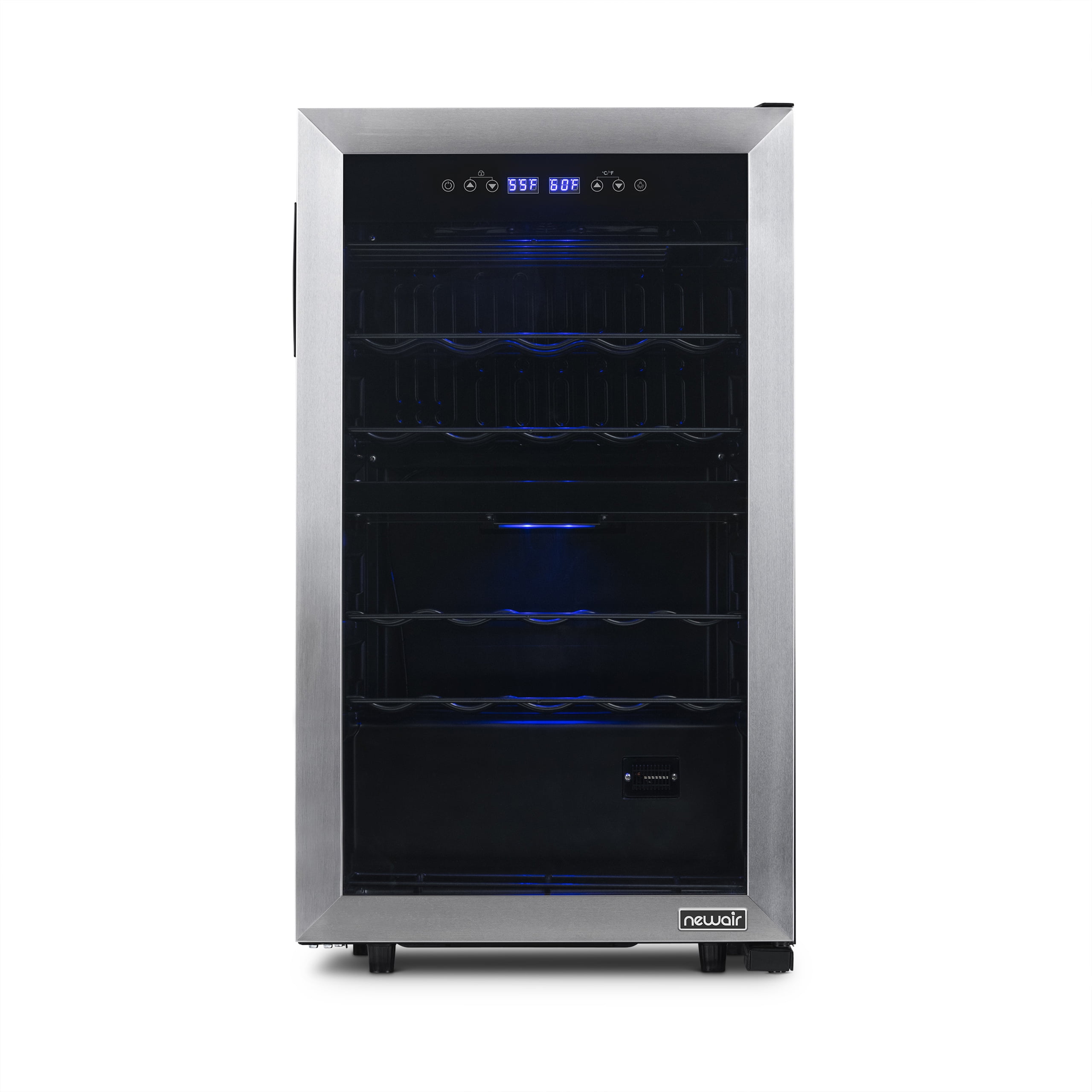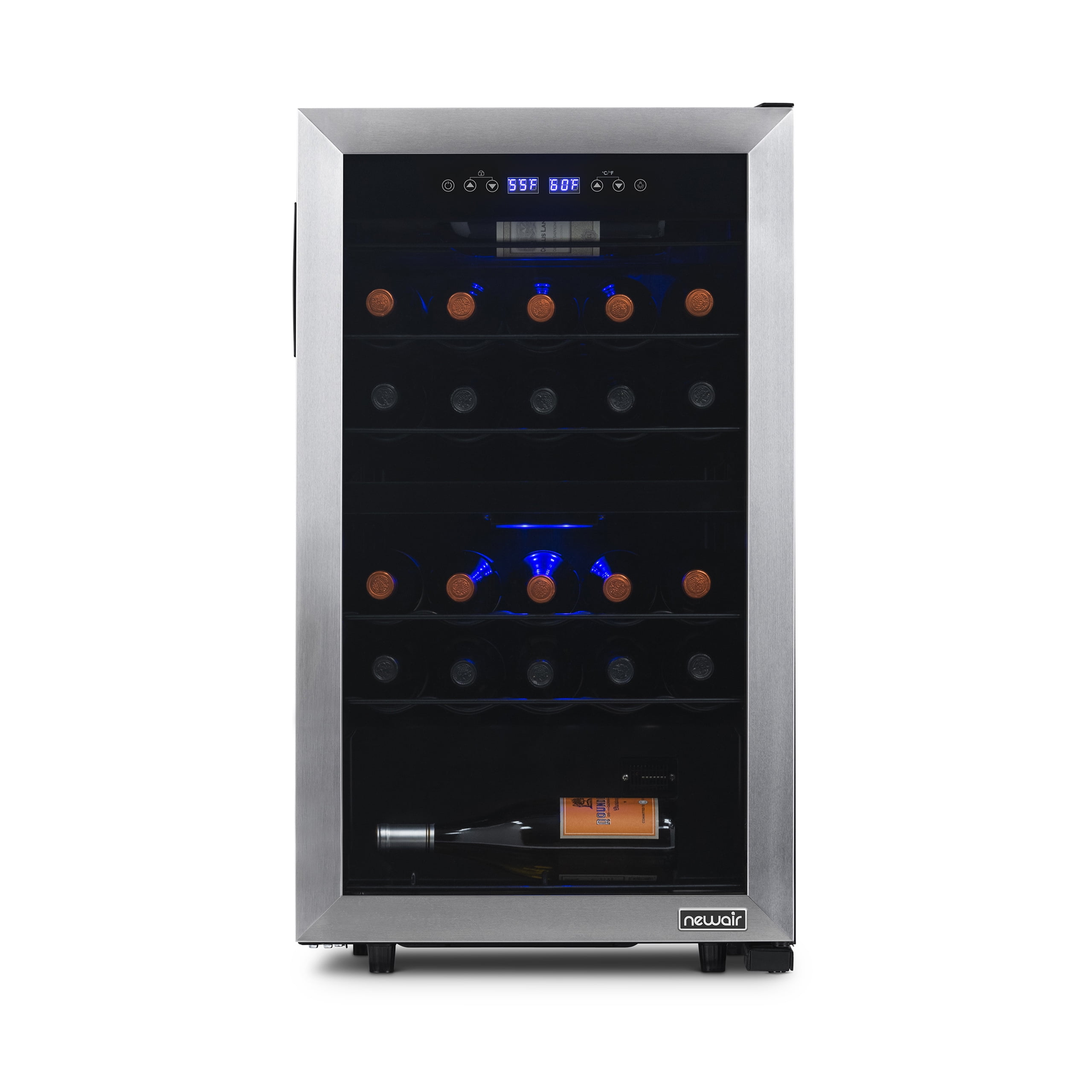 Newair Freestanding 28 Bottle Dual Zone Compressor Wine Fridge in Stainless Steel, Adjustable Racks and Exterior Digital Thermostat