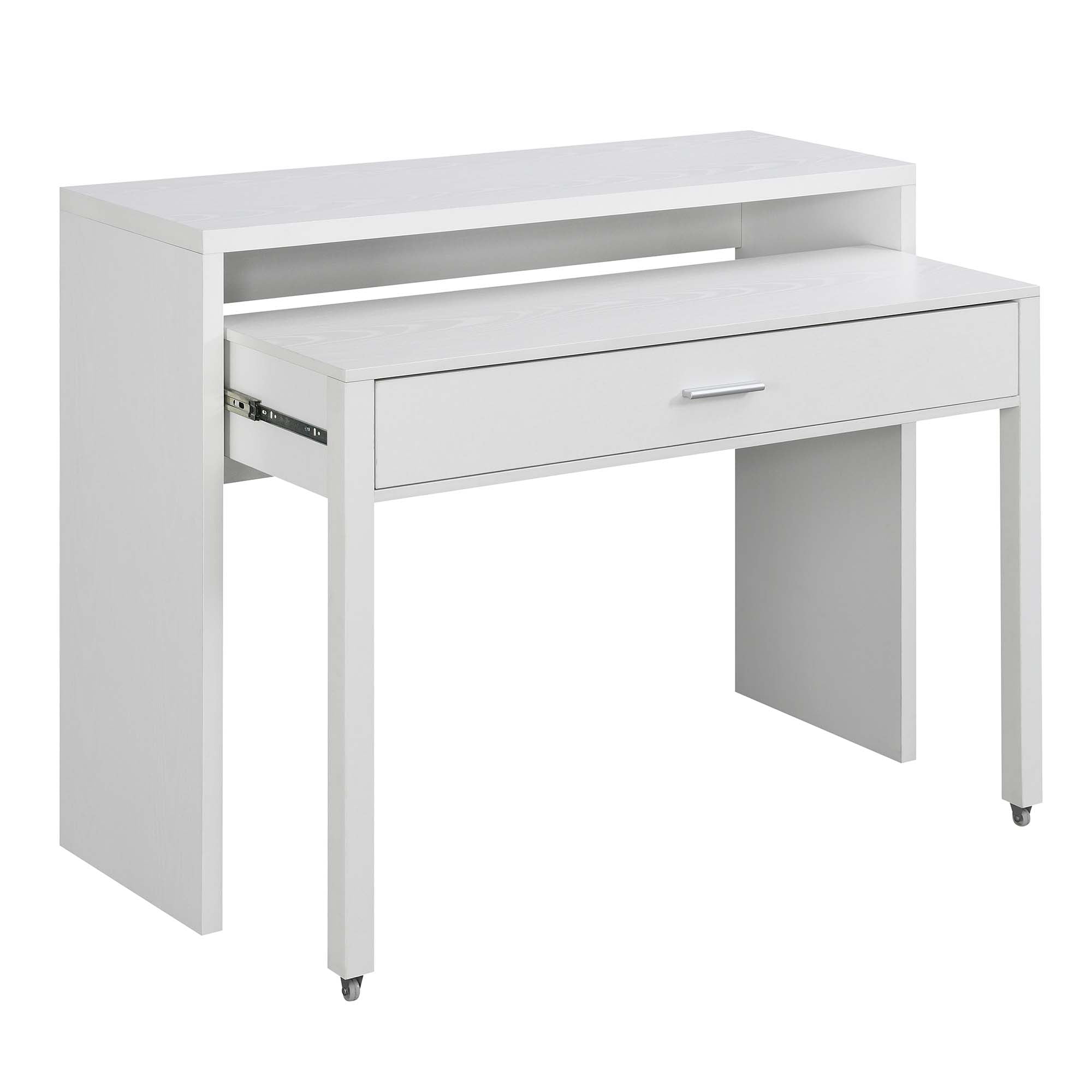 Slide on into your office with the Newport JB Console/Sliding Desk with Drawer and Riser by Convenience Concepts. This modern-style desk expands into two sections, giving you the space needed to complete your work. The middle shelf offers double the workspace by easily sliding out thanks to the smooth ball-bearing glides and caster wheels. The top riser is perfect for a monitor or lamp while the second tier is great to store the keyboard, mouse, or laptop. The wide drawer, on ball-bearing glides, also offers additional storage for unsightly office supplies. When not in use, turn this desk into a console table by conveniently sliding the second tier under the top shelf for a clean, compact look. Crafted from honeycomb and particleboard materials, this durable desk is sure to last. Add coordinating pieces from the Newport Collection from Convenience Concepts, each sold separately. Features: Part of the Newport Collection Sliding Middle Shelf on Ball-Bearing Glides & Caster Wheels Spacious Drawer on Smooth Ball-Bearing Glides Engineered from Honeycomb, Particleboard, & Melamine (L) 47.25 in. x (W) 14.5 in. x (H) 34.75 in. Beautiful white wood finish Specifications: Product Dimensions: (L) 47.25 in. x (W) 14.5 in. x (H) 34.75 in. Product Weight: 71