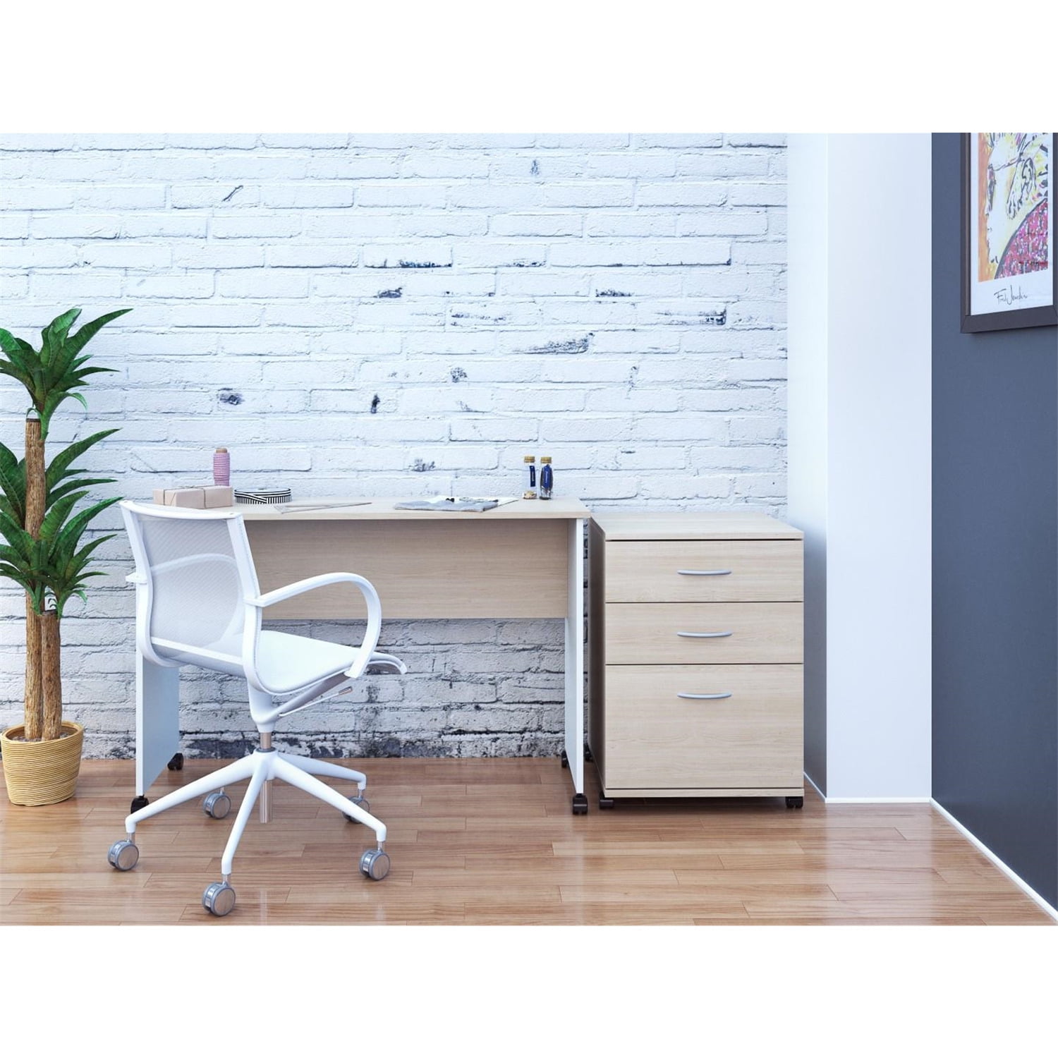 Nexera 5092 Essentials Mobile Filing Cabinet 3-Drawer Natural Maple