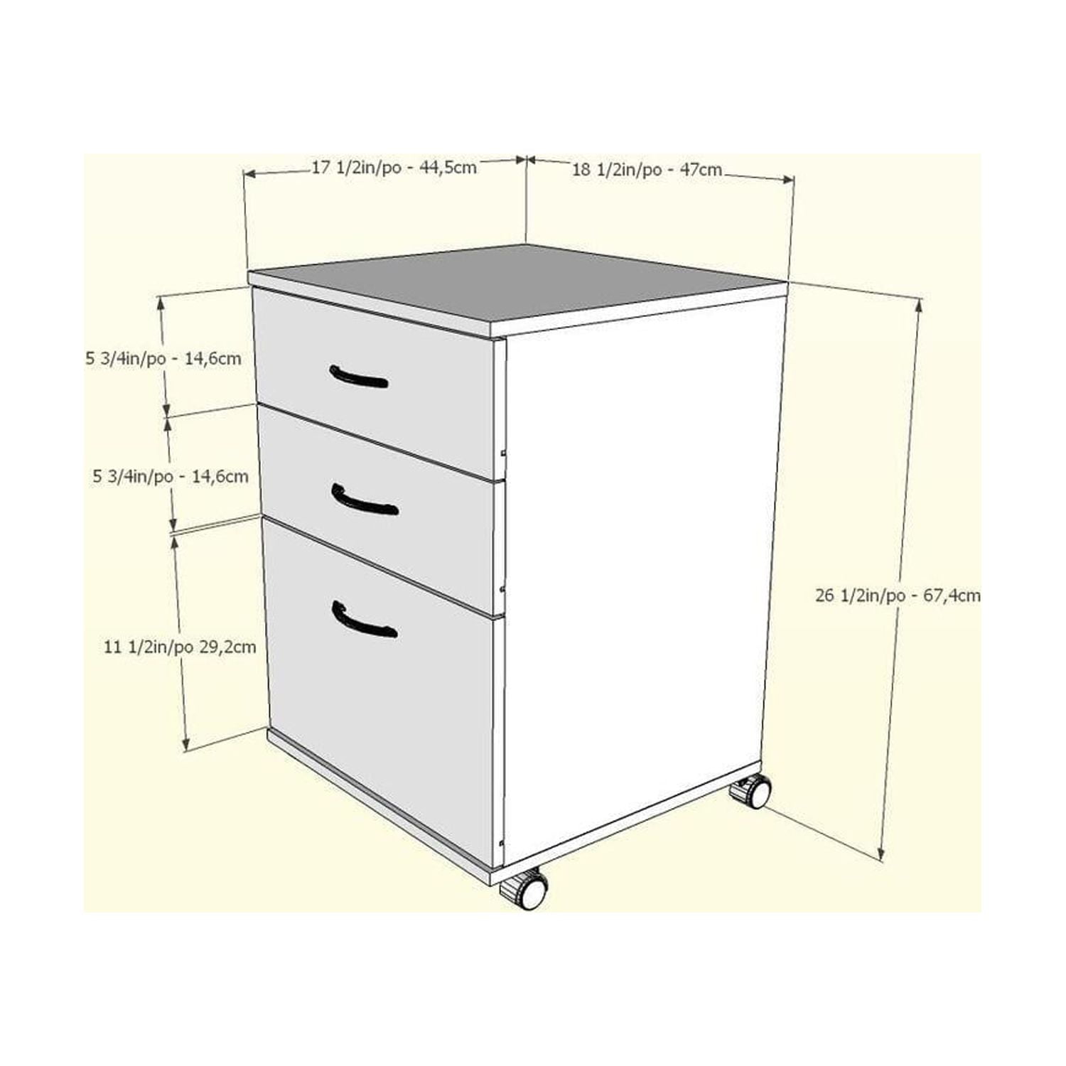 2 catch-all drawers on metal slides •1 legal size filing drawer on metal slides •4 casters for ease of use and mobility •Designed and made in Canada with CARB II/FSC Certified particle board and MDF