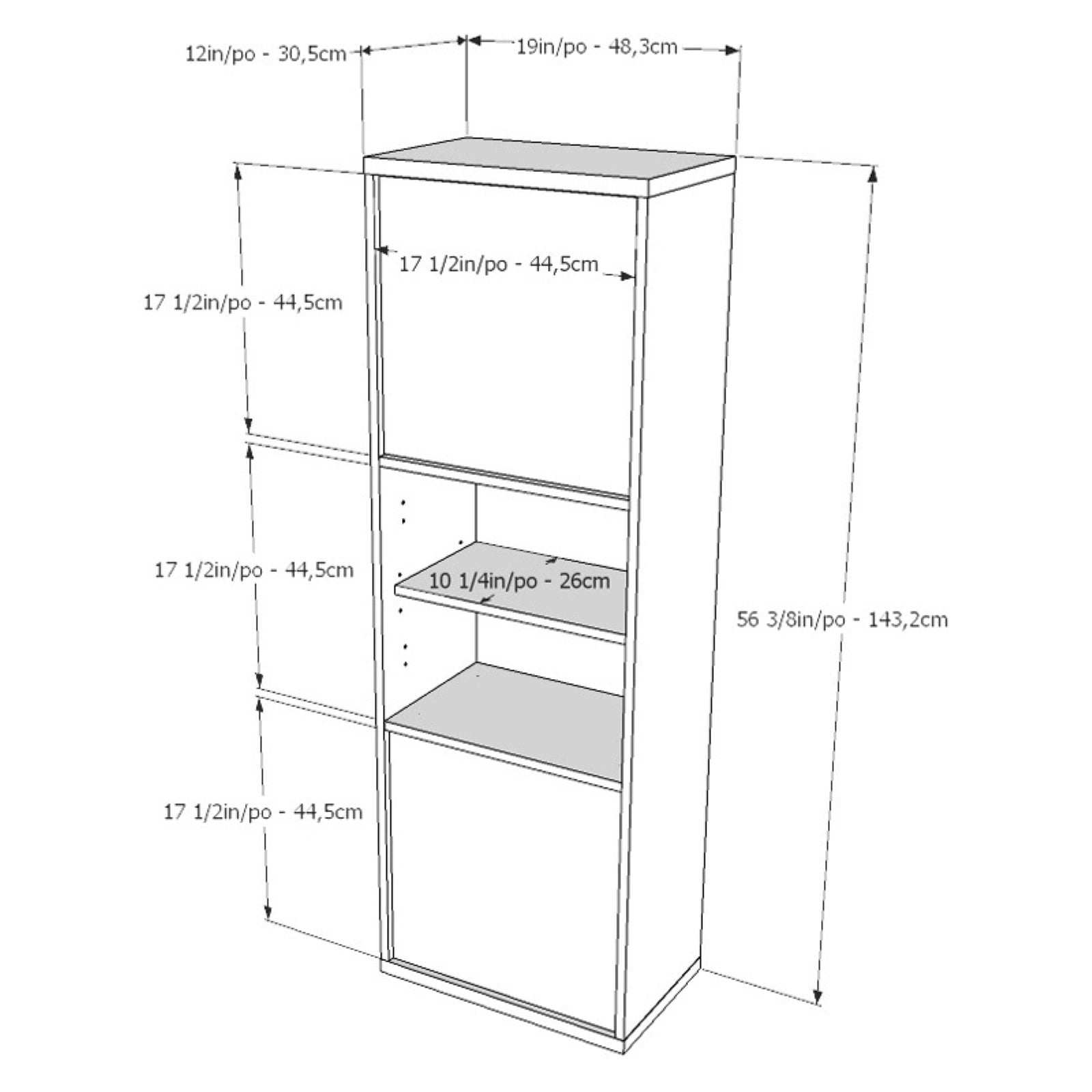 6 shelves; 3 adjustable ones Reversible doors open from left or right and can be installed at the top, middle or bottom sections of the unit Adds storage to your entertainment or home office set