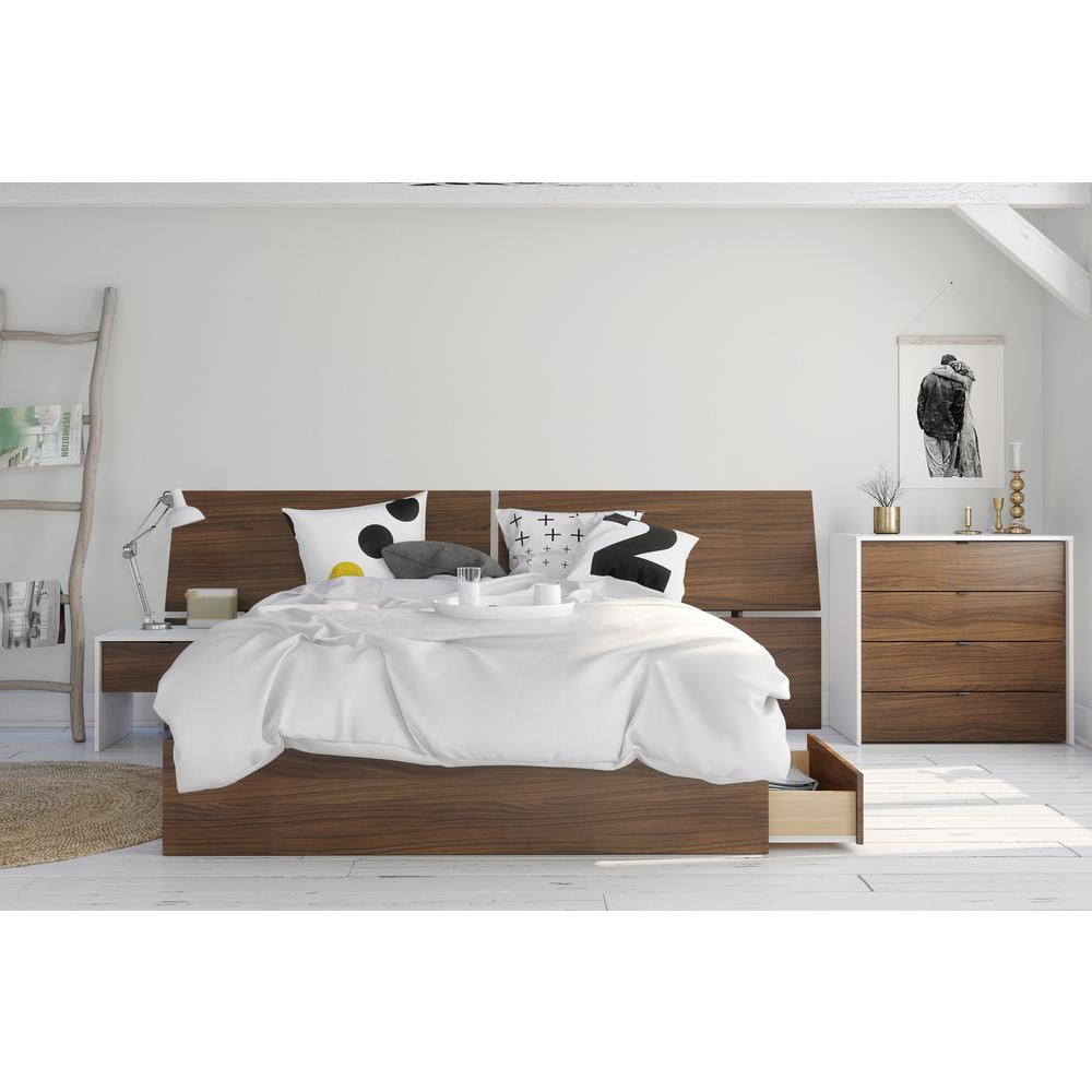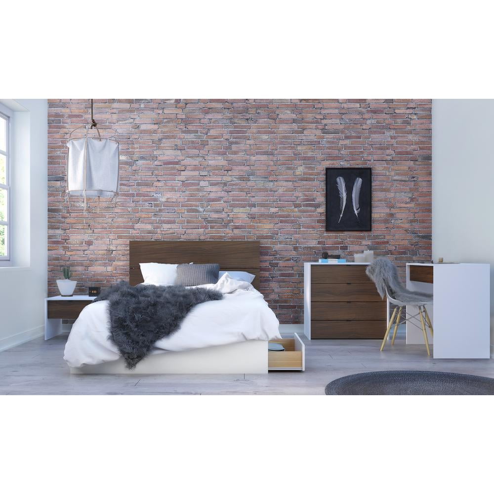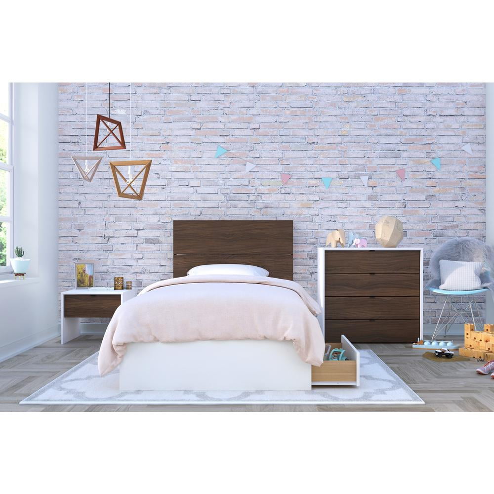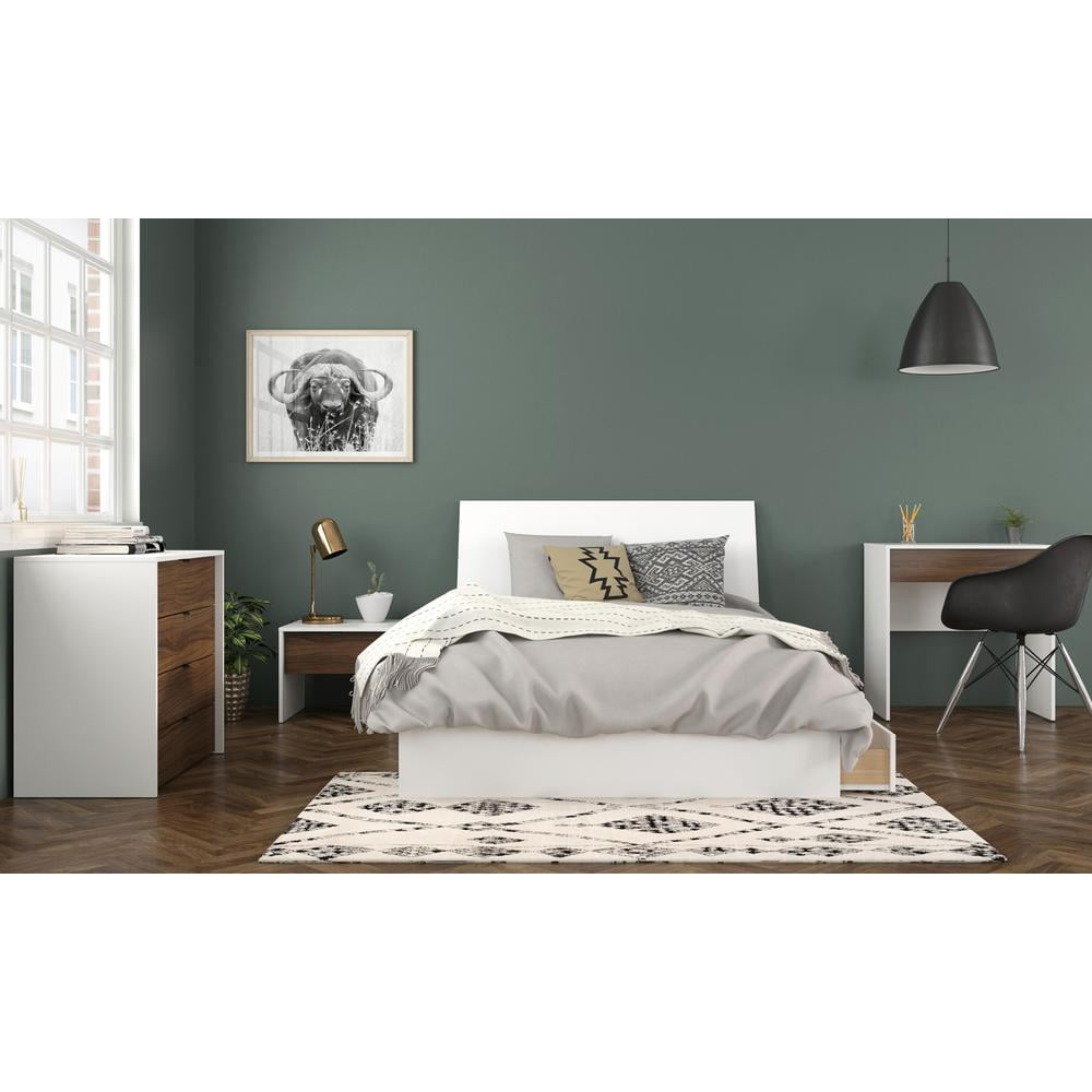 Nexera Modern 1 Drawer Nightstand in White and Walnut