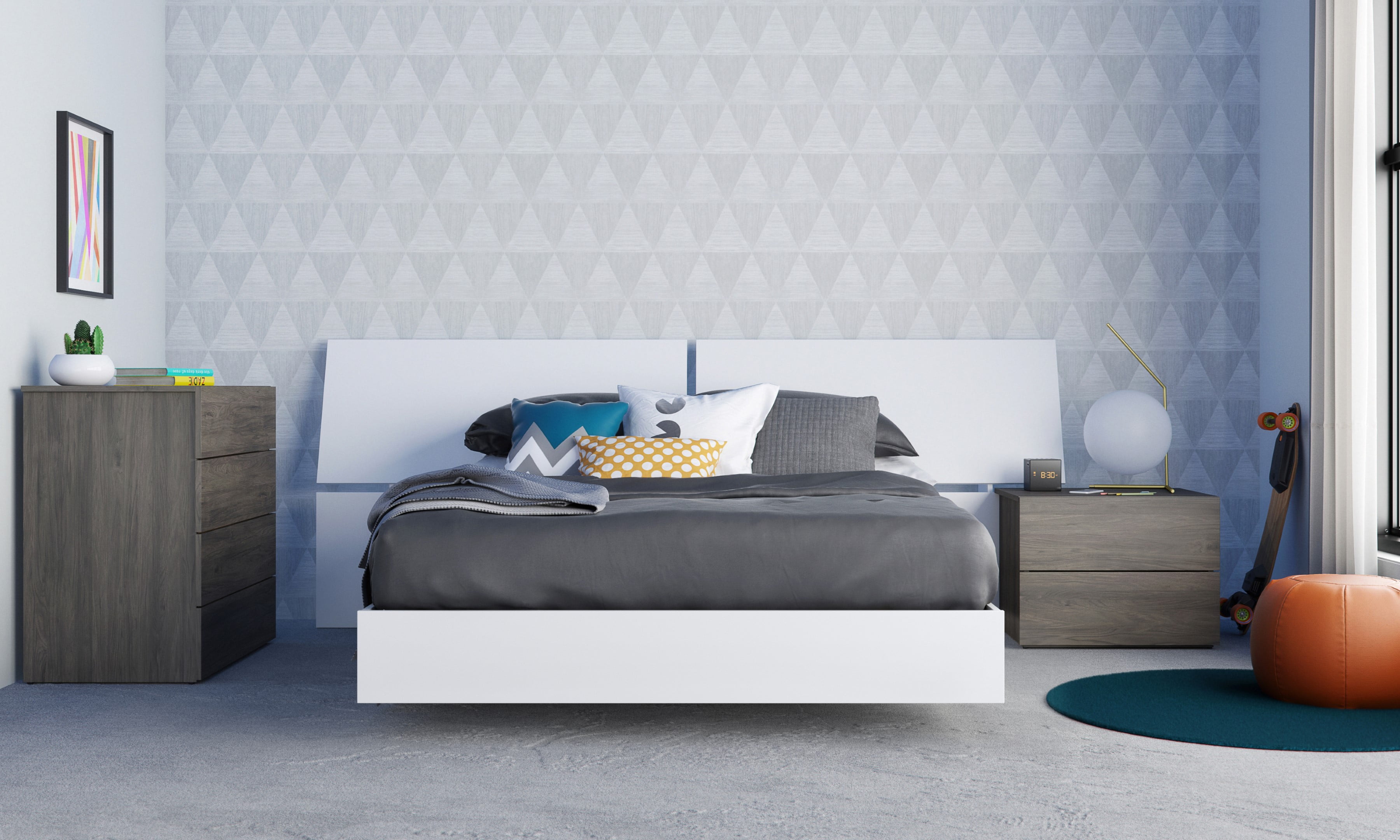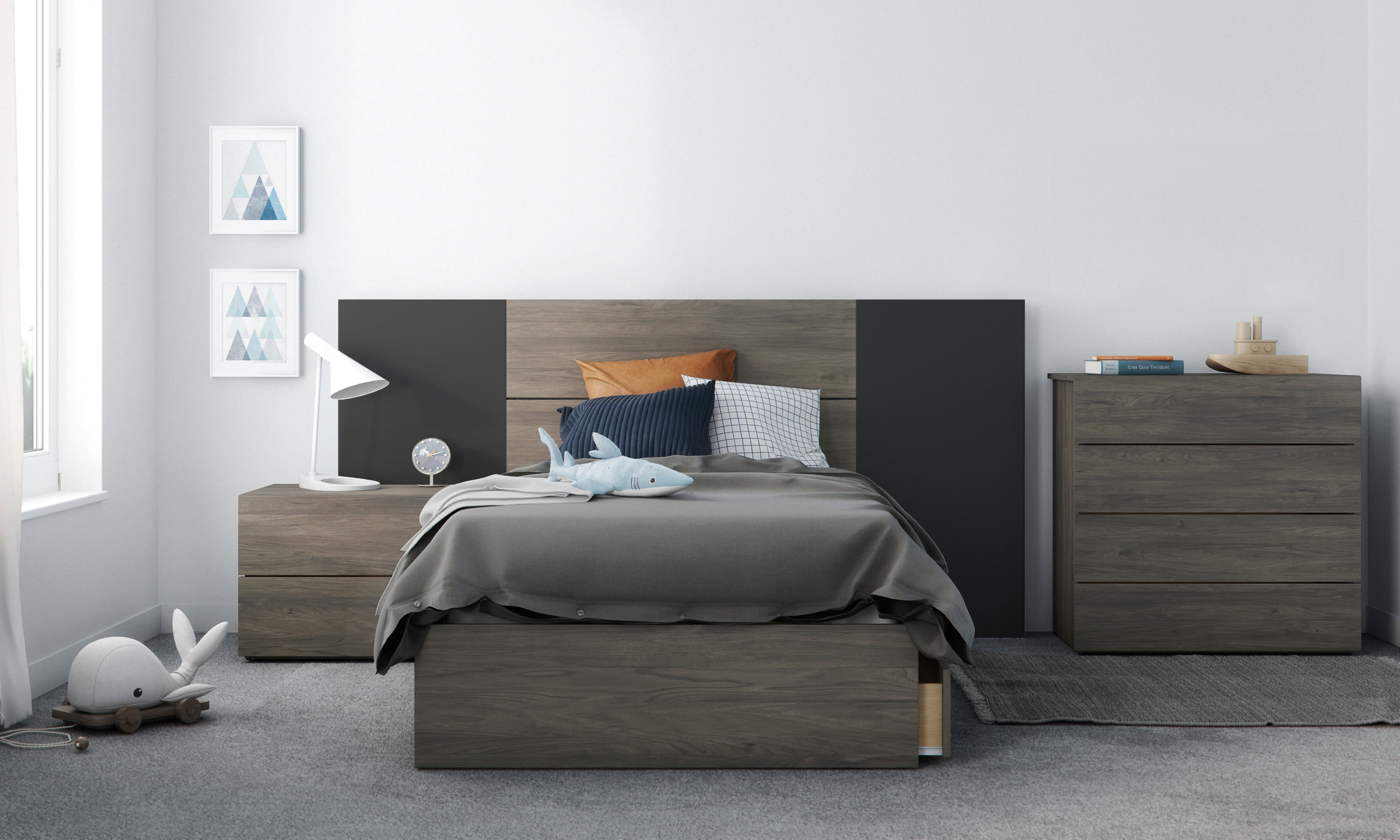 This 2-drawer nightstand offers 2 convenient storage drawers to keep your books, magazines and all personal belongings handy while in bed. The nightstand’s rich Bark Grey finish will give your bedroom a modern flair while adding convenient storage.