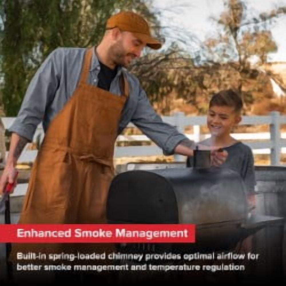 【AUTHENTIC BBQ FLAVOR】Enjoy rich, smoky charcoal-grilled taste anywhere, anytime. 【349 SQ. IN. COOKING AREA】Grill with 349 sq. in. of space—perfect for BBQs and camping. 【ADJUSTABLE CHARCOAL TRAY】Choose from three heights for perfect heat control. 【CHIMNEY VENT FOR HEAT CONTROL】Adjust airflow for precise grilling temperatures. 【DURABLE CAST IRON GRATES】Rust-resistant grates ensure even heat and easy cleaning. 【DURABLE ALLOY STEEL BUILD】Resists rust, retains heat, and ensures reliable grilling. 【PRECISE TEMPERATURE GAUGE】Monitor heat accurately for perfect grilling and smoking. 【EASY CLEANUP WITH ASH CATCHER】Collects debris for quick, mess-free disposal. 【EASY TRANSPORT WITH 2 WHEELS】Durable wheels for easy transport to any outdoor event.